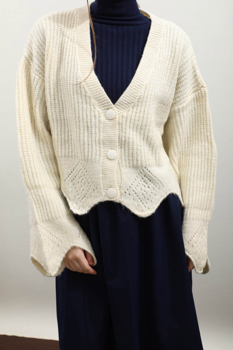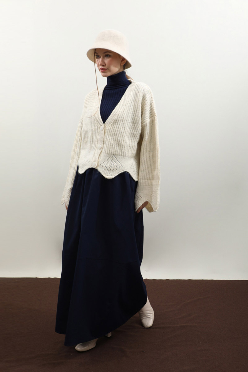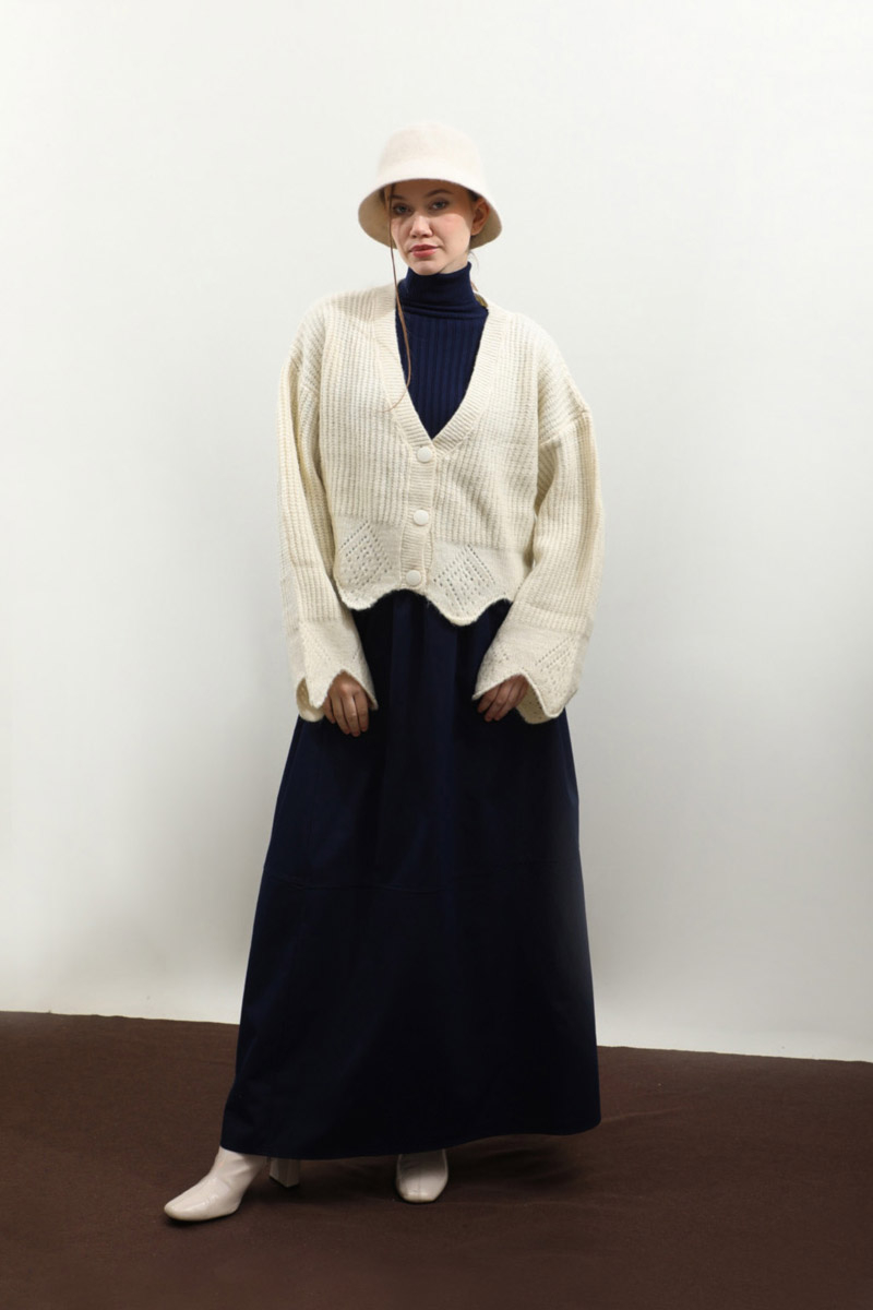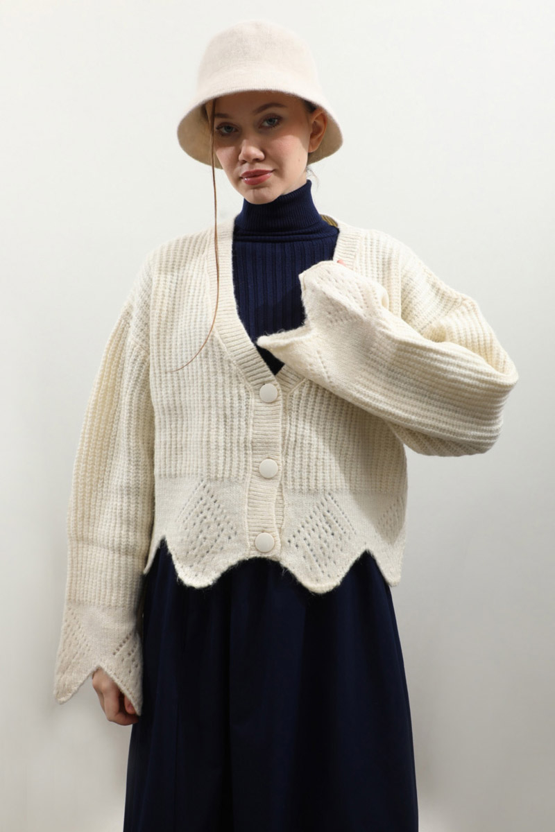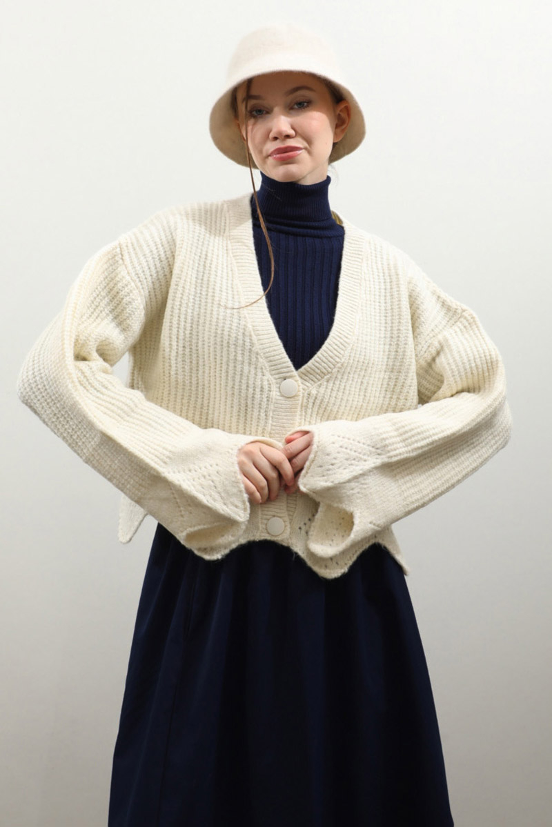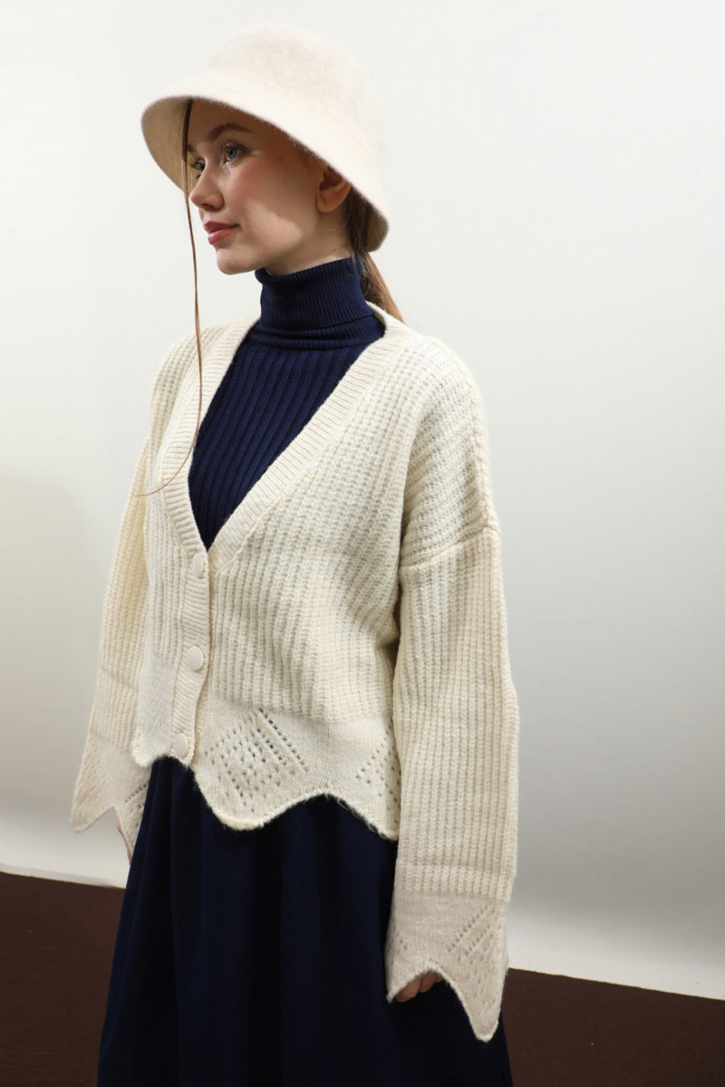Gözenek Desenli Hırka Krem