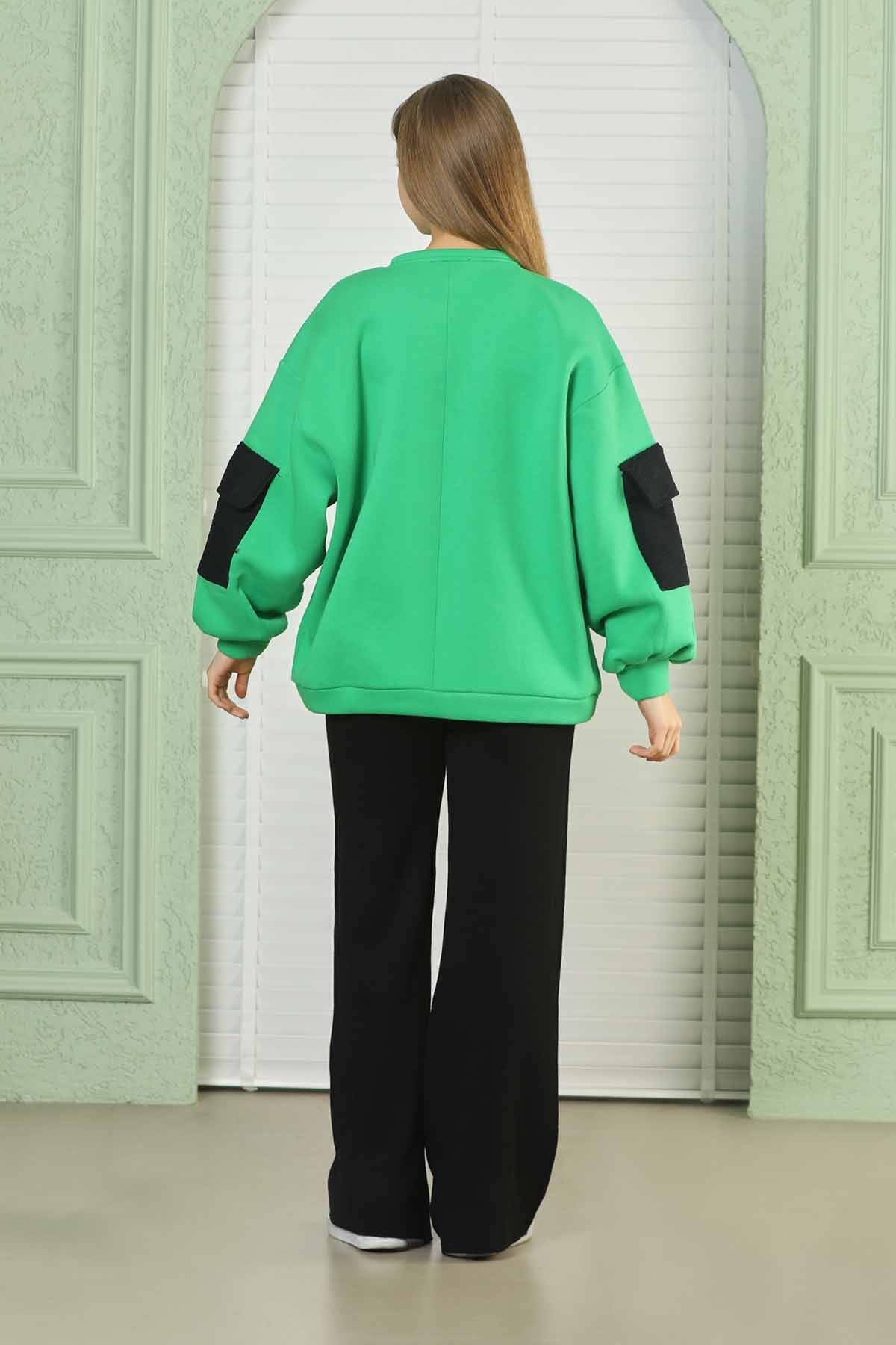 Oversize Sweat Green With Pockets On The Sleeves. oversized model