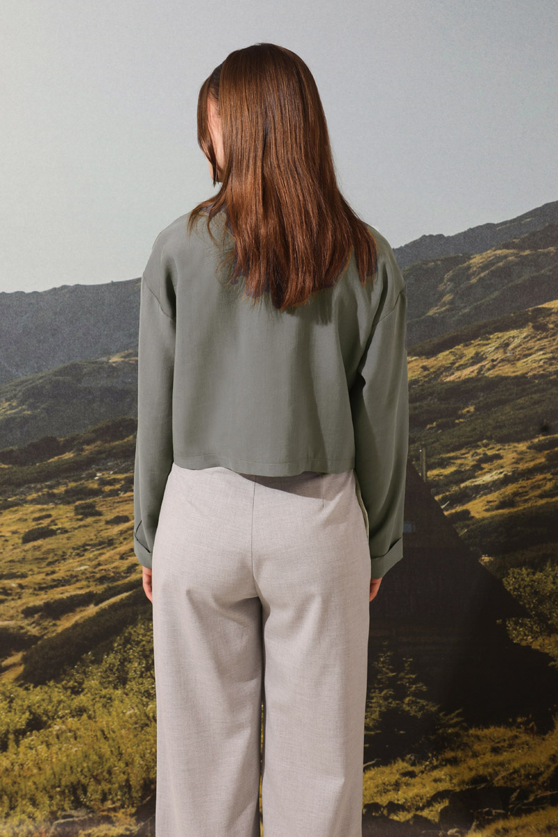 Gül Gömlek Antrasit. Tensel kumaştan imal edilmiştir.