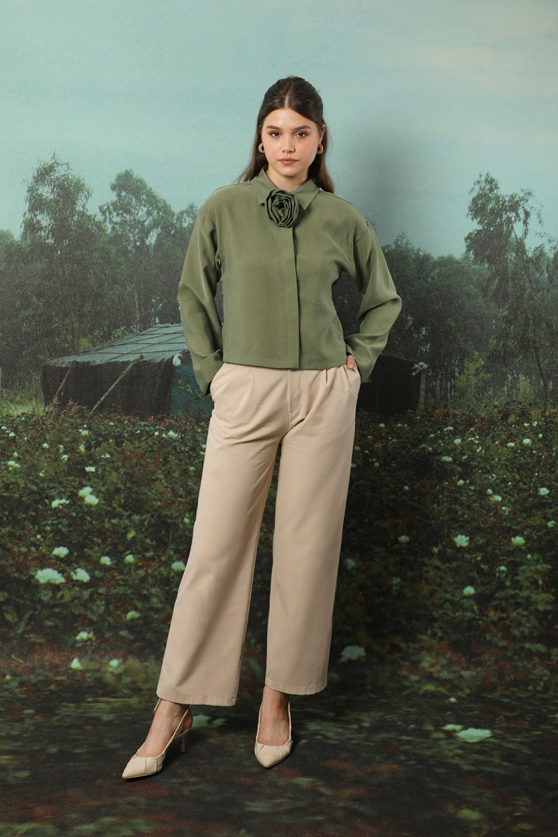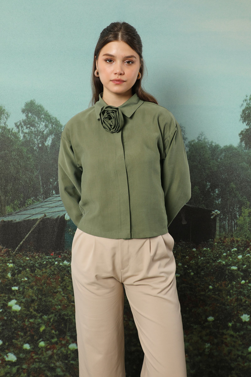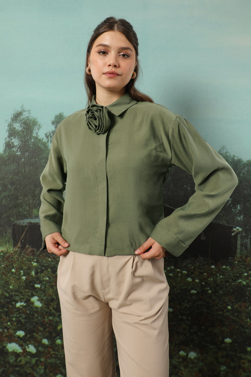 Gül Gömlek Haki. Tensel kumaştan imal edilmiştir.
