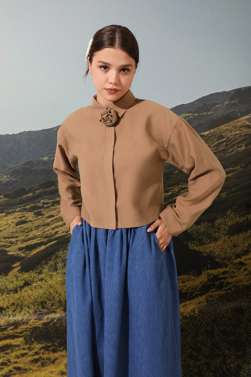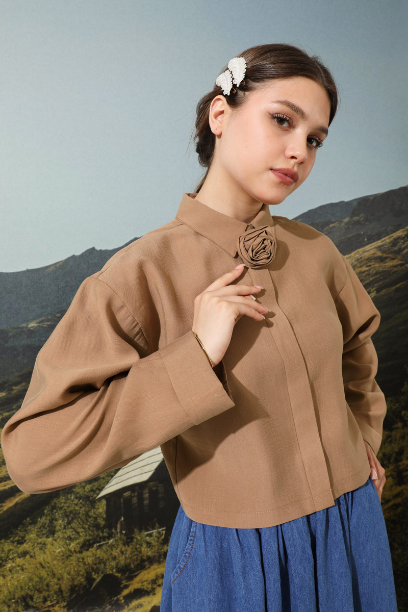 Gül Gömlek Somon. Tensel kumaştan imal edilmiştir.