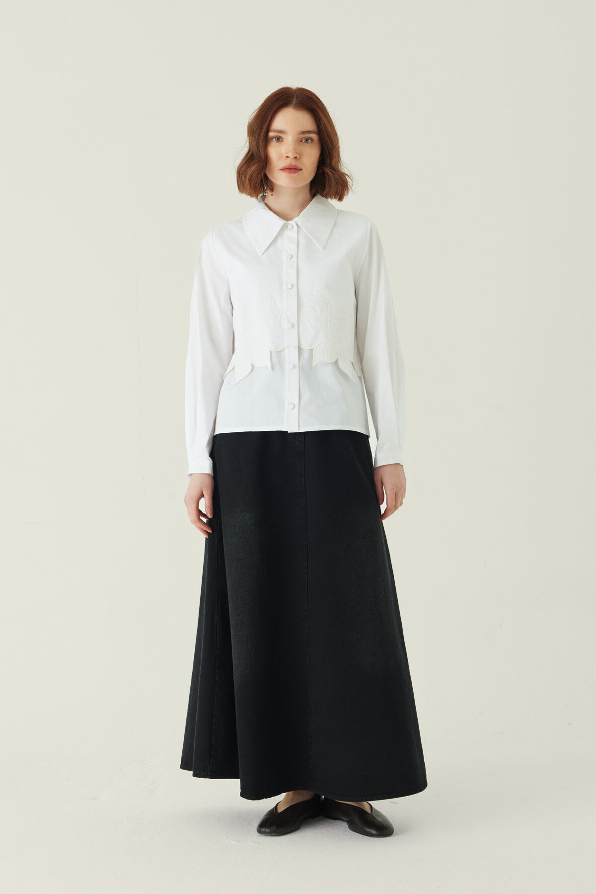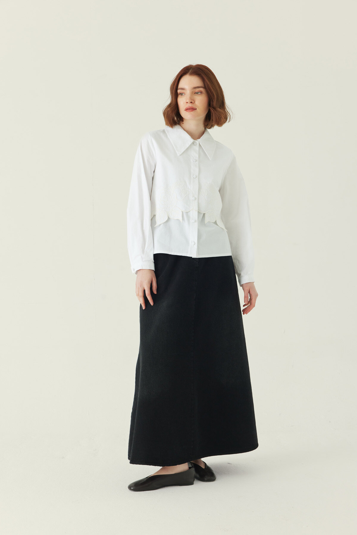 Zarif gül nakış detayıyla sade tasarımına romantik bir dokunuş katan Gül Nakışlı Poplin Gömlek, pamuklu yapısıyla konforu ön planda tutar. Normal kalıbı sayesinde dengeli bir duruş sunarken, mevsim geçişlerinde ve yaz aylarında rahat bir kullanım sağlar. Hem günlük kombinlerde hem daha klasik görünümlerde kolayca uyum sağlayan zamansız bir parçadır.