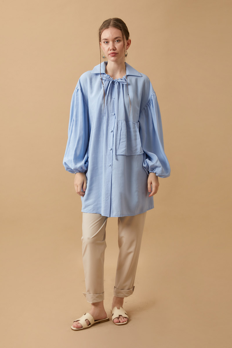 This design offers all-day comfort with its soft texture and flowing form, making it stand out both in city chic and relaxed weekend outfits. The wide sleeves and cuff finishes provide a unique and eye-catching look.