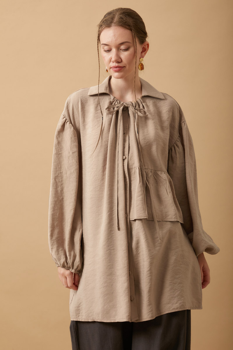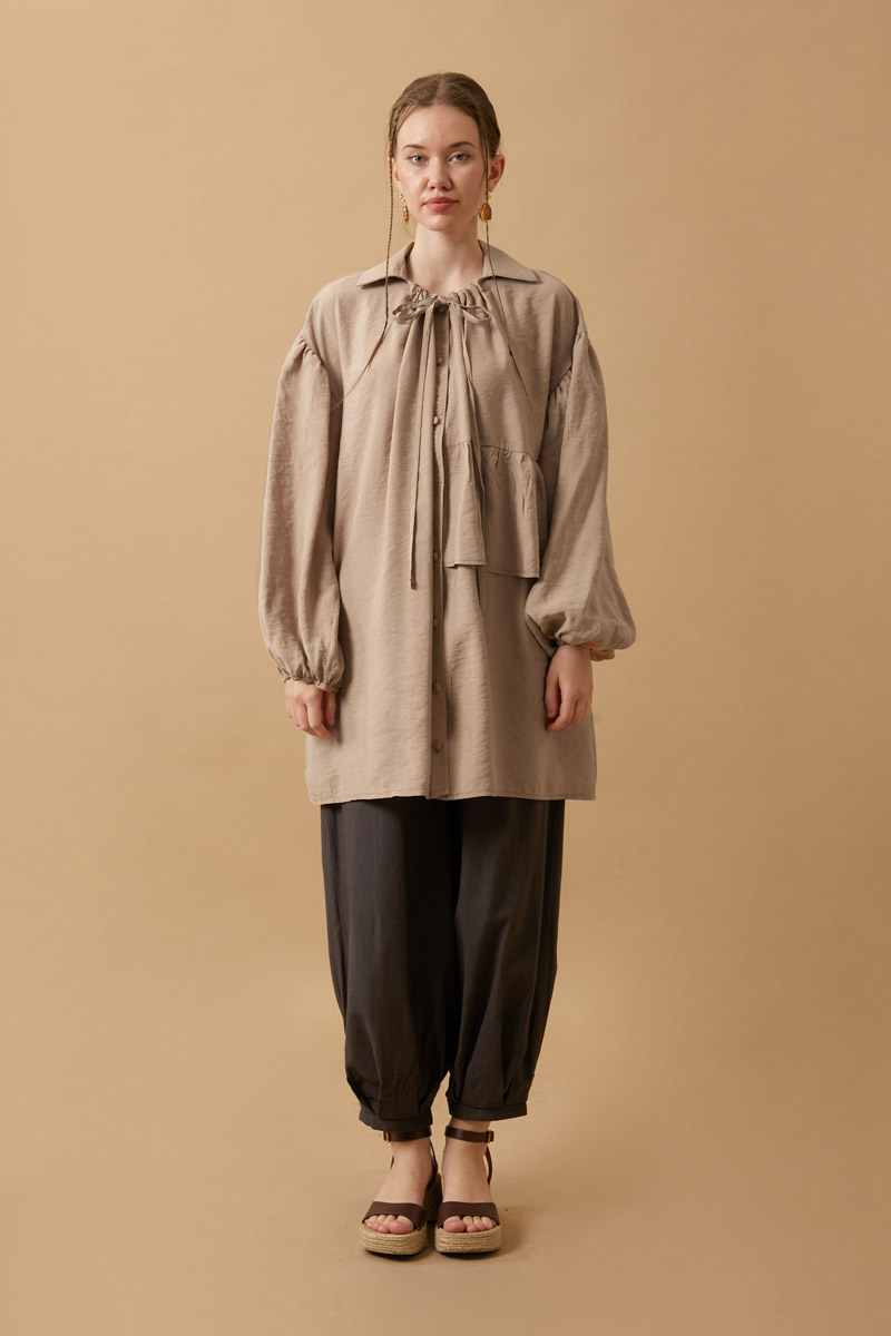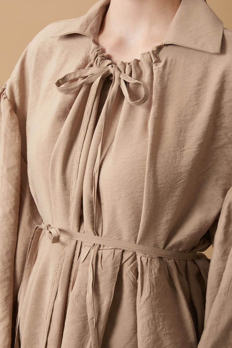 Gathered collar with tunnel tie detail