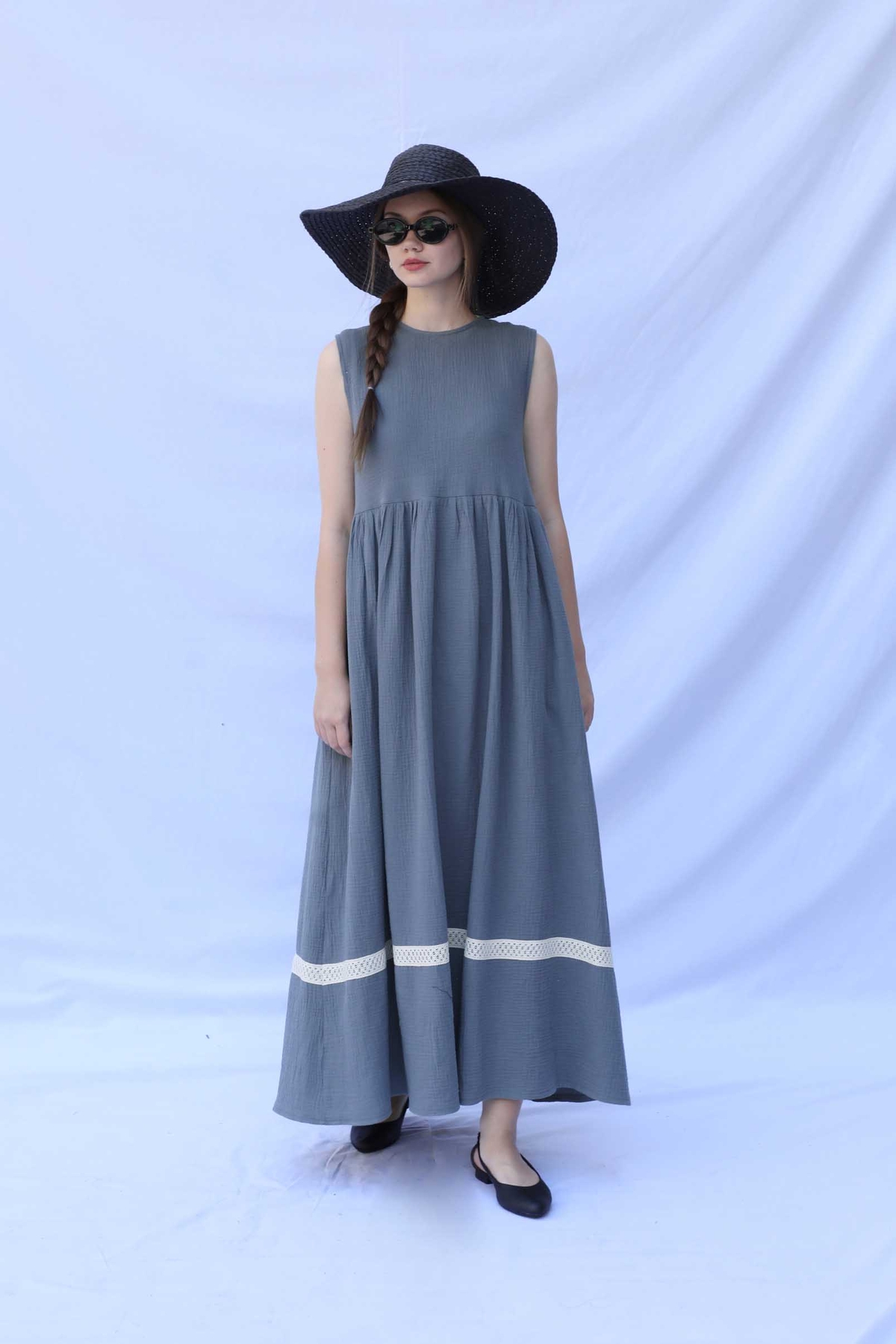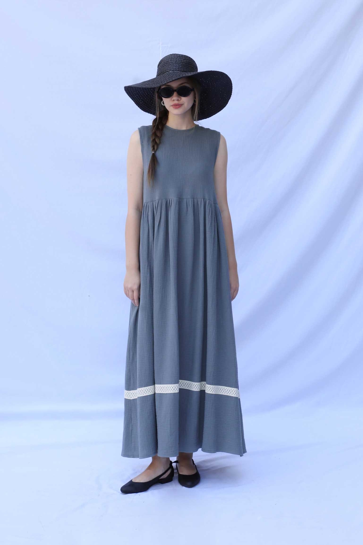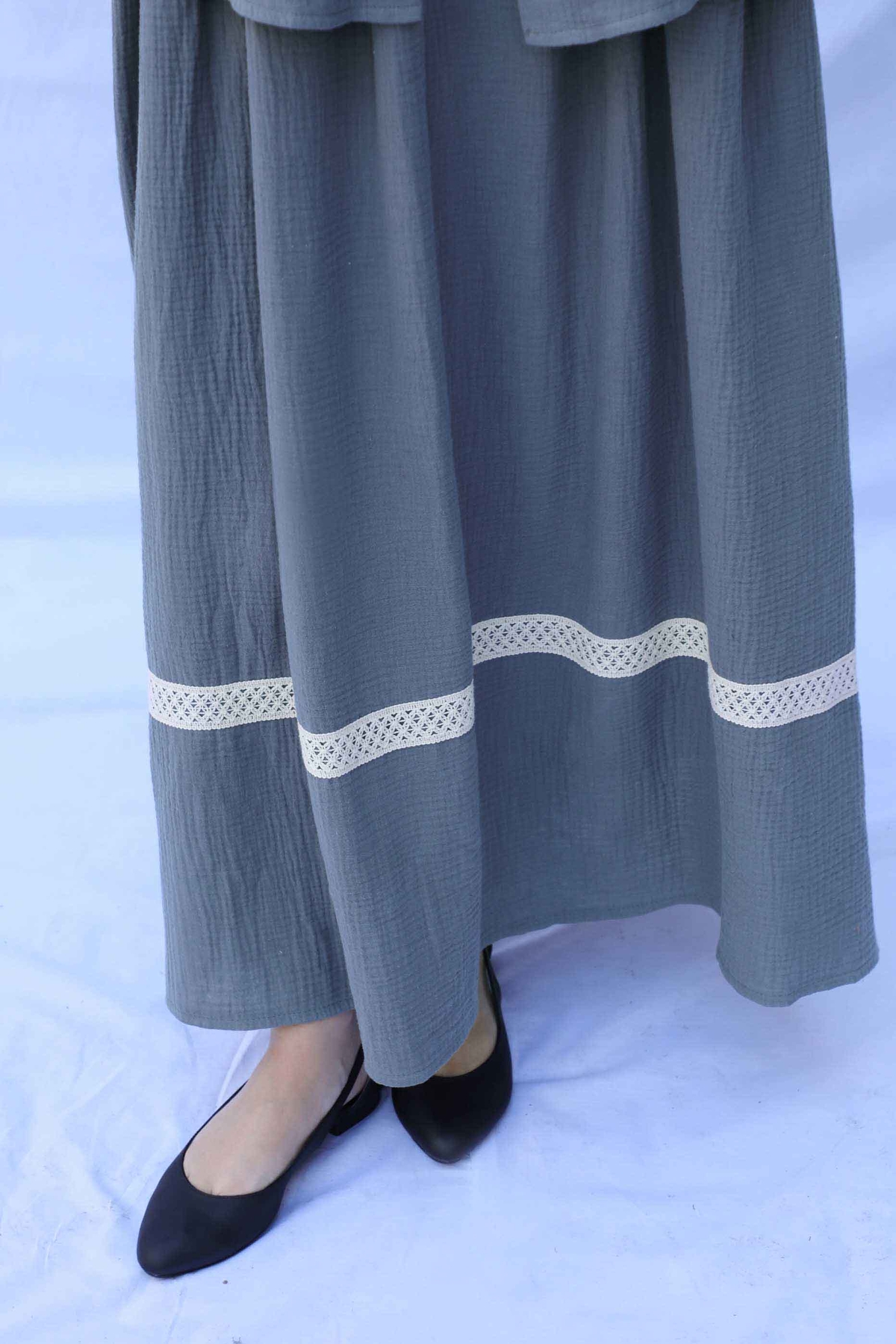 Güpür Gömlekli Elbise Koyu Gri. Bisiklet yakalıdır, sıfır koldur, arkadan fermuarlıdır, eteğinde güpür detayı vardır, astarsızdır. Gömlek: kolarında güpür detayı bulunmaktadır, arkadan a pileli ve düğmelidir. Takım olarak ve ayrı ayrı kombinlenebilir parçalardır.