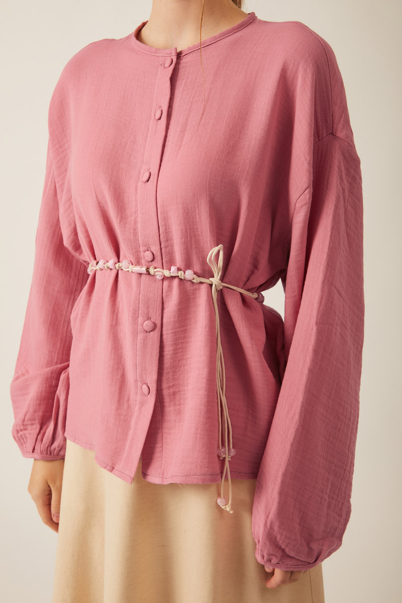 Hakim Yaka Müslin Gömlek Pembe