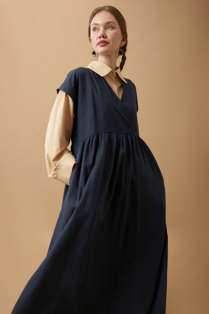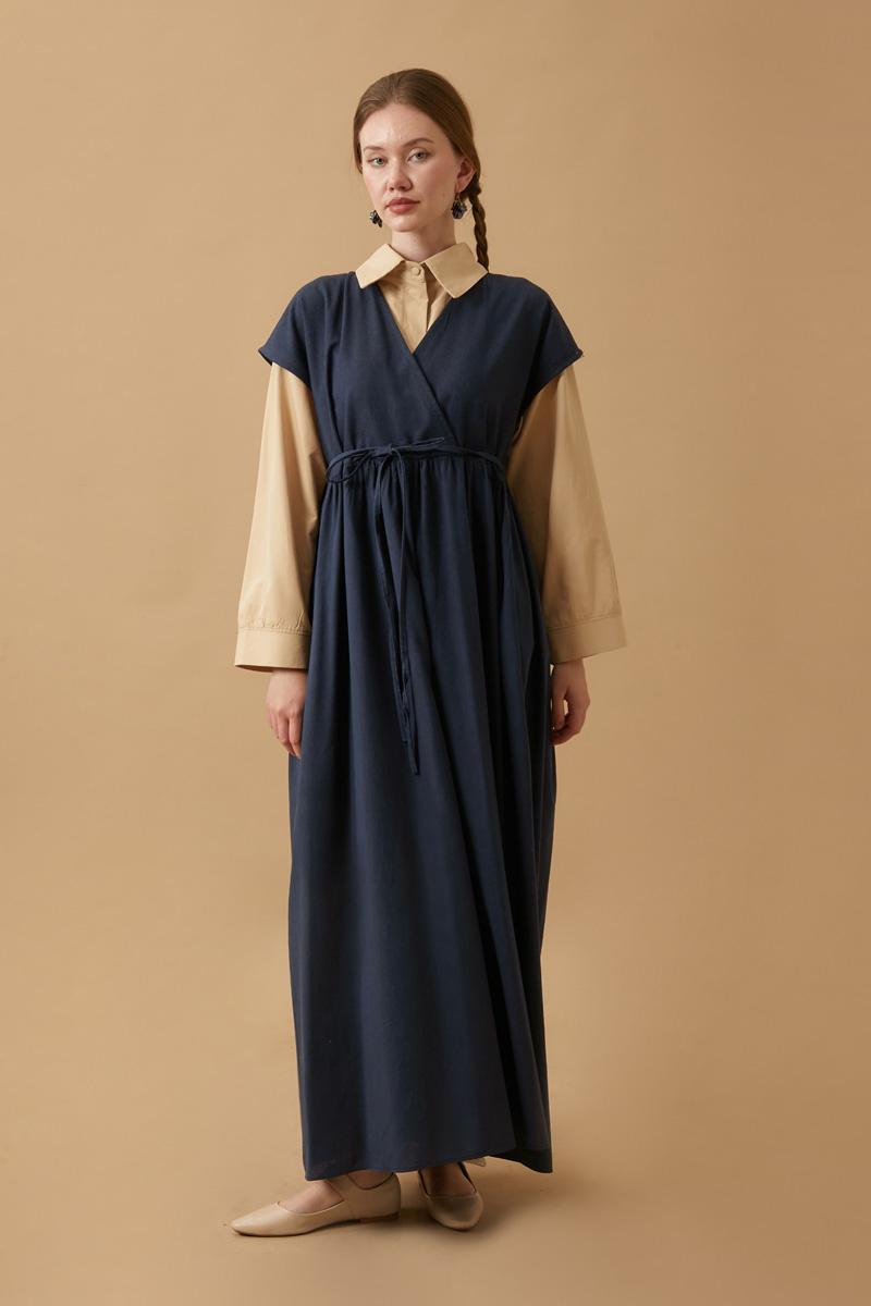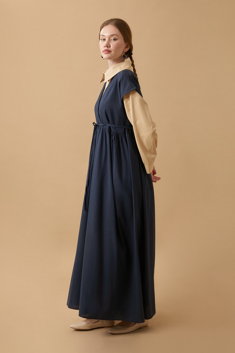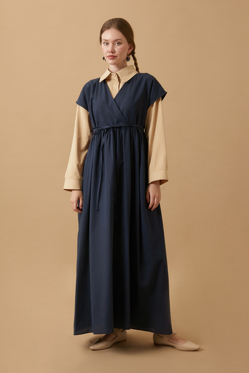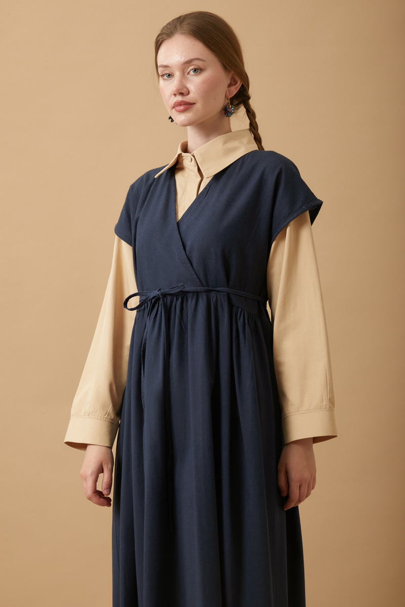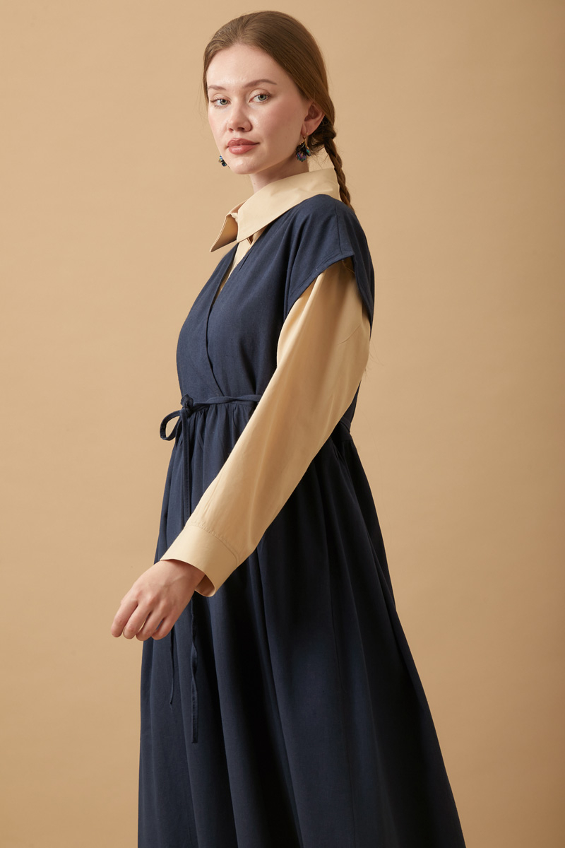 Helen Keten Jile Lacivert. Kruvaze yakadır, düşük omuzludur, belden büzgü detaylıdır, yandan ceplidir, astarsızdır. biye kuşaklıdır, Günlük kullanım ve özel günlerinizde tercih edebilirsiniz.