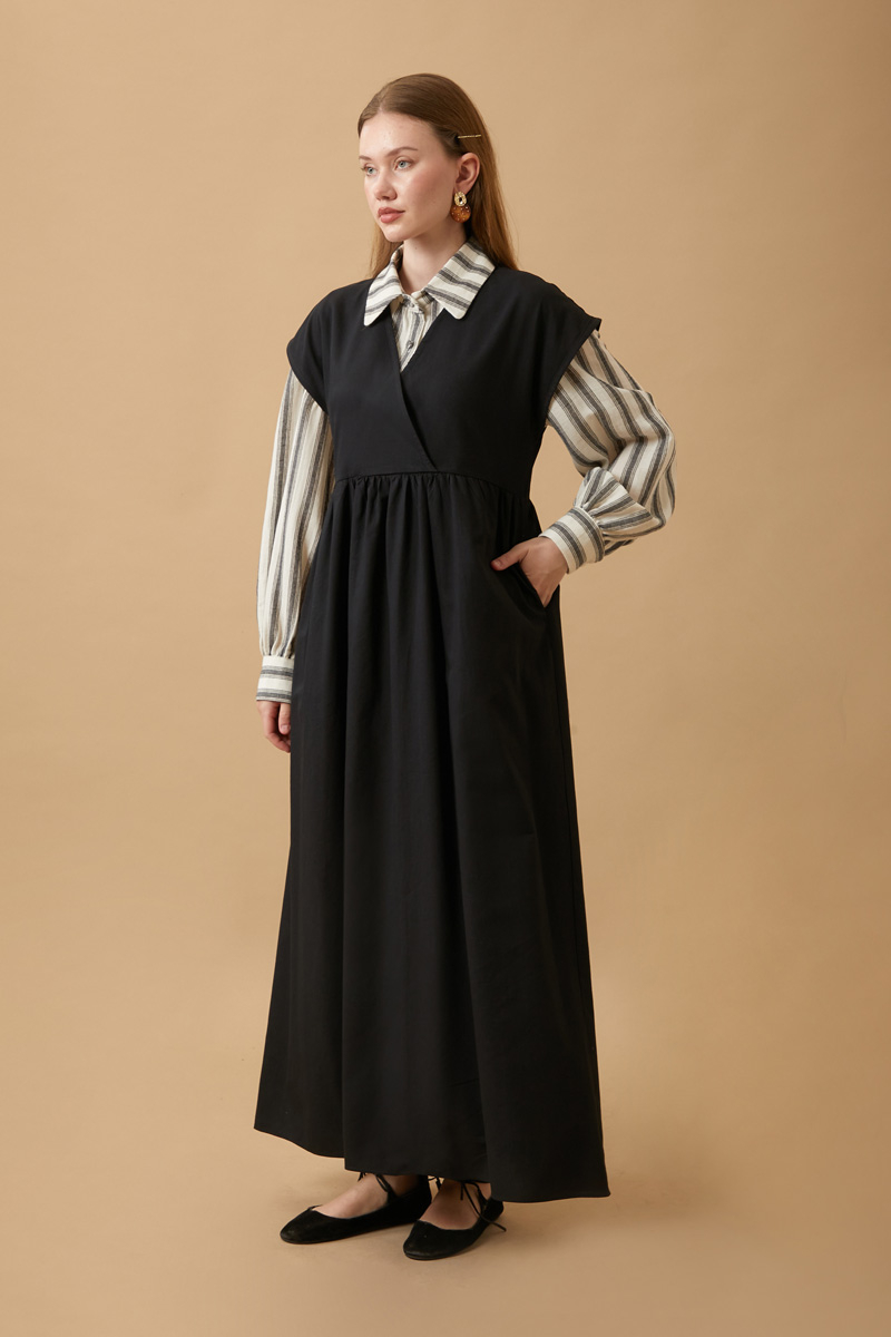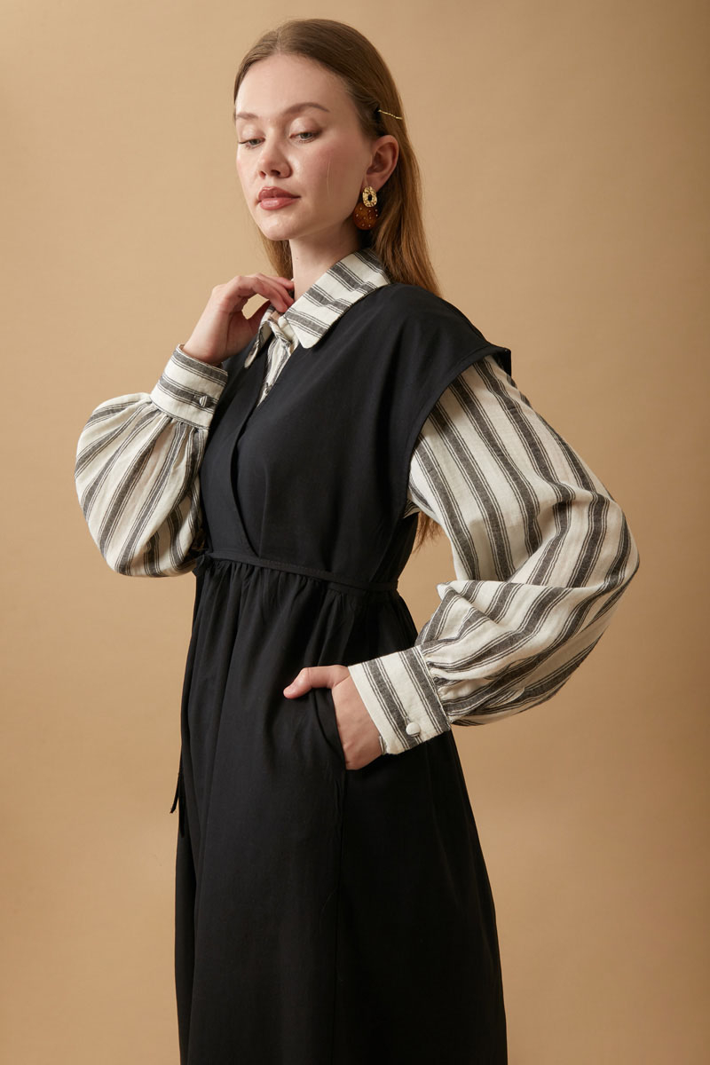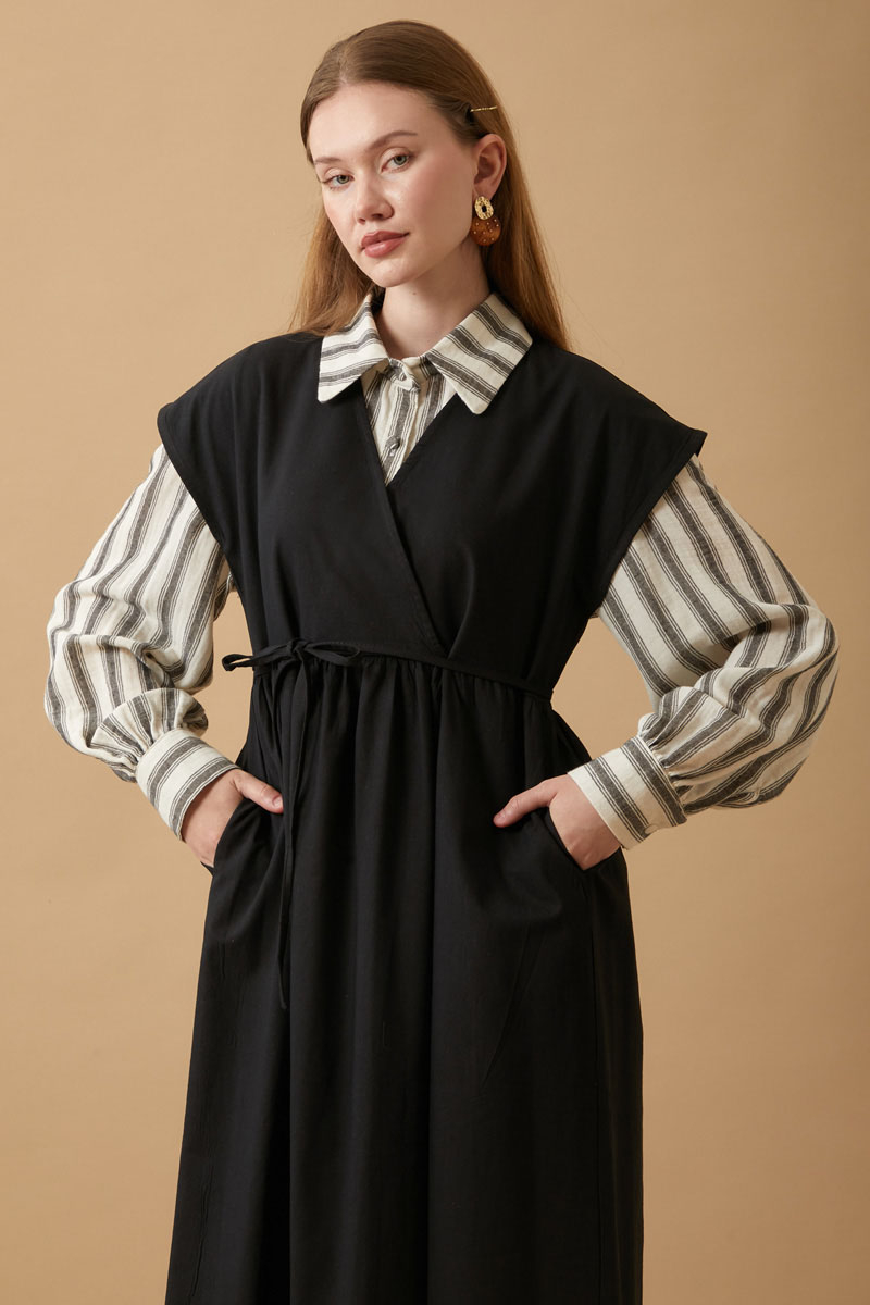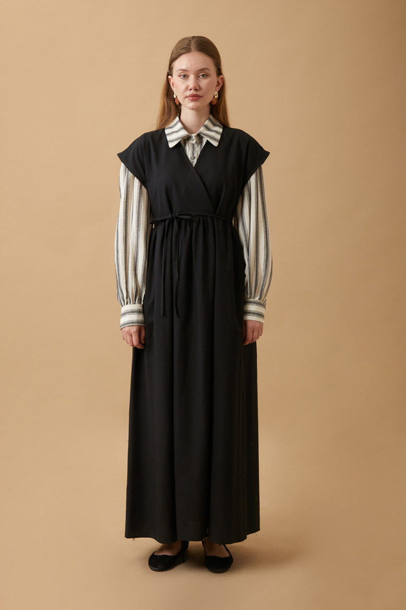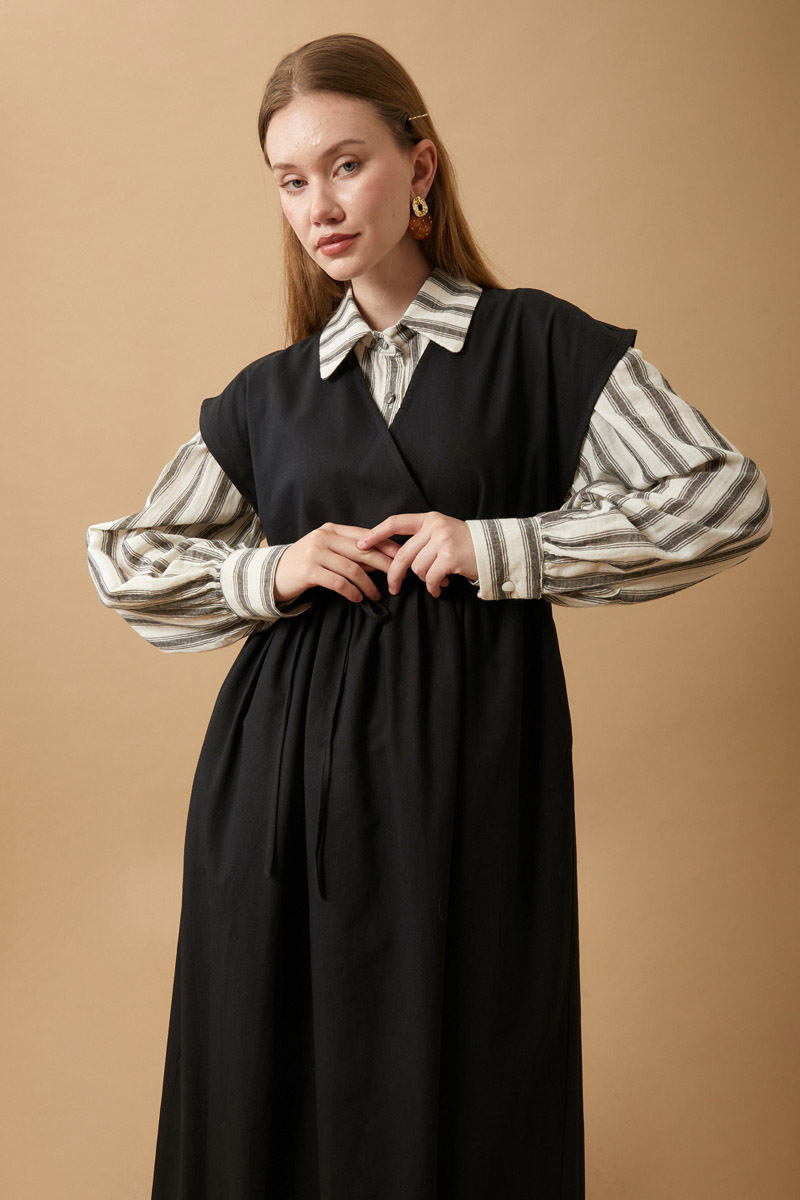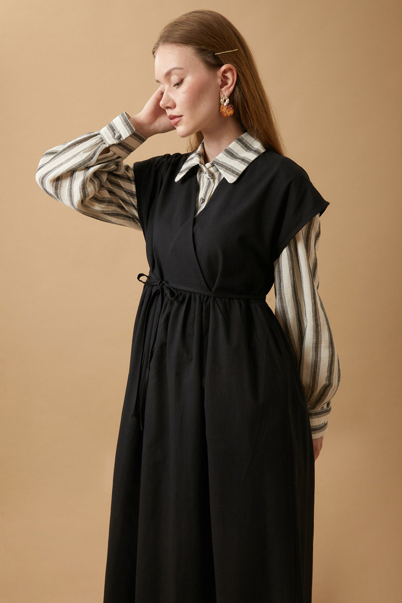 Helen Keten Jile Siyah. Kruvaze yakadır, düşük omuzludur, belden büzgü detaylıdır, yandan ceplidir, astarsızdır. biye kuşaklıdır, Günlük kullanım ve özel günlerinizde tercih edebilirsiniz.