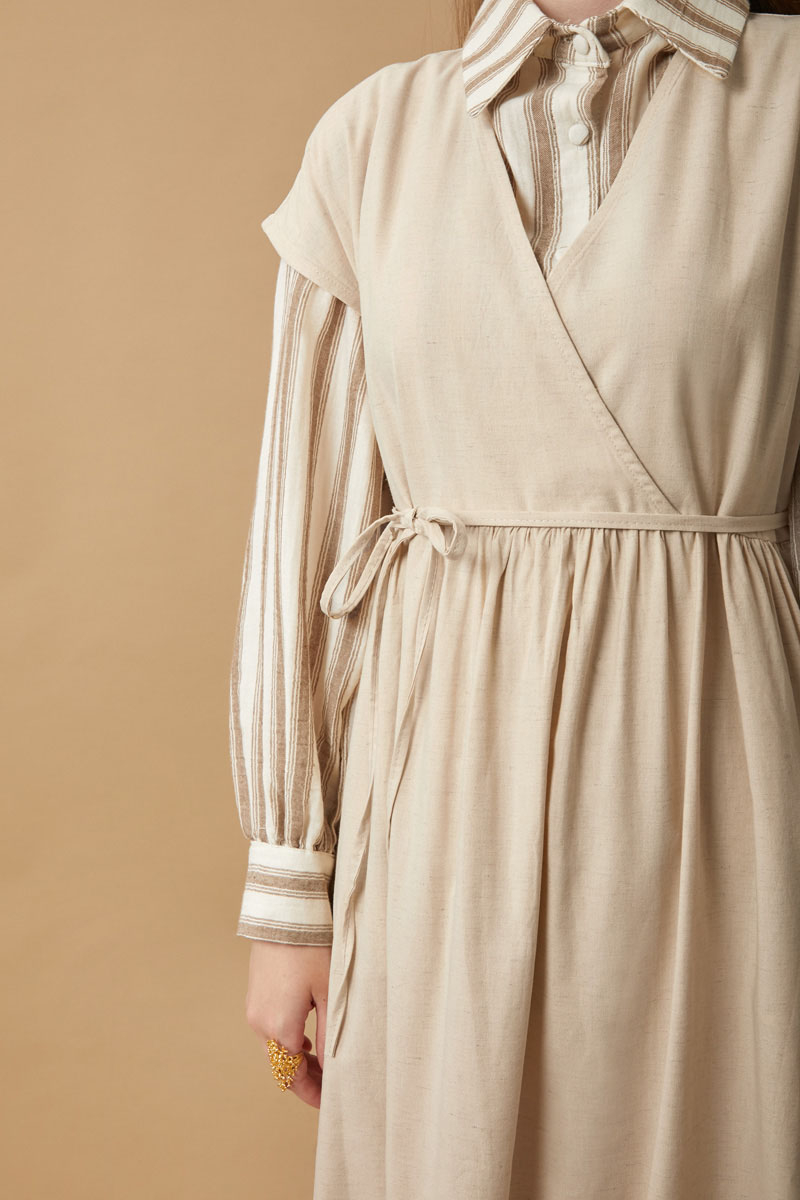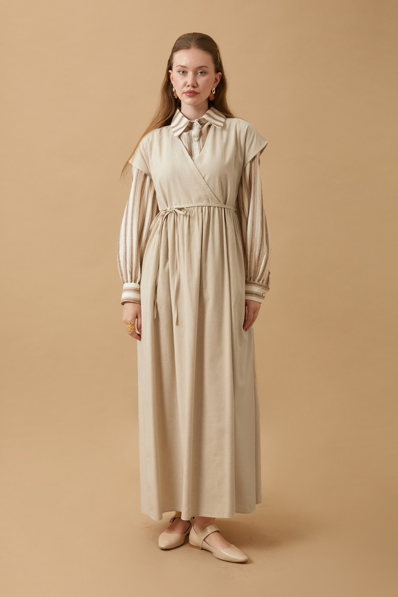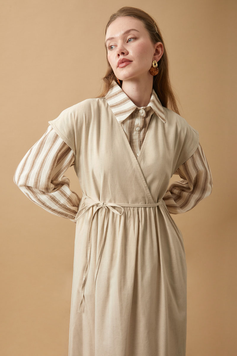 Helen Keten Jile Taş. Kruvaze yakadır, düşük omuzludur, belden büzgü detaylıdır, yandan ceplidir, astarsızdır. biye kuşaklıdır, Günlük kullanım ve özel günlerinizde tercih edebilirsiniz.