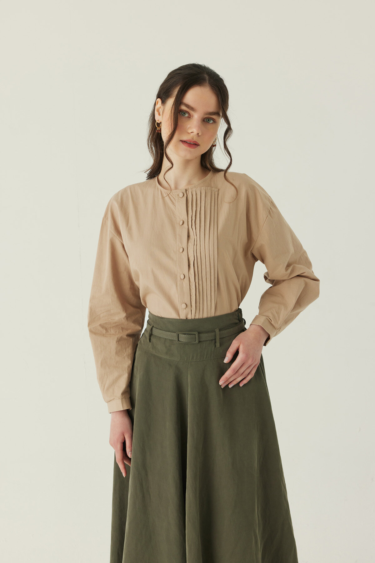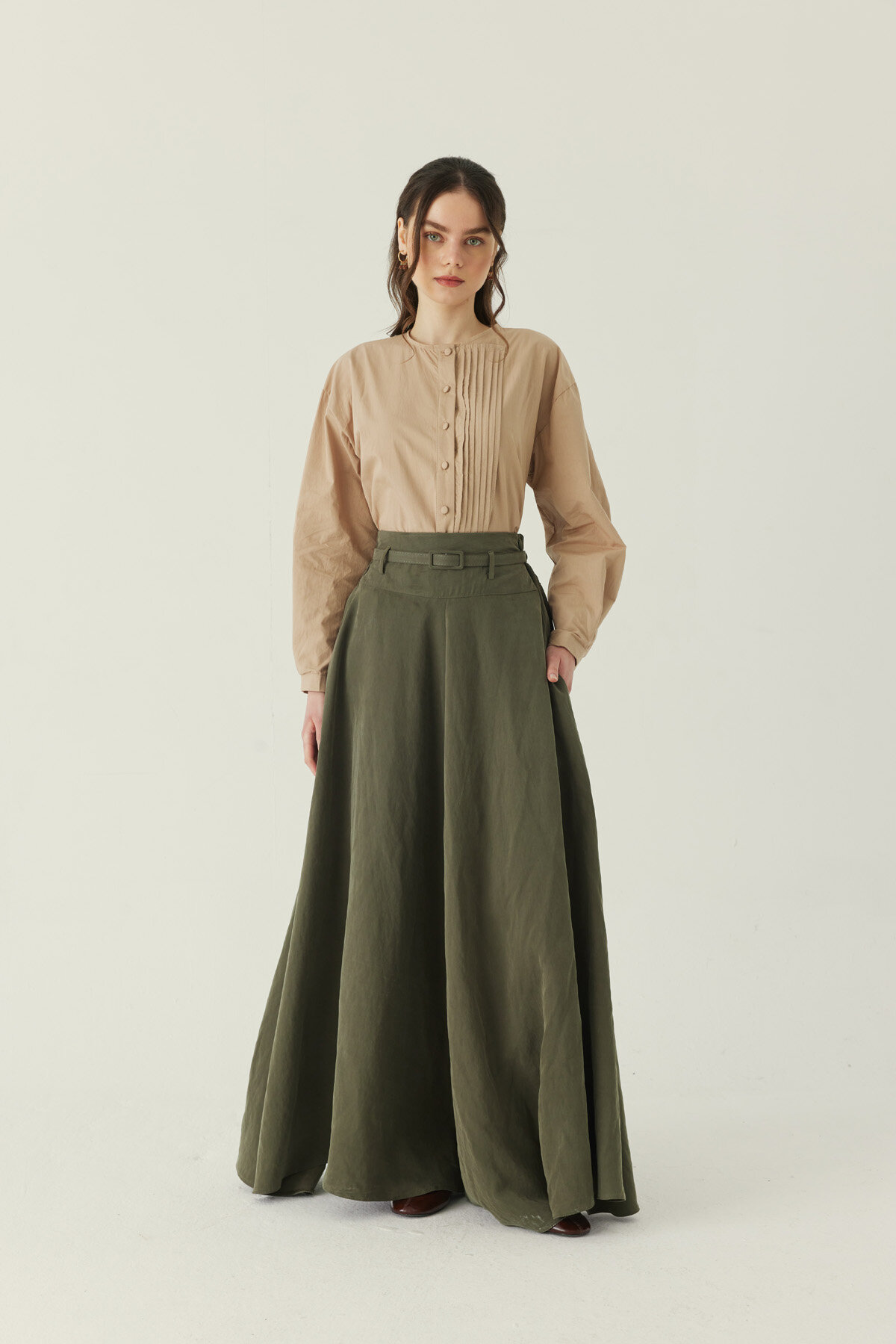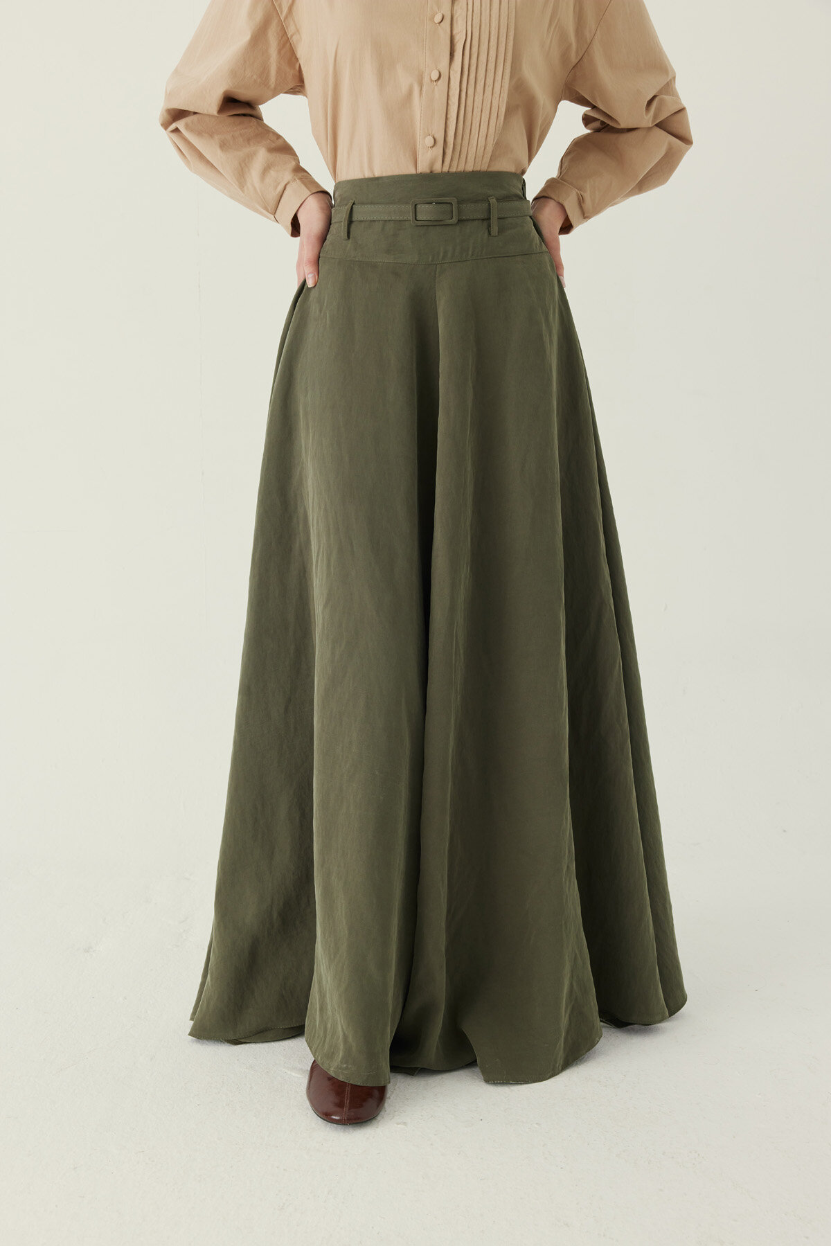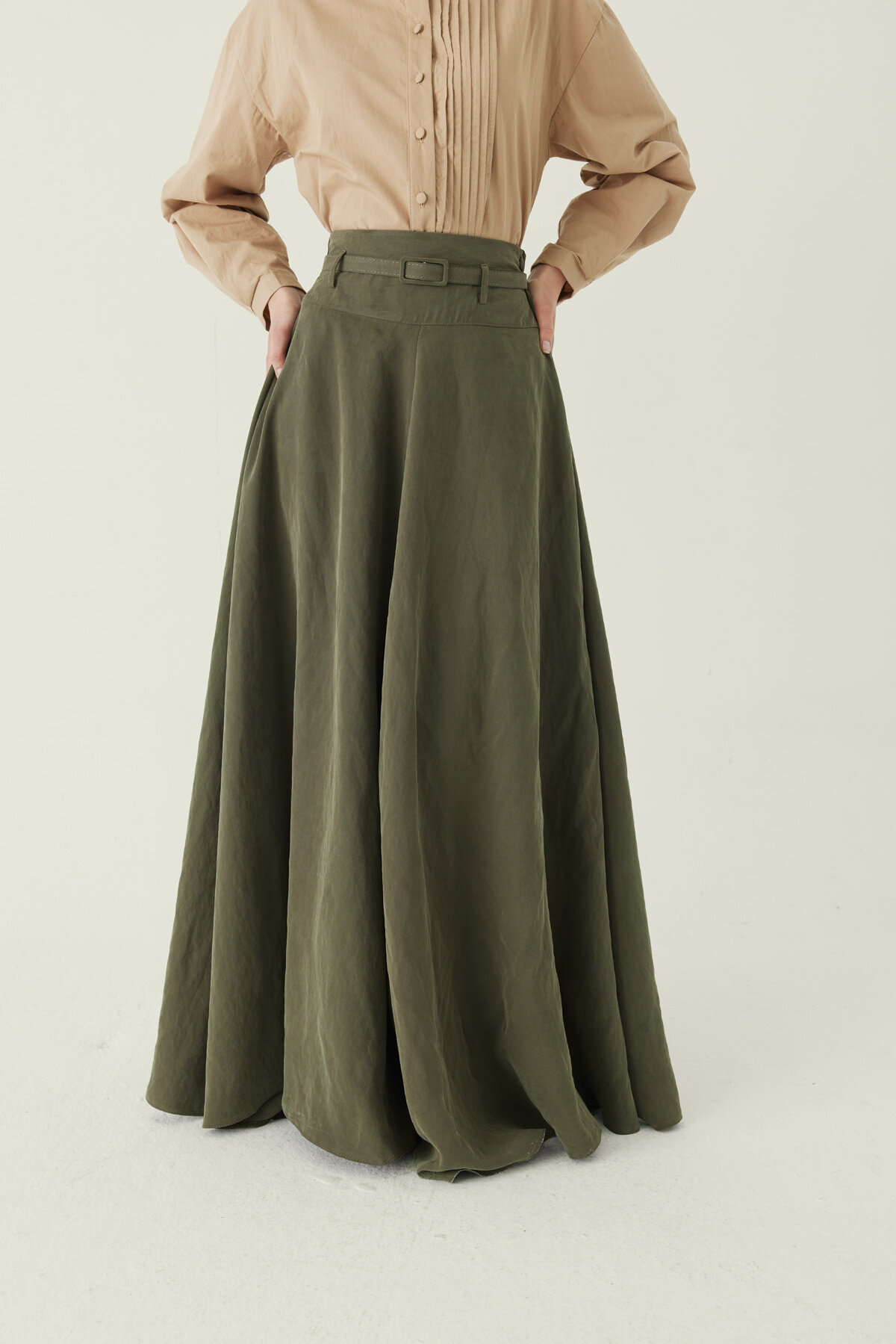 İnce Kemerli Modal Etek Haki