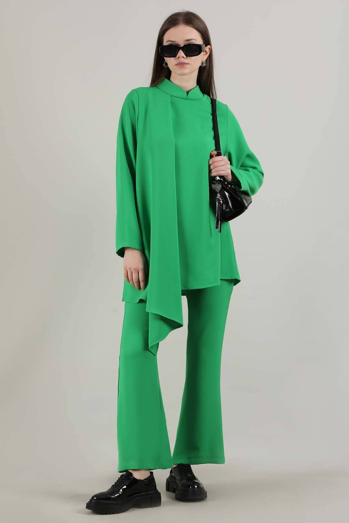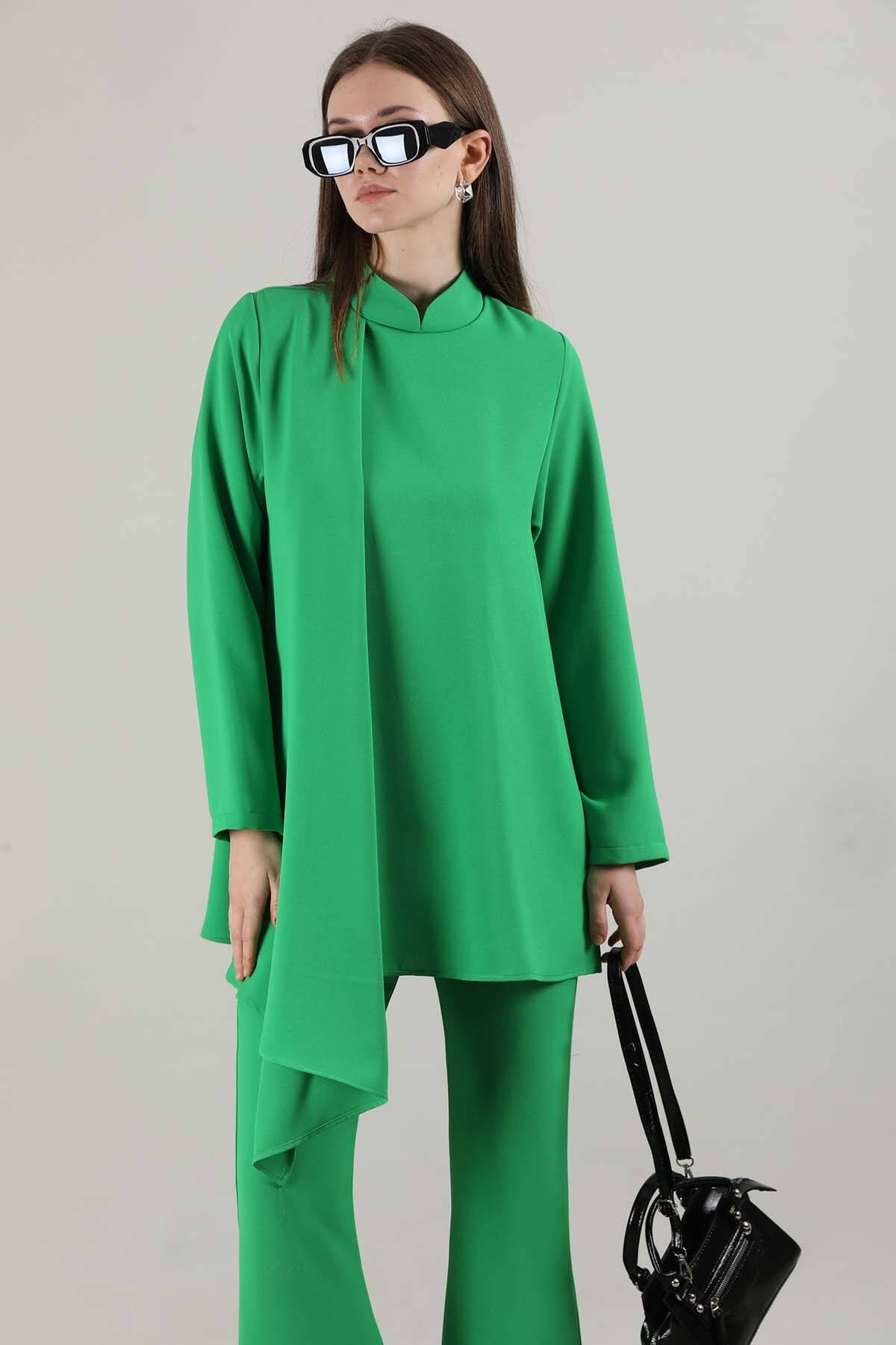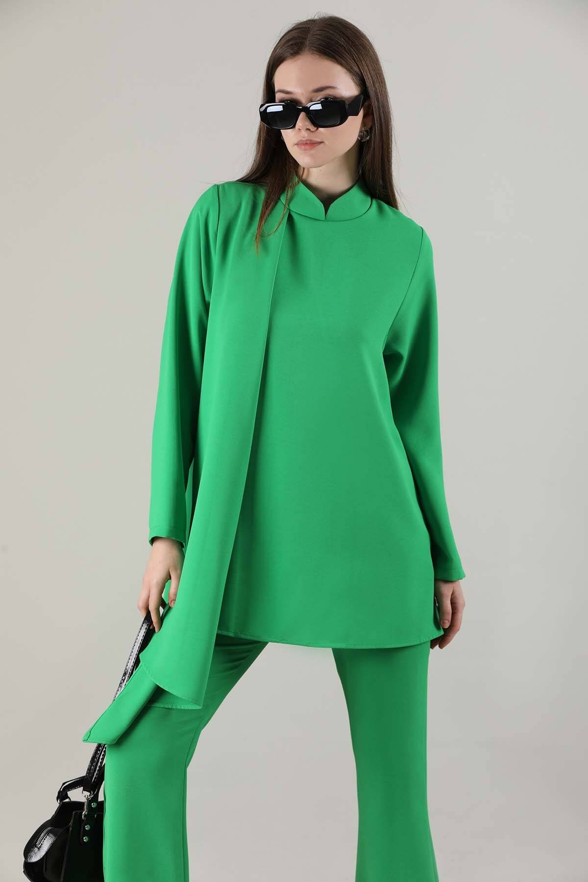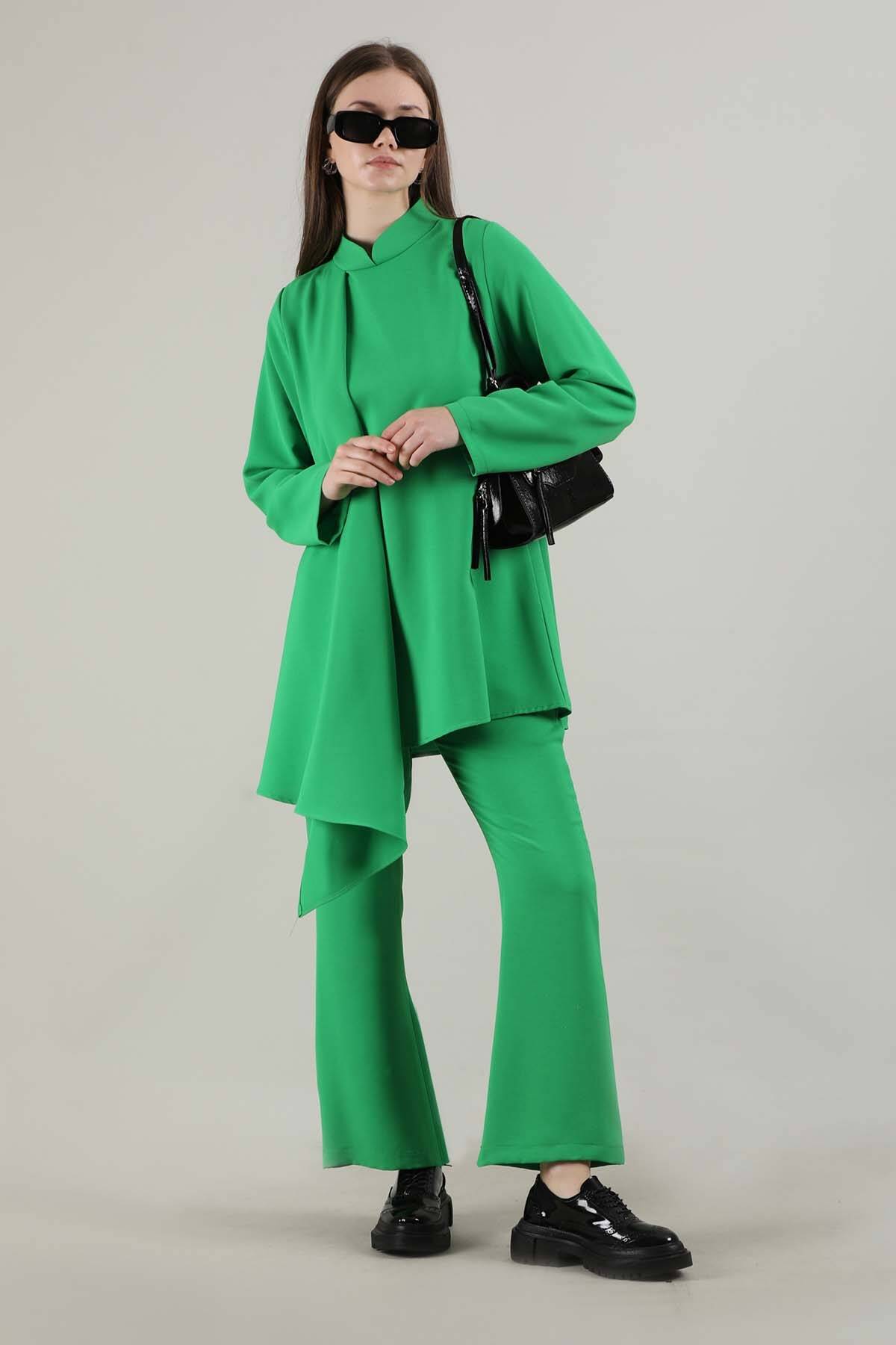 Asimetrik detaylı. Üst detaylı. Cepli. Pantolon ile takım olarak satılmaktadır.
