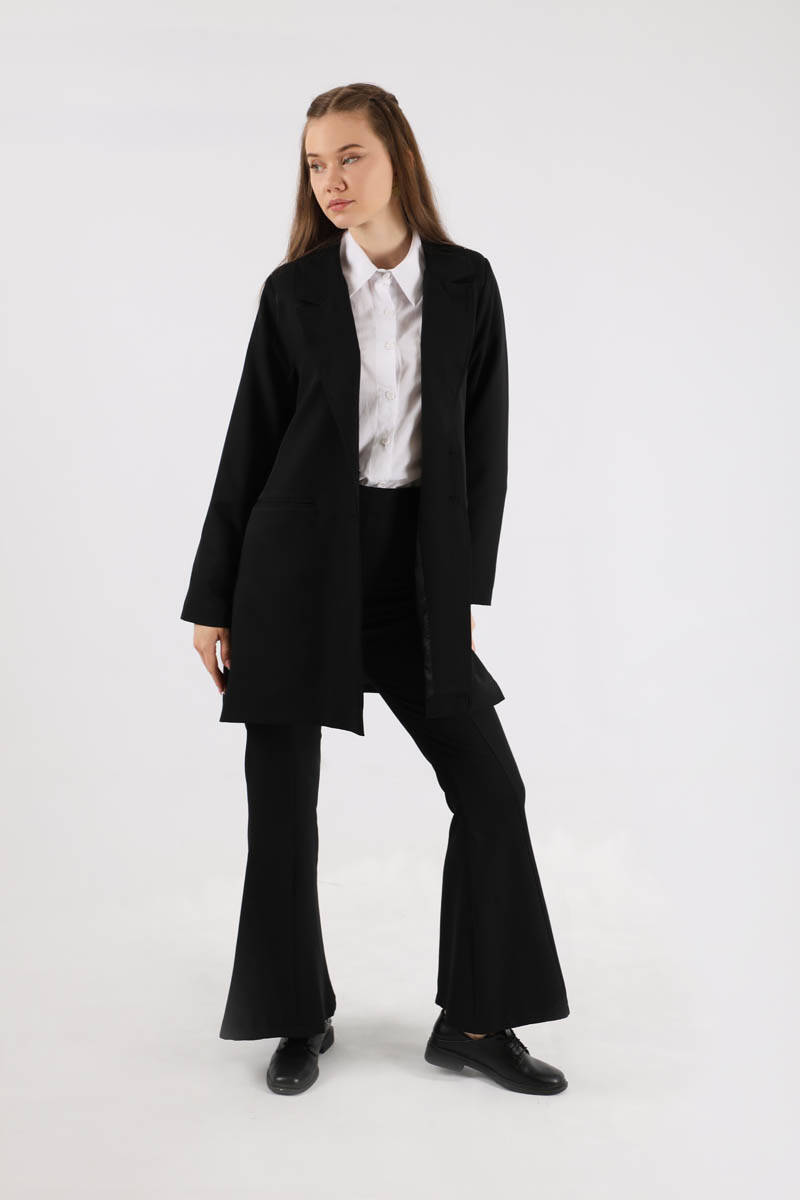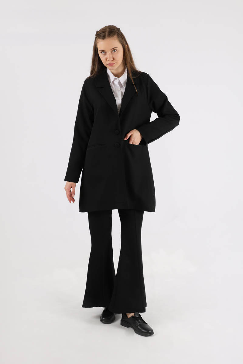 İspanyol Paça Ceket Pantolon Takım Siyah. Ceket astarlıdır. Omuz vatkalıdır. Ceplidir. Kaplama düğmelidir. Ceket yırtmaç detaylıdır. Pantolon ispanyol paçadır. Beli lastiklidir. Günlük kullanım ve özel günlerinizde tercih edebilirsiniz.ÜRÜN KALIBI DARDIR 1 BEDEN BÜYÜK TERCİH ETMELİSİNİZ.