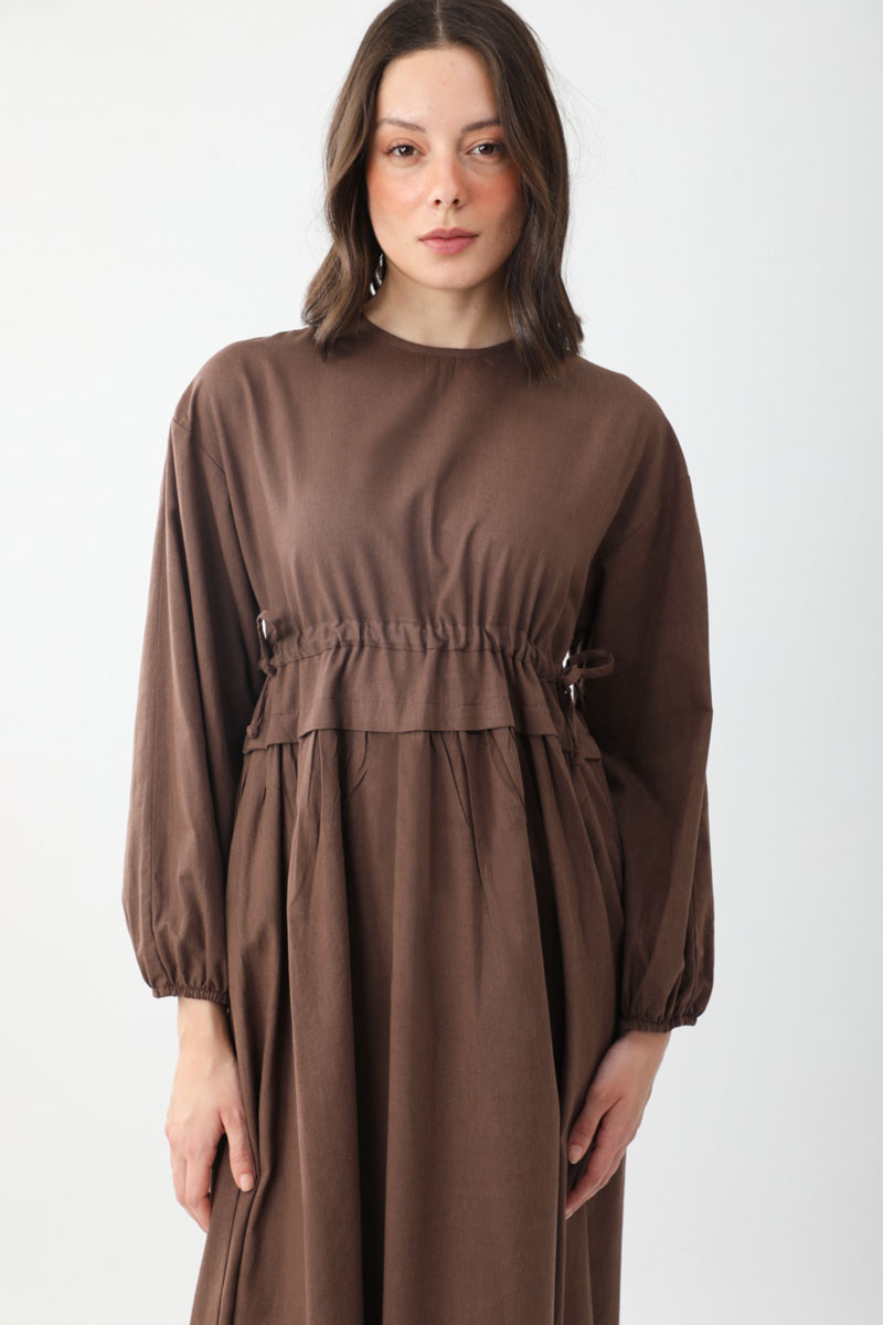 İynem Keten Elbise Kahverengi