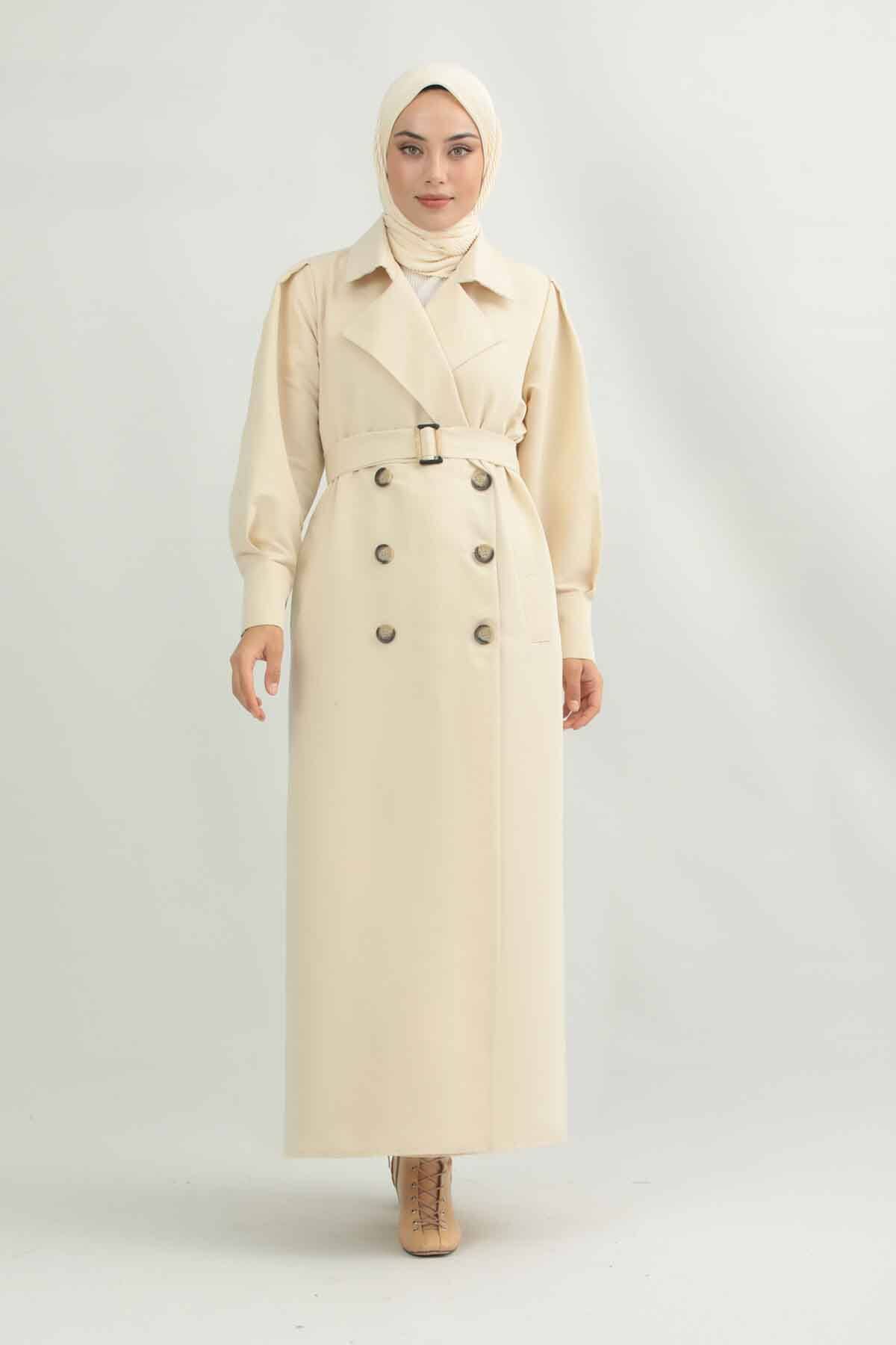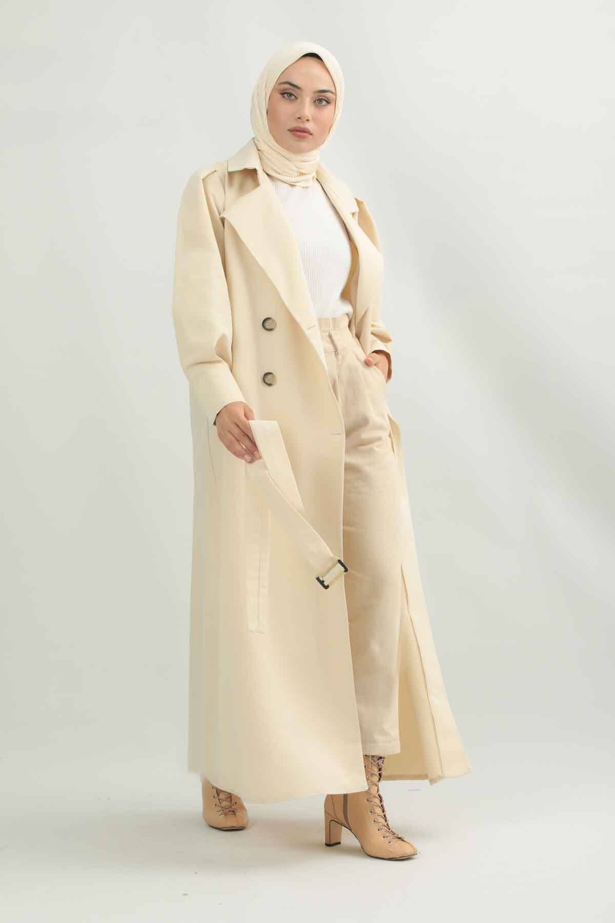 Jasmin Trençkot Krem ingiliz yaka olup kruvaze kapamadır. Trençkot belden kuşaklıdır ve cep detaylıdır. Ürün astarsızdır.