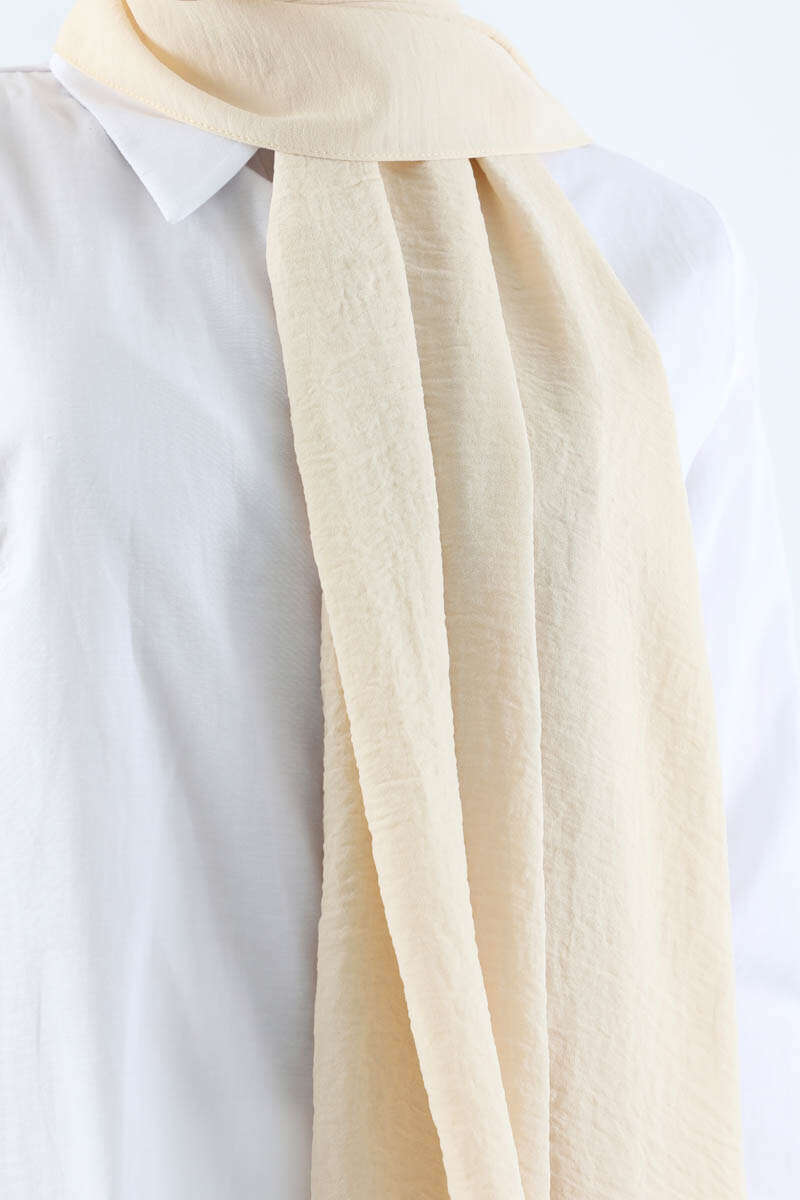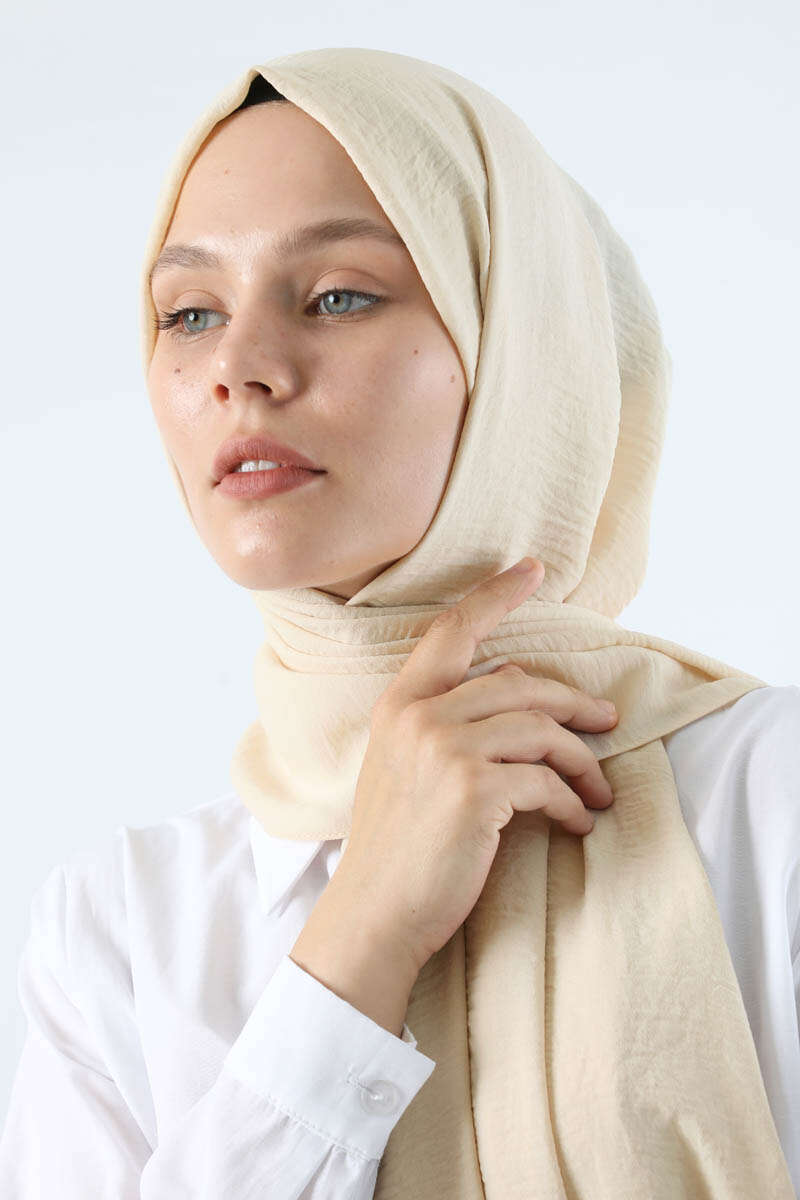 Jazz Şal Krem, 4 mevsim kullanıma uygun olmakla birlikte, Pamuksu dokusu sayesinde başınızda ağırlık yapmaz. Dokusu yumuşak ve ipeksidir. Önü kolay şekil alır, isterseniz dik isterseniz yuvarlak kullanabilirsiniz.