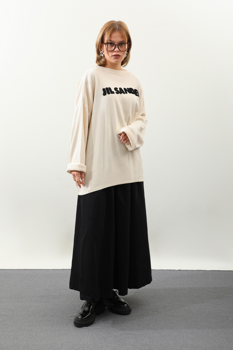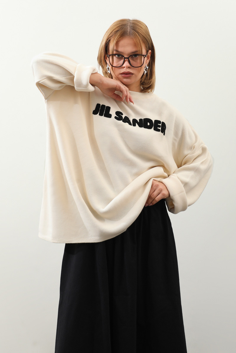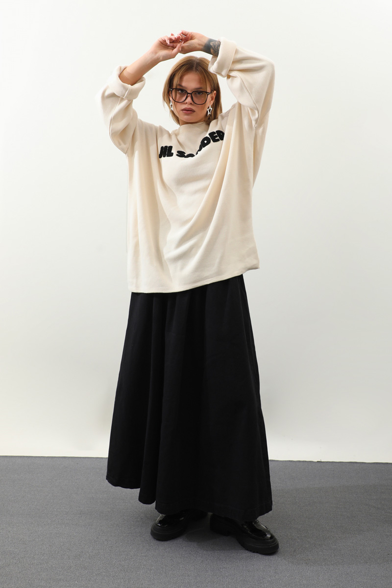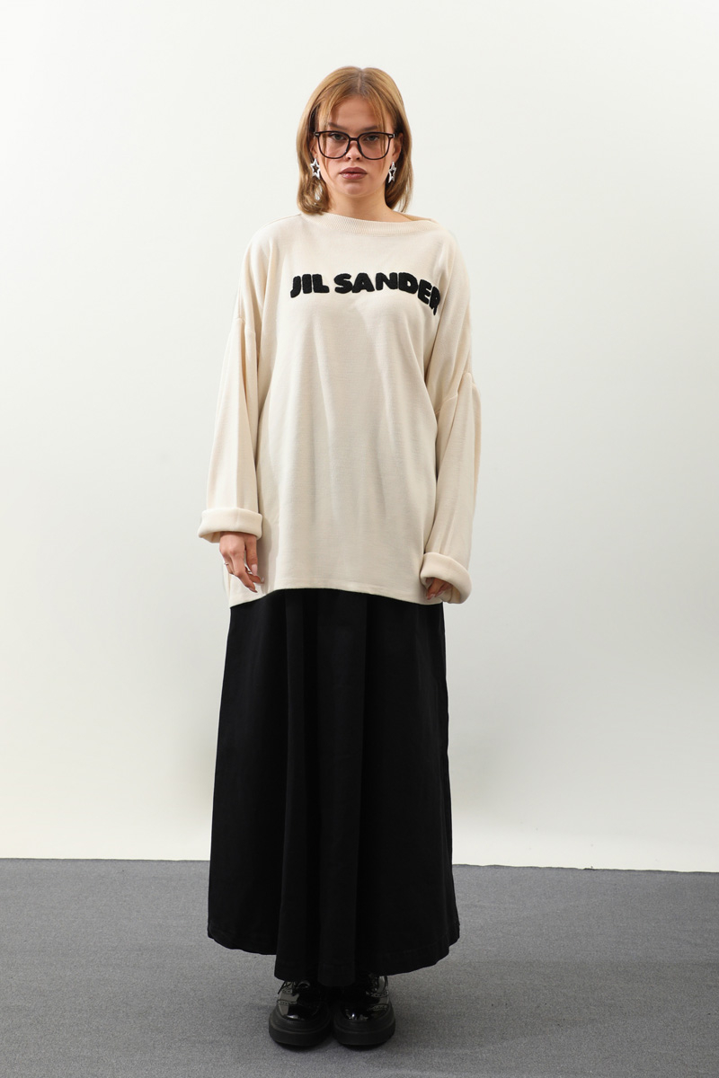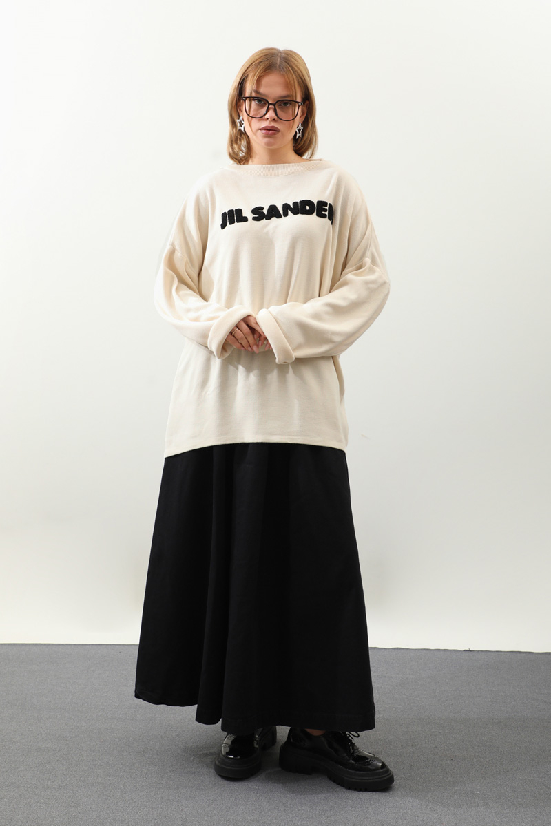 Jıl Sander Nakışlı Tunik Siyah. Bisiklet yakalıdır, düşük omuzludur, fittişi ince triko, önü kıvırcık nakış detaylıdır, Günlük kullanım ve özel günlerinizde tercih edebilirsiniz.