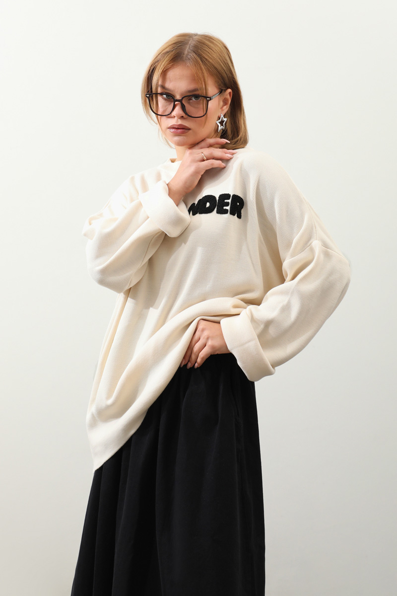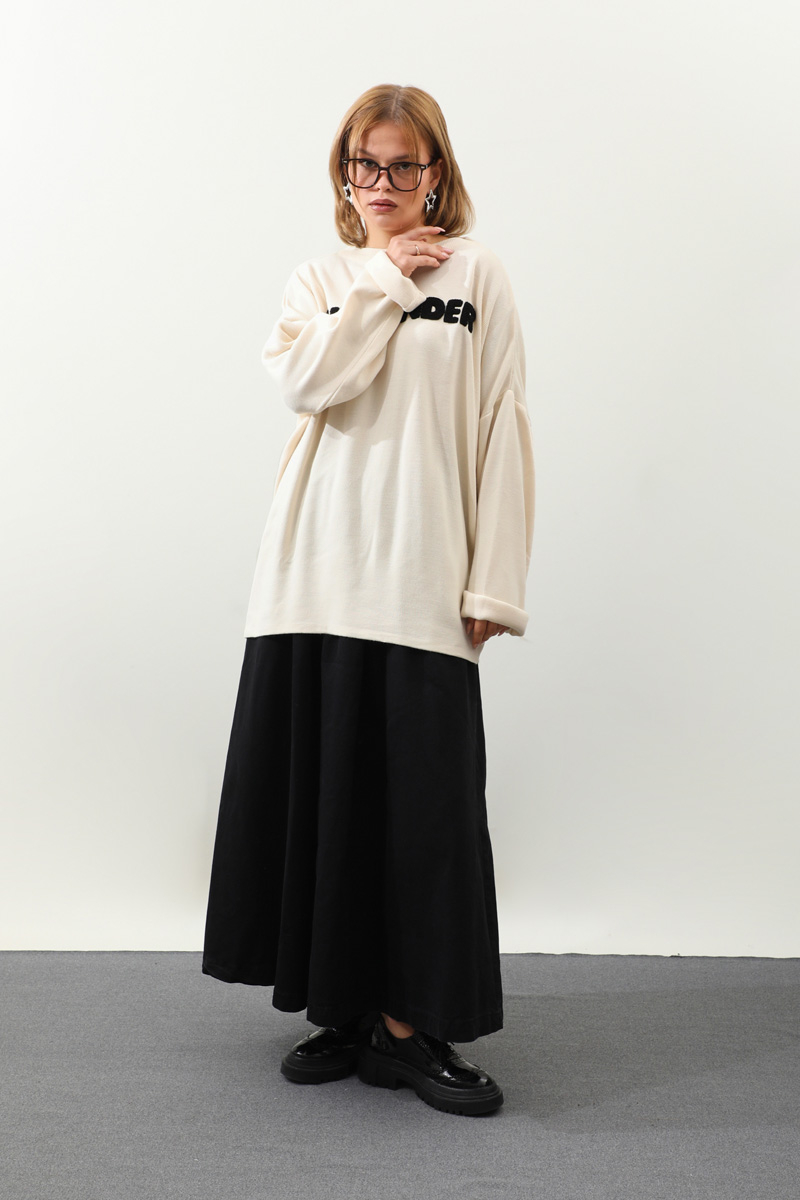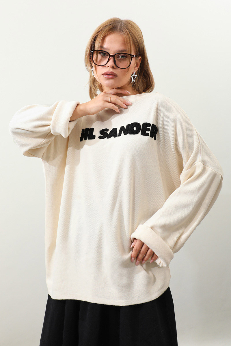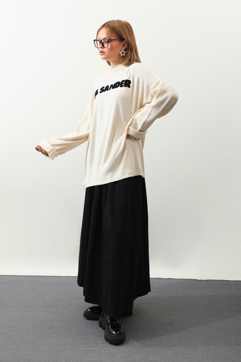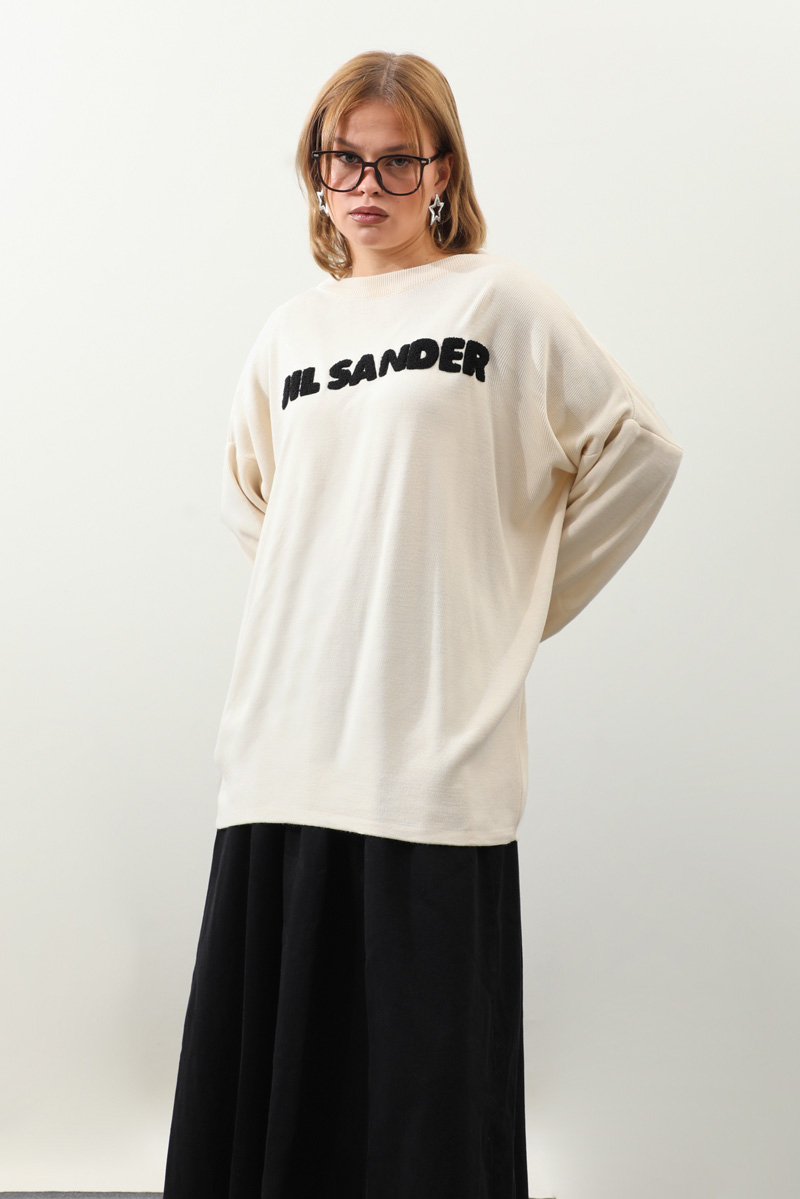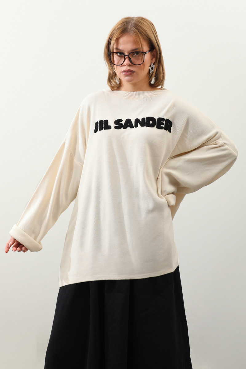 Jıl Sander Nakışlı Tunik Siyah. Bisiklet yakalıdır, düşük omuzludur, fittişi ince triko, önü kıvırcık nakış detaylıdır, Günlük kullanım ve özel günlerinizde tercih edebilirsiniz.