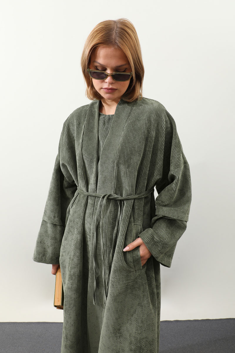 Kadife Abaya Takım Haki