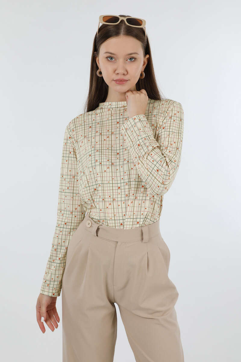 Kalp Desenli Body Krem. Yarım balıkçı yakalıdır. Uzun kolludur. Yumuşak ve esnek kumaşlıdır. Günlük kullanım ve özel günlerinizde tercih edebilirsiniz.