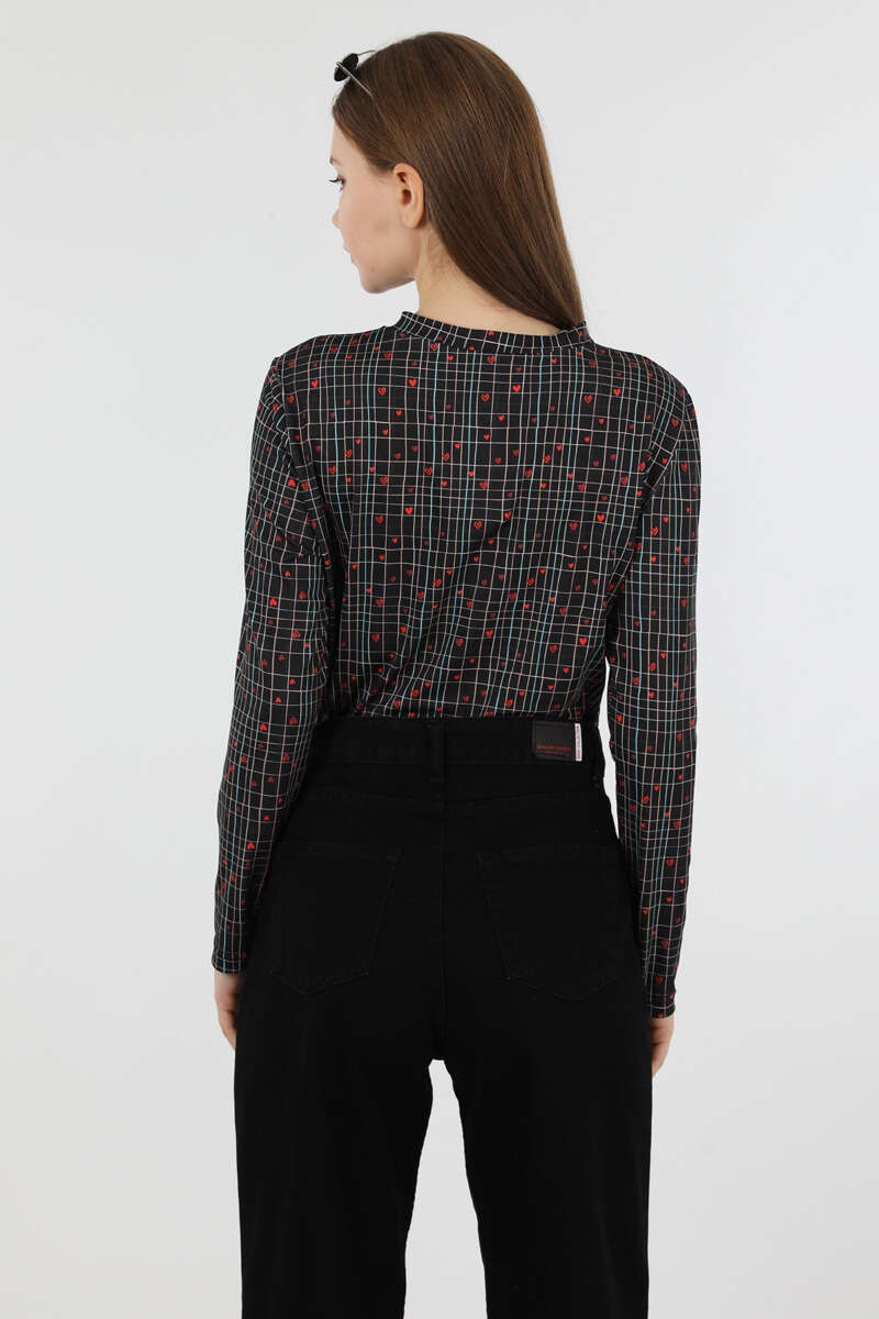 Kalp Desenli Body Siyah