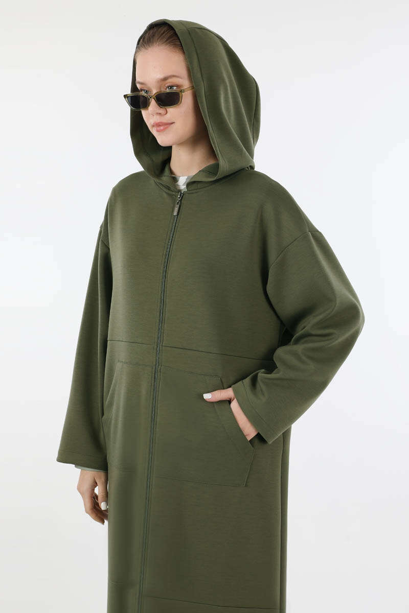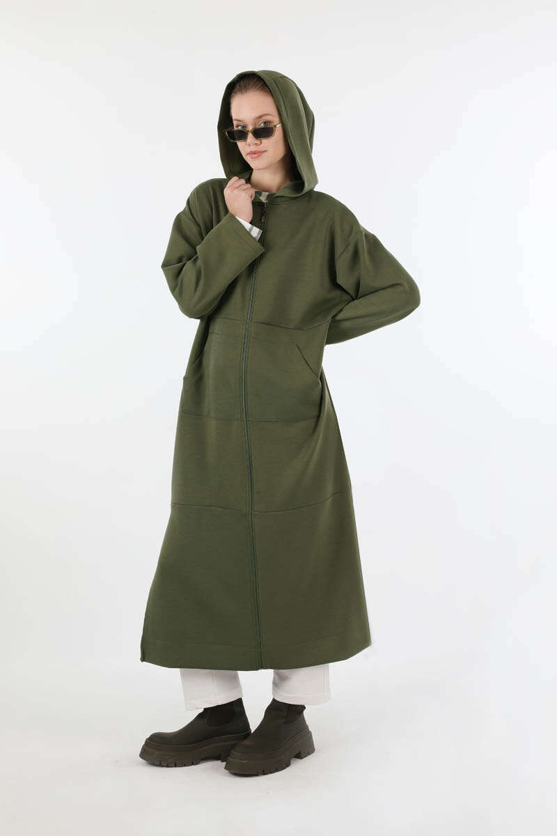 Kanguru Cepli Uzun Hırka Haki. Kanguru ceplidir. Yandan yırtmaçlıdır. Önden fermuarlıdır. Düşük omuzludur. Kapüşonludur. Günlük kullanım ve özel günlerinizde tercih edebilirsiniz.