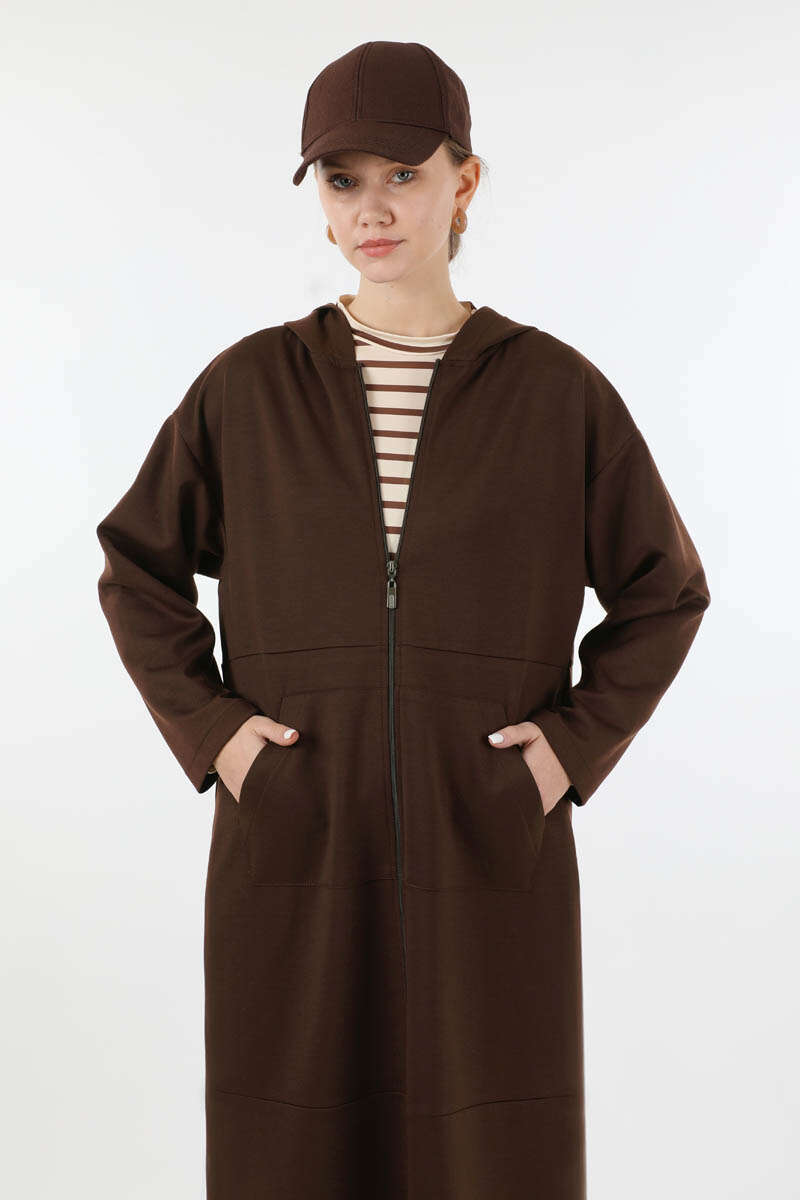 Kanguru Cepli Uzun Hırka Kahve. Kanguru ceplidir. Yandan yırtmaçlıdır. Önden fermuarlıdır. Düşük omuzludur. Kapüşonludur. Günlük kullanım ve özel günlerinizde tercih edebilirsiniz.