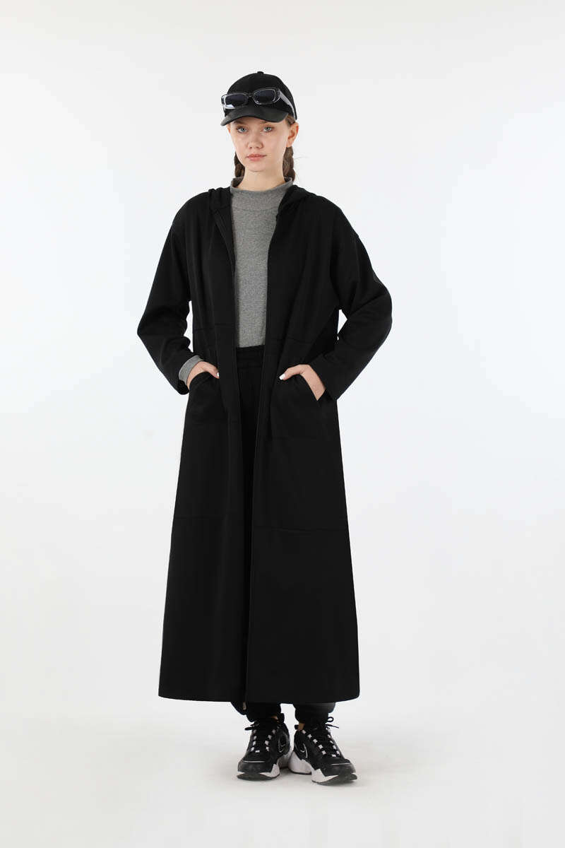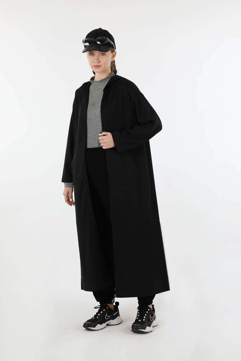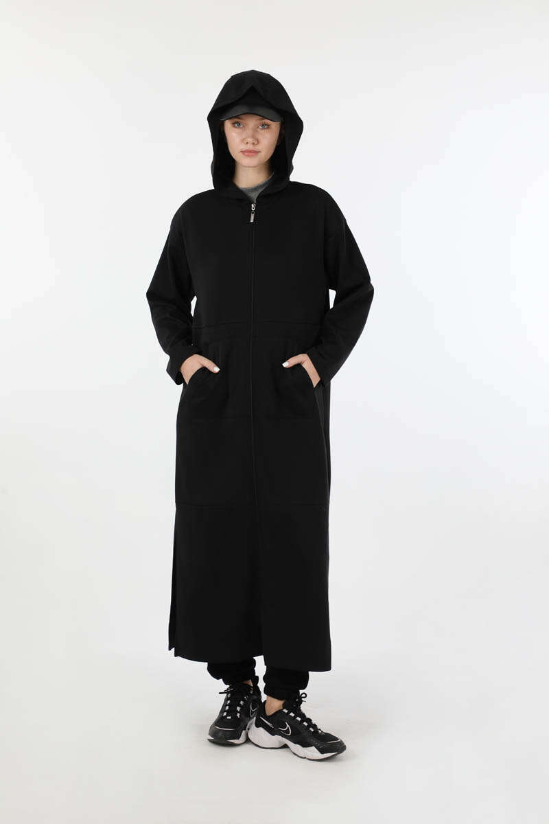 Kanguru Cepli Uzun Hırka Siyah. Kanguru ceplidir. Yandan yırtmaçlıdır. Önden fermuarlıdır. Düşük omuzludur. Kapüşonludur. Günlük kullanım ve özel günlerinizde tercih edebilirsiniz.