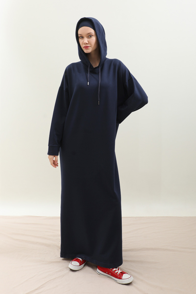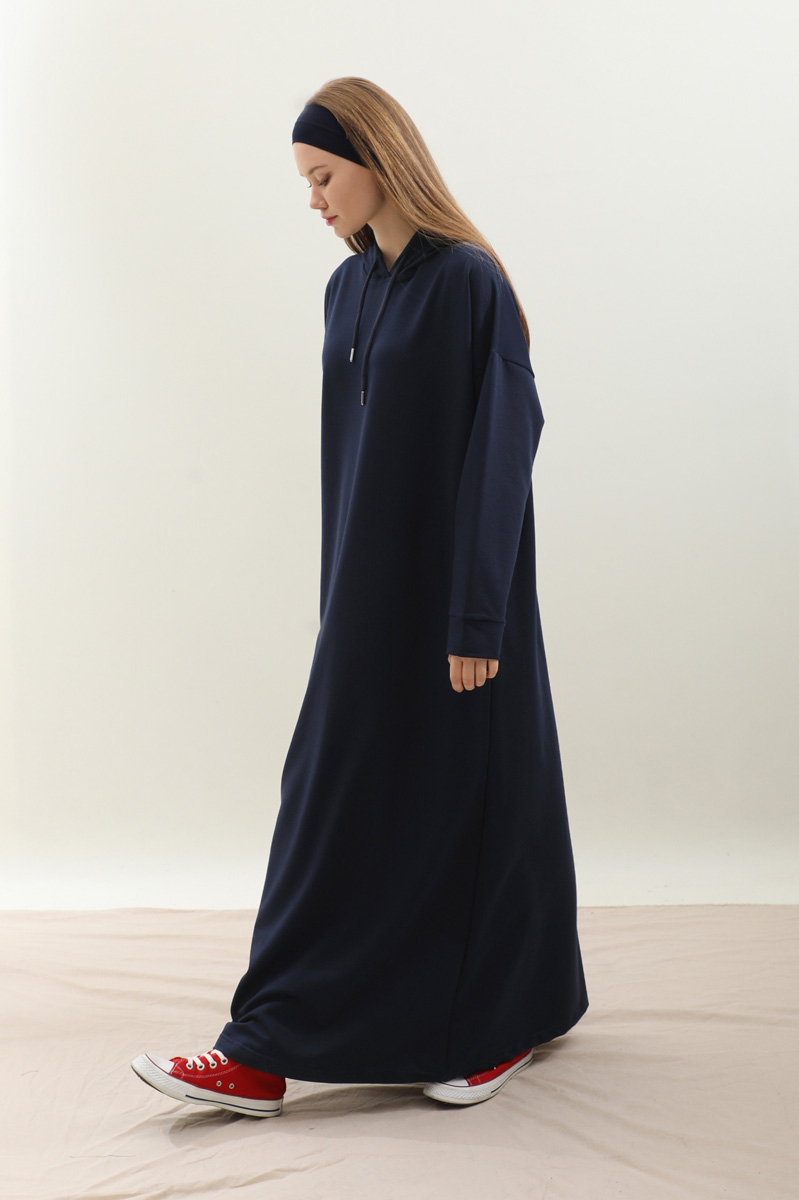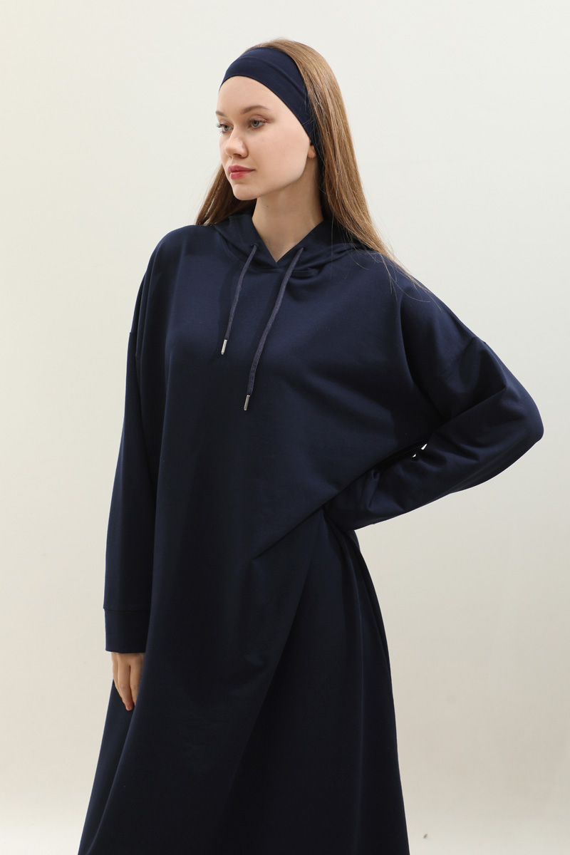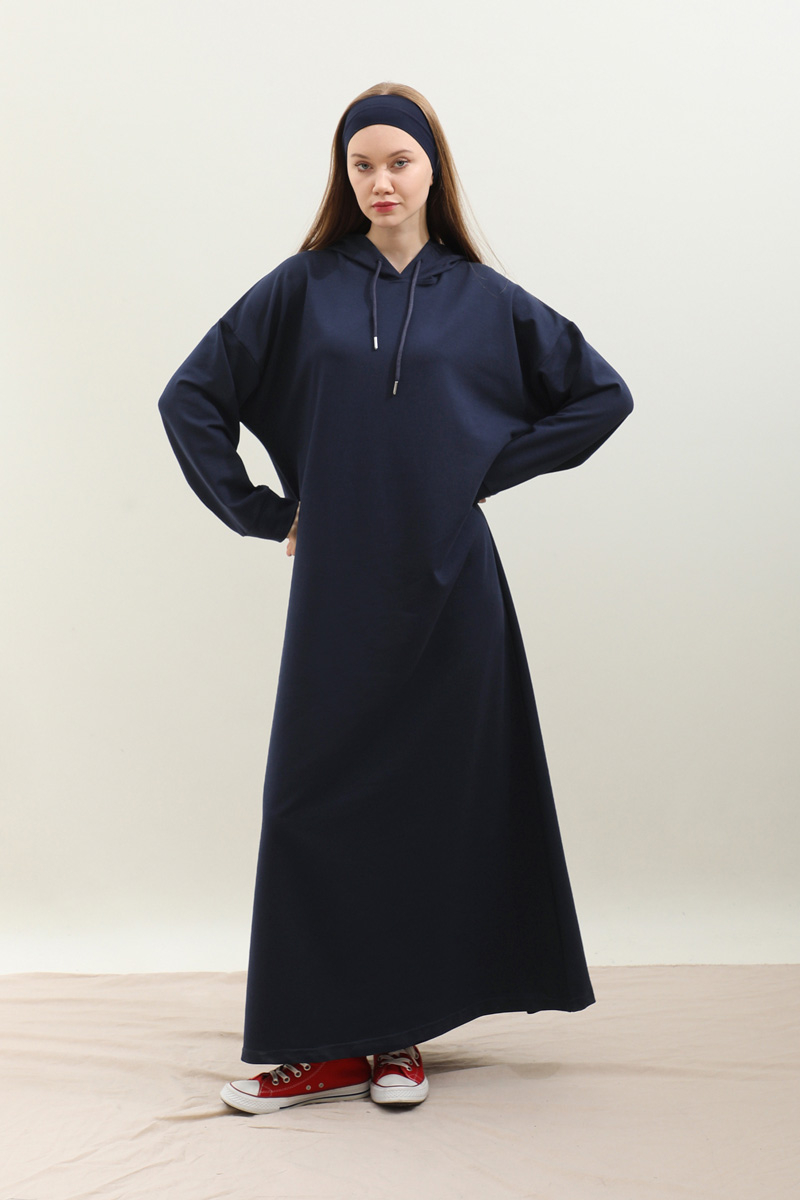 Kapişonlu Elbise Lacivert