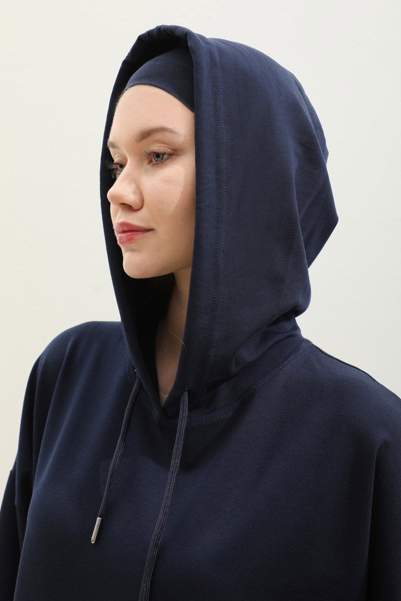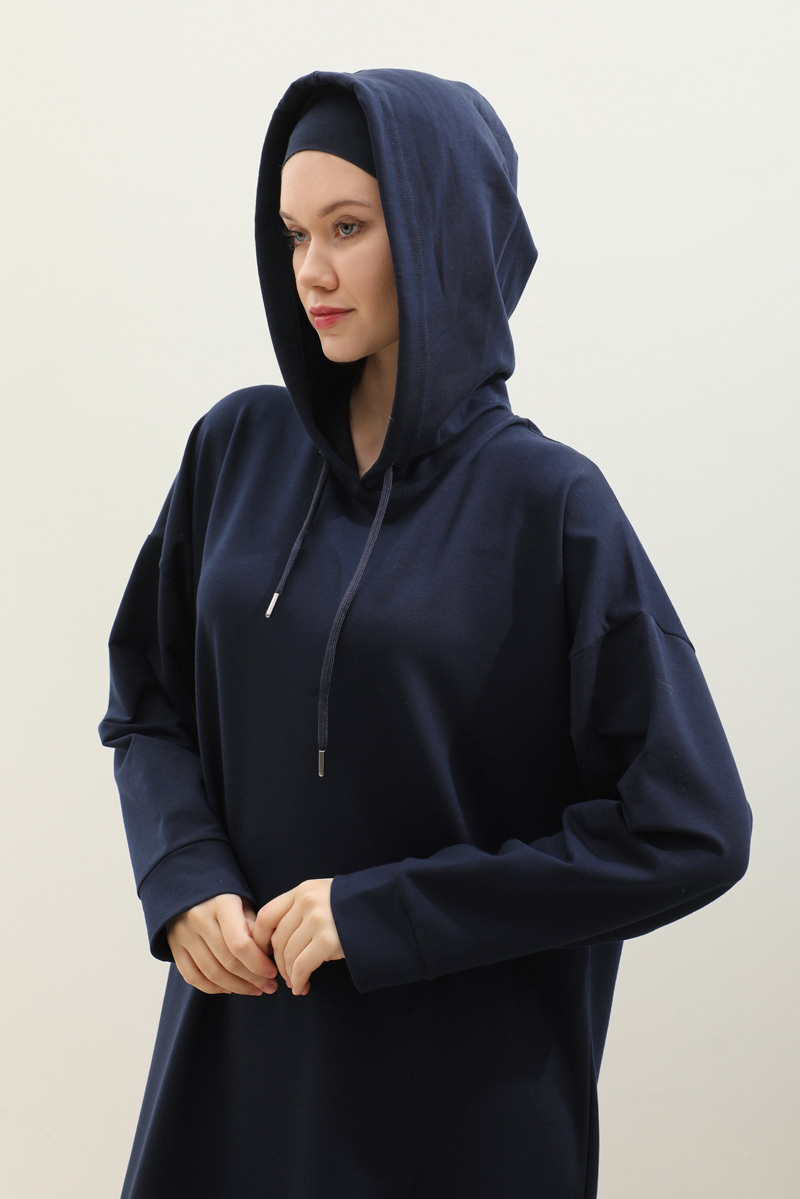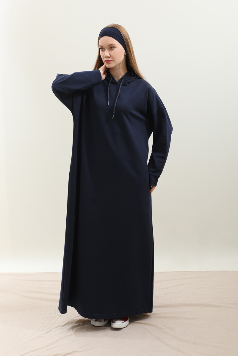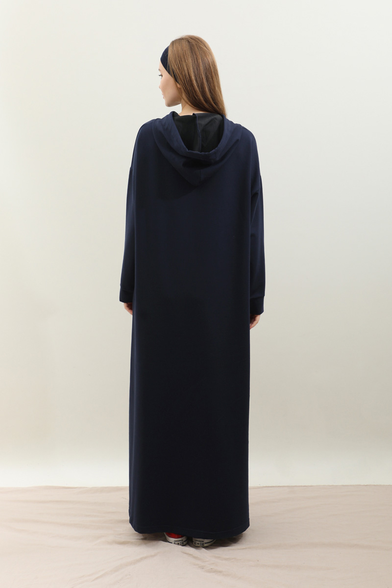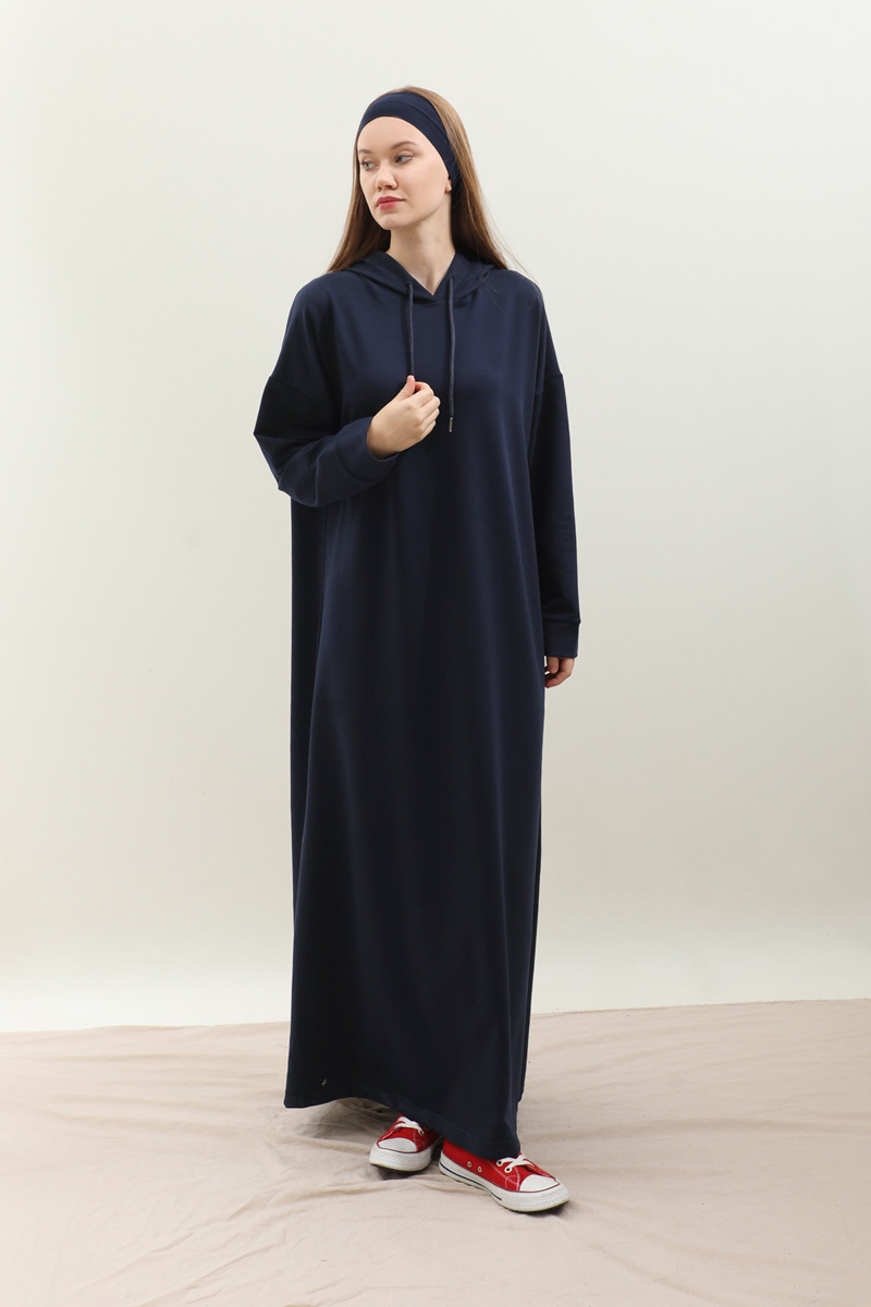 Kapişonlu Elbise Lacivert