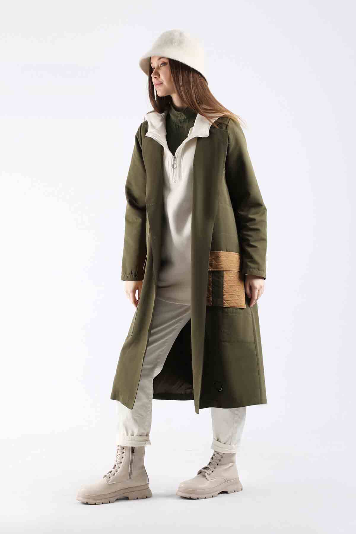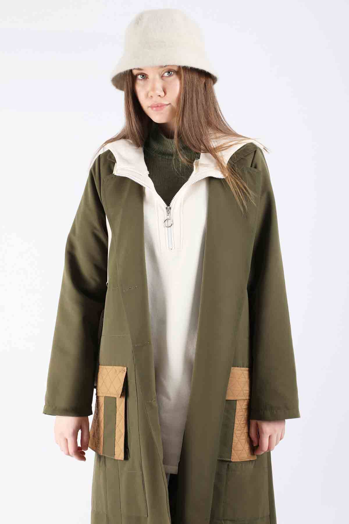 Kapitone Cepli Trençkot Haki