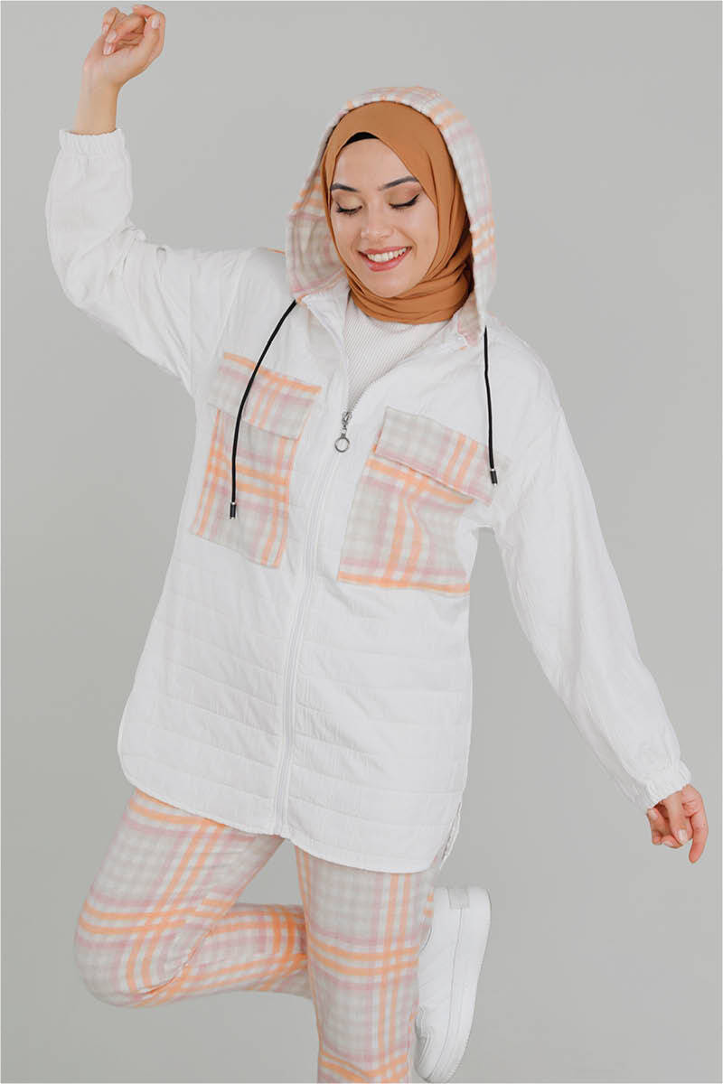 Kapitone Kareli Takım Beyaz