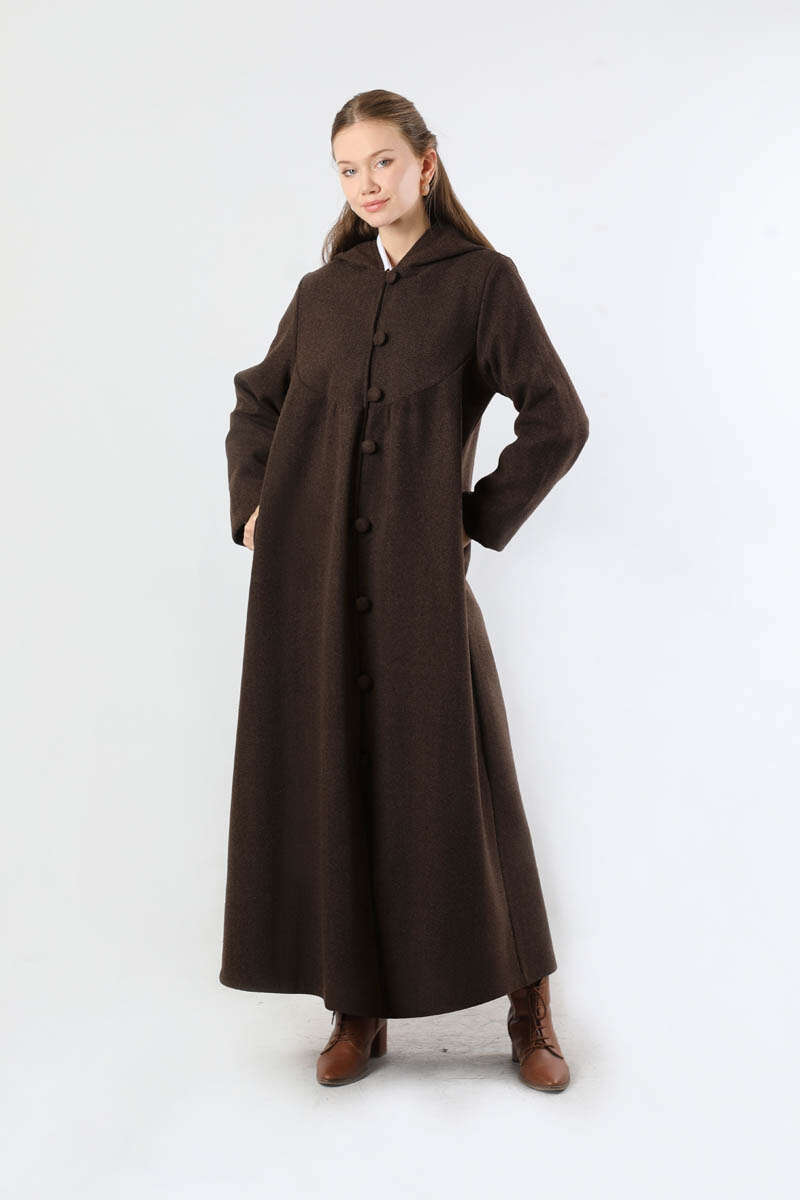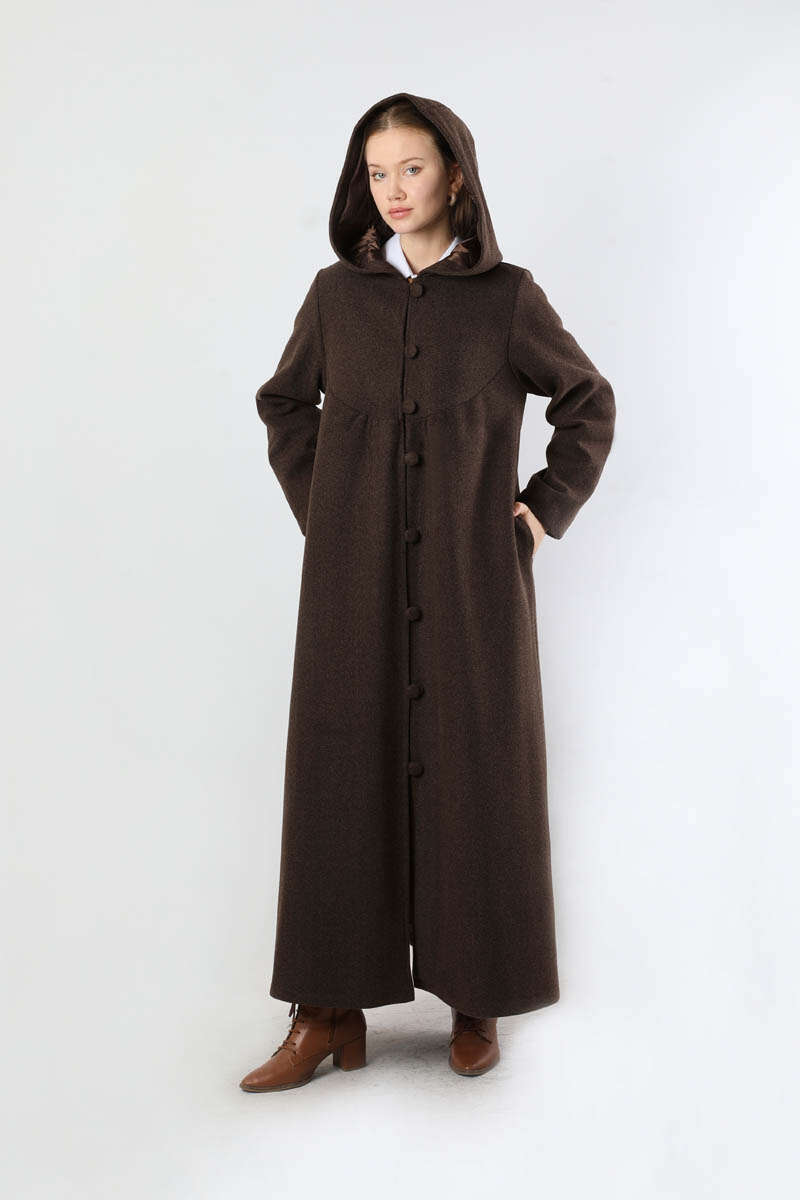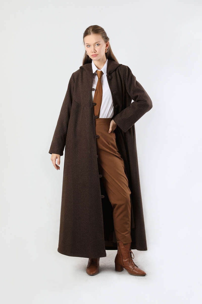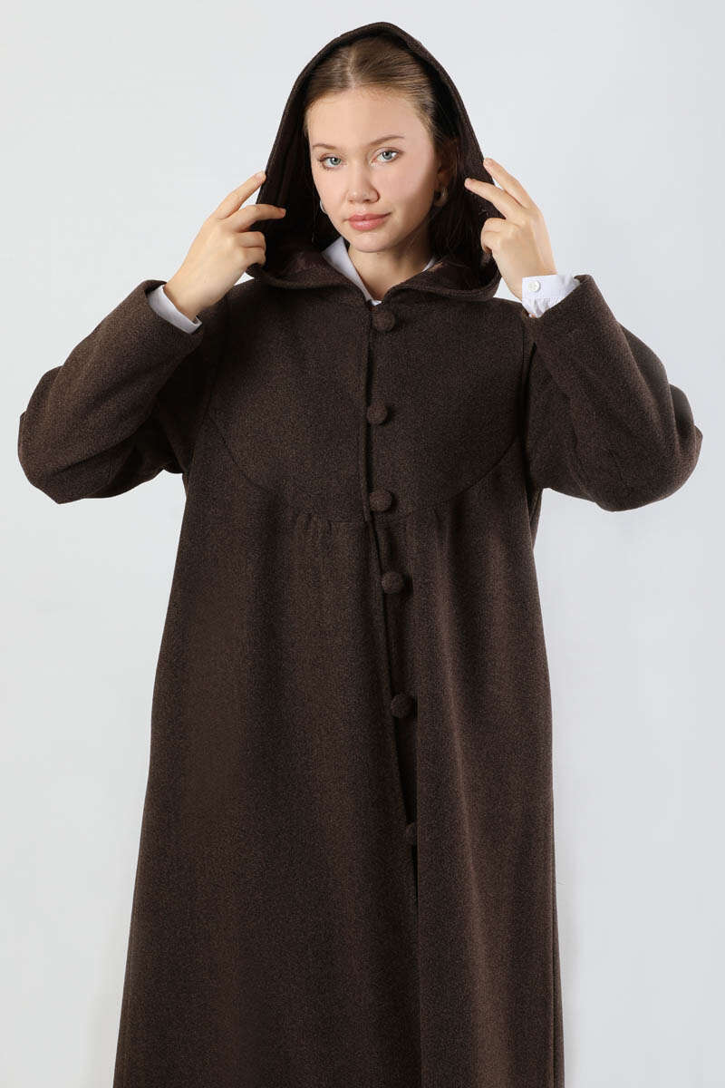 Kapüşonlu Düğmeli Kaban Kahverengi. Ön roba detaylıdır ve büzgülüdür. Kapüşünludur. Kaplama düğmelidir. Astarlıdır. Günlük kullanım ve özel günlerinizde tercih edebilirsiniz.