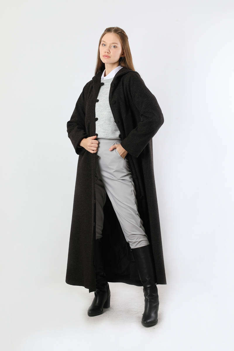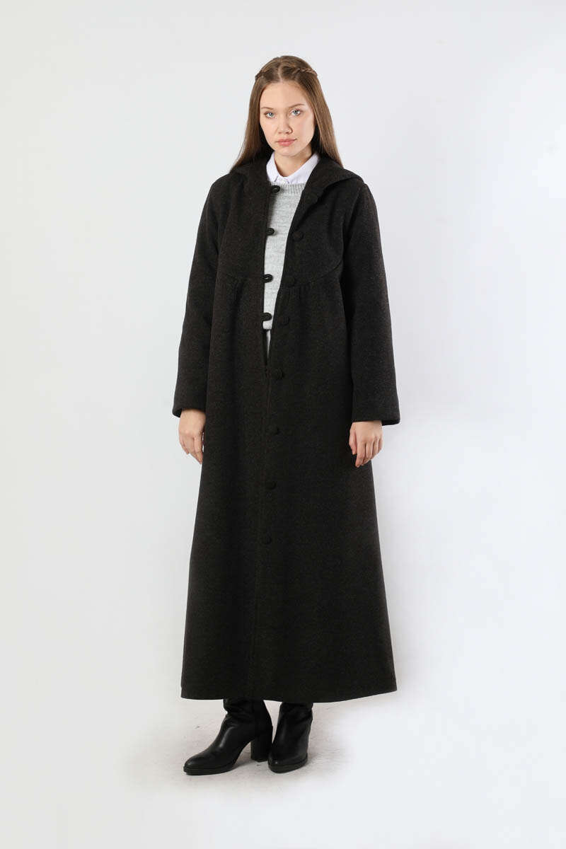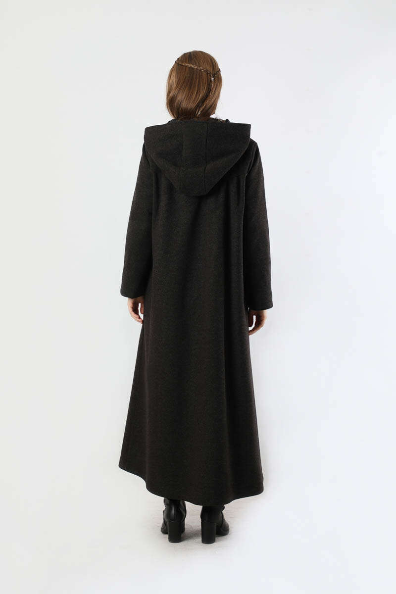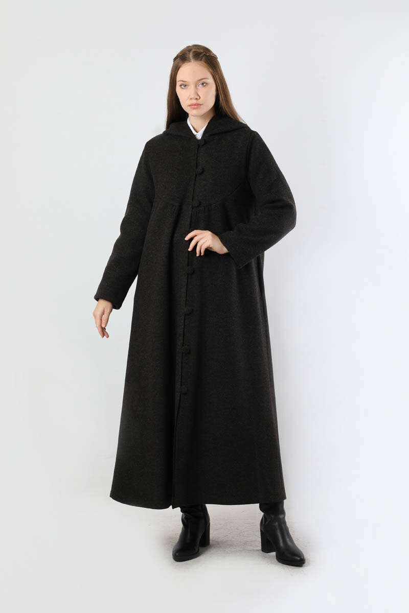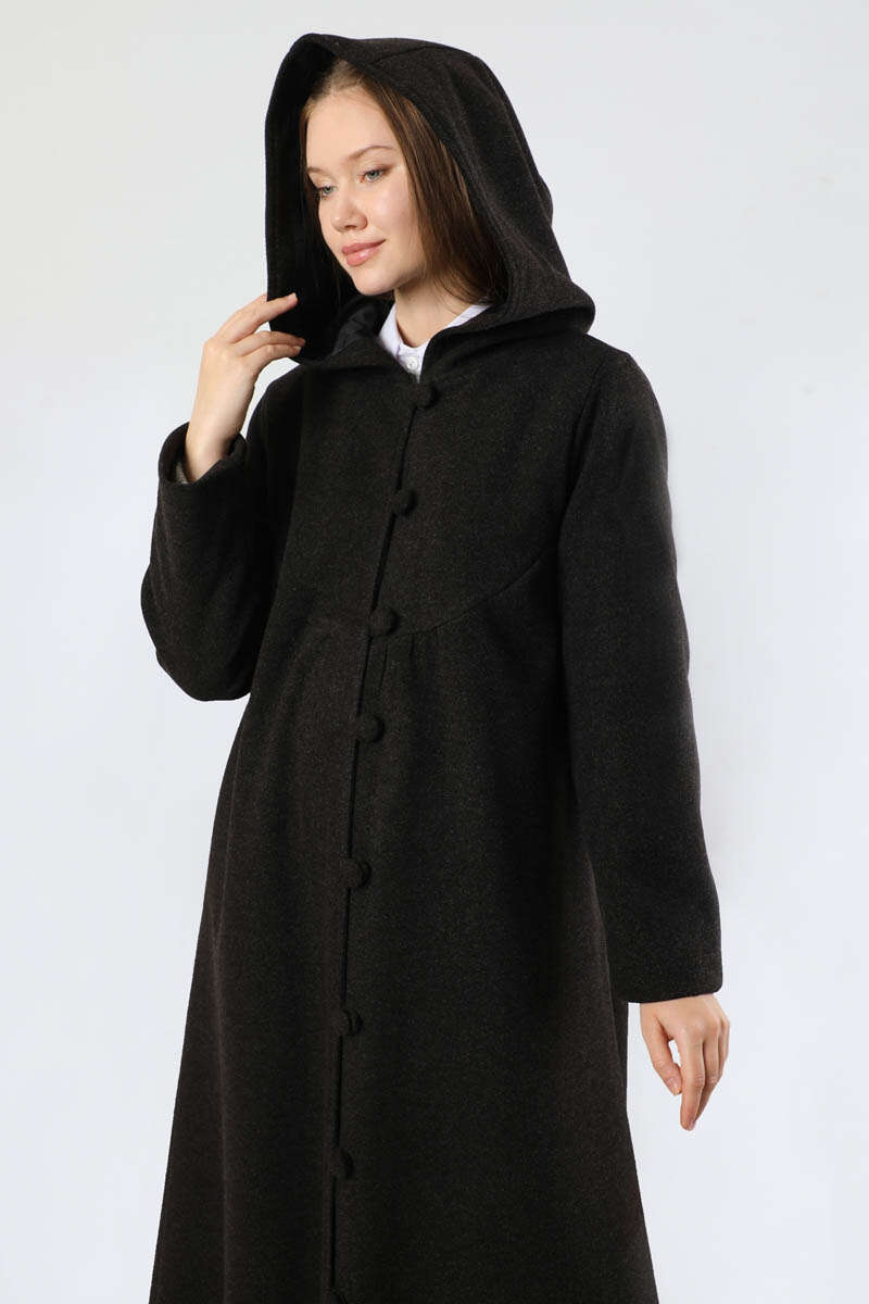 Kapüşonlu Düğmeli Kaban Siyah. Ön roba detaylıdır ve büzgülüdür. Kapüşünludur. Kaplama düğmelidir. Astarlıdır. Günlük kullanım ve özel günlerinizde tercih edebilirsiniz.