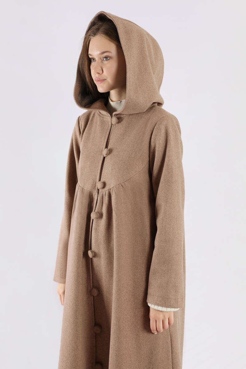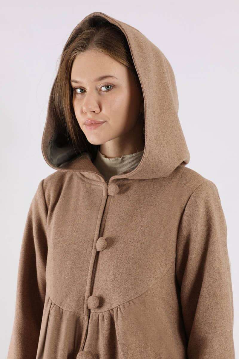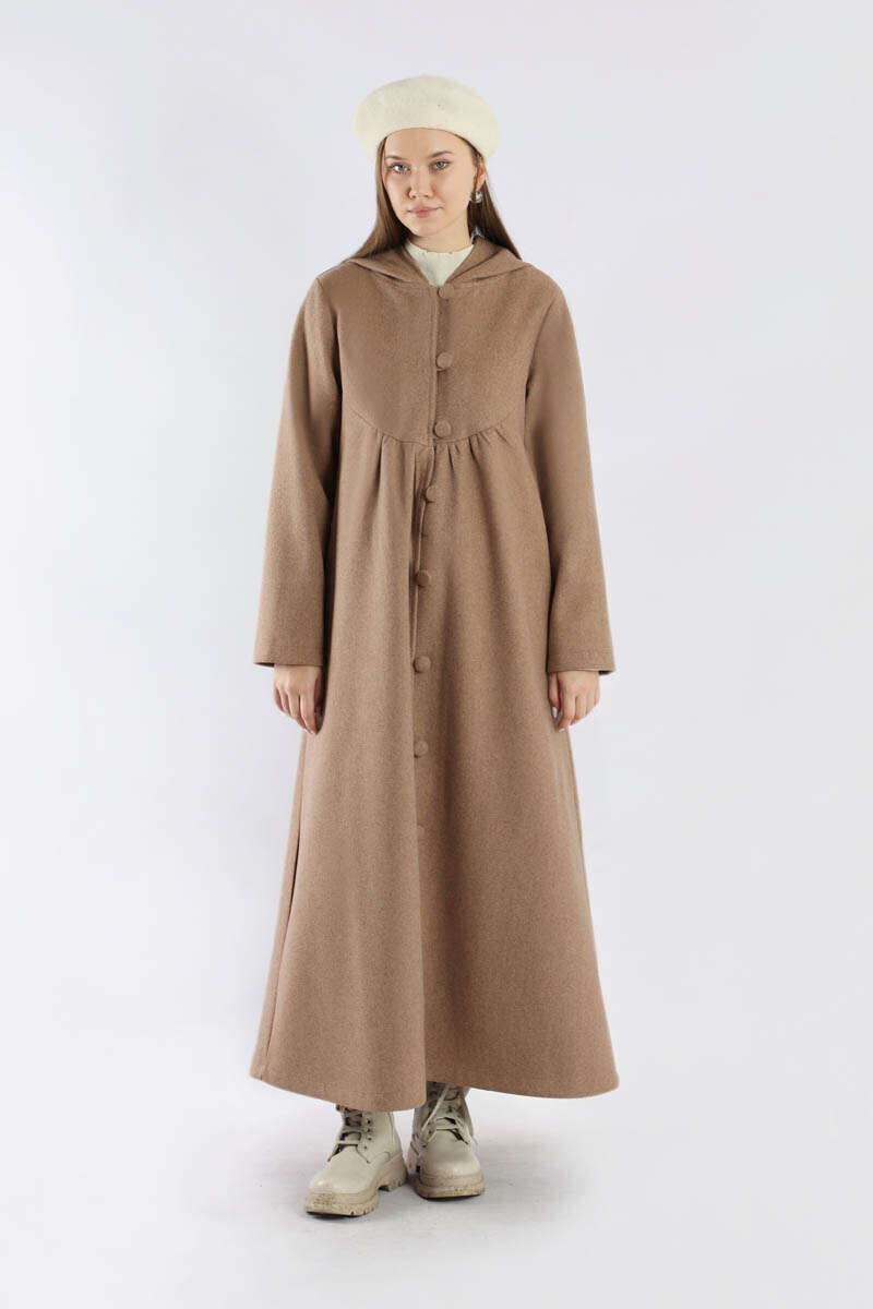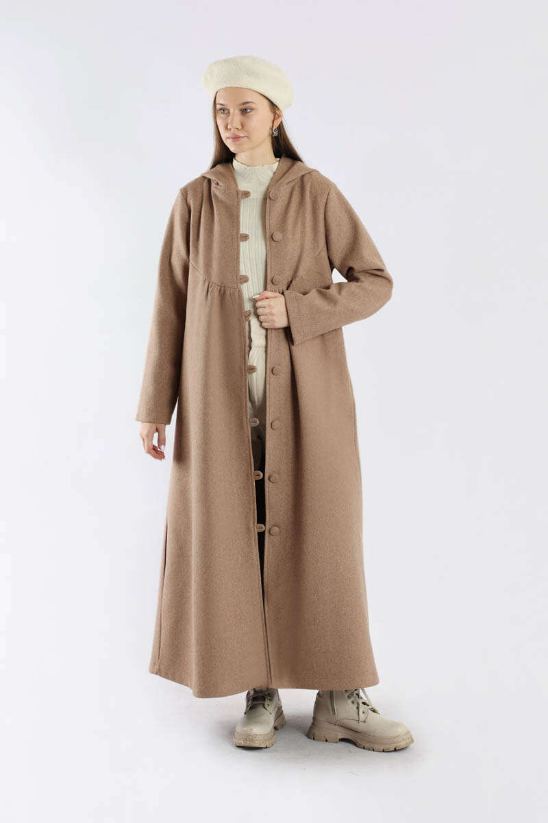 Kapüşonlu Düğmeli Kaban Vizon. Ön roba detaylıdır ve büzgülüdür. Kapüşünludur. Kaplama düğmelidir. Astarlıdır. Günlük kullanım ve özel günlerinizde tercih edebilirsiniz.