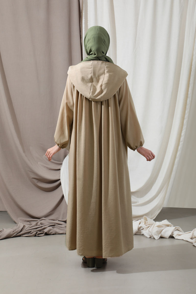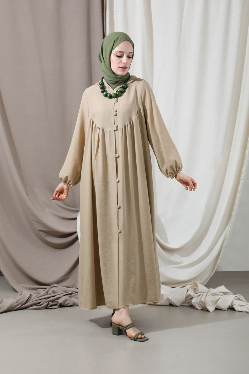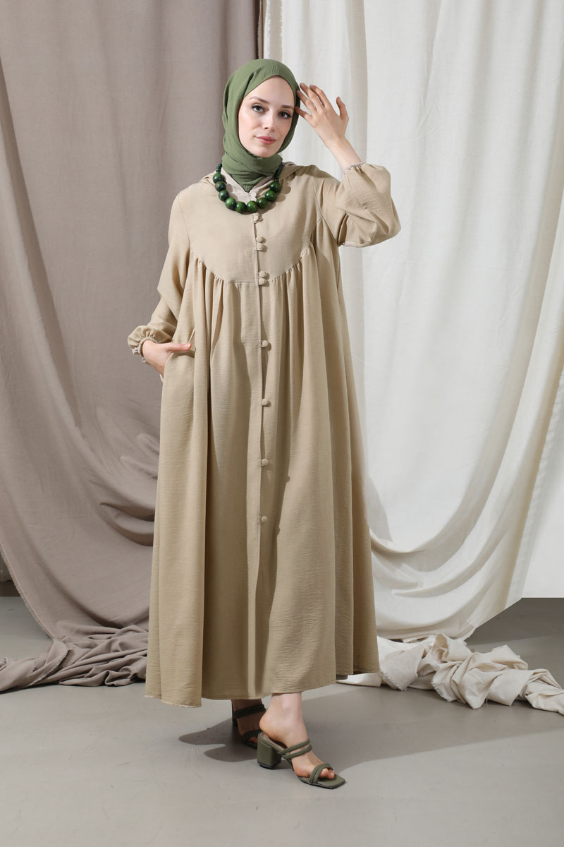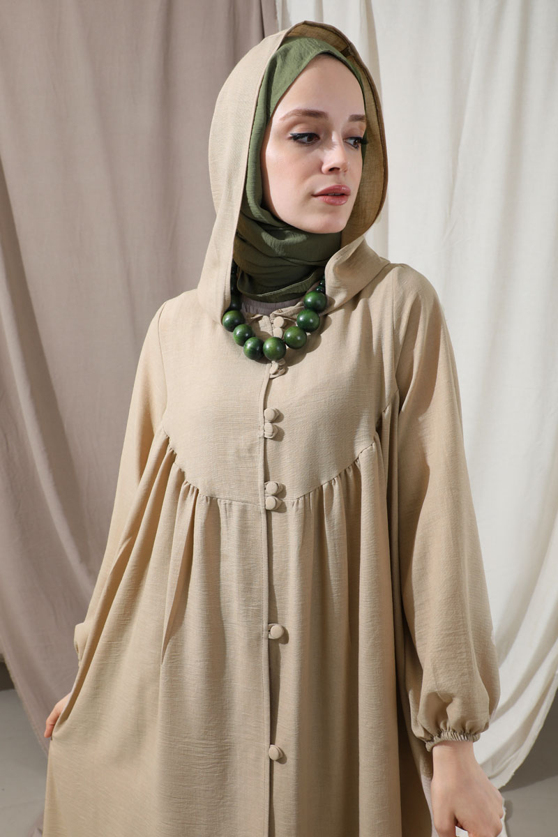 Kapüşonlu Elbise Ferace Taş. Yanları ceplidir. Balon kolludur. Manşeti lastiklidir. Şapka detayı mevcuttur. Kaplama düğmelidir. Günlük kullanım ve özel günlerinizde tercih edebilirsiniz.