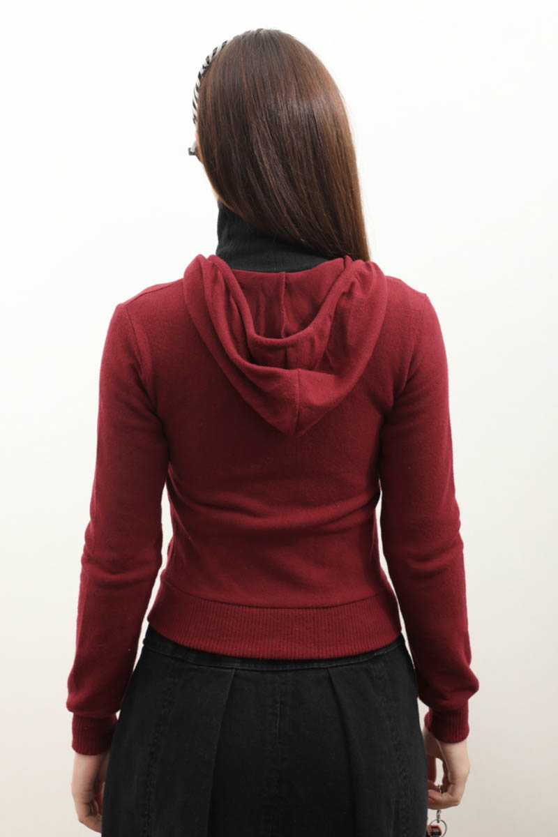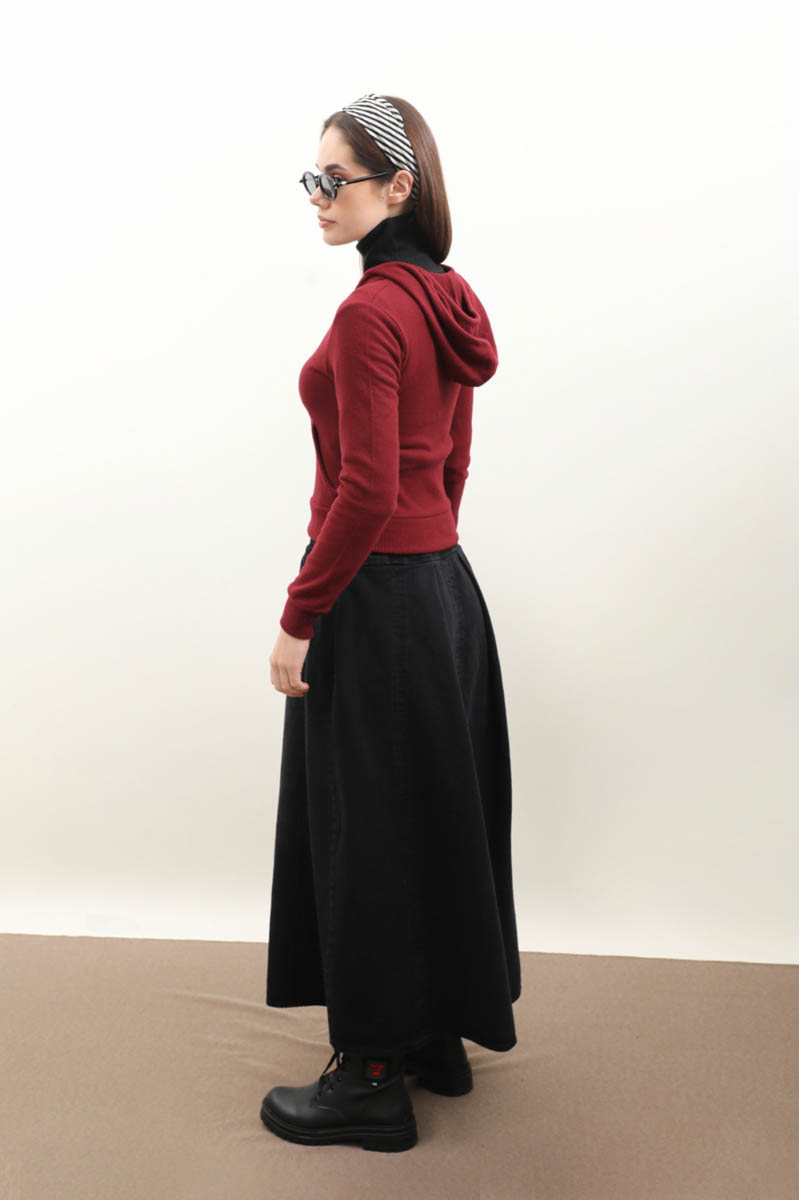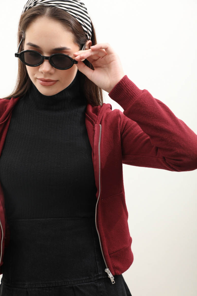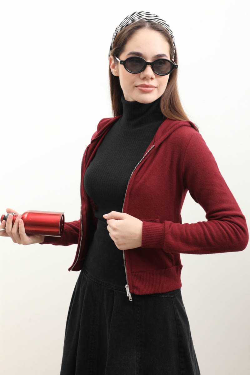 Kapüşonlu Kısa Hırka Bordo