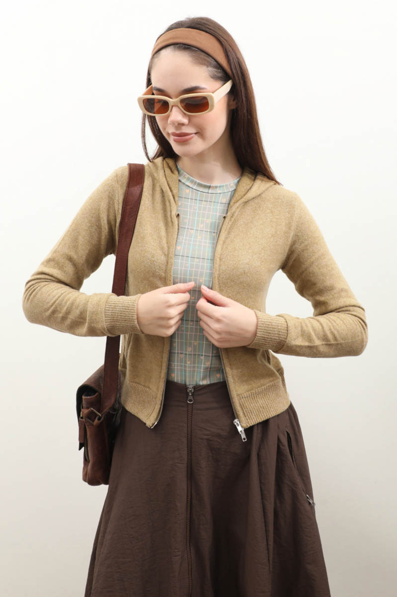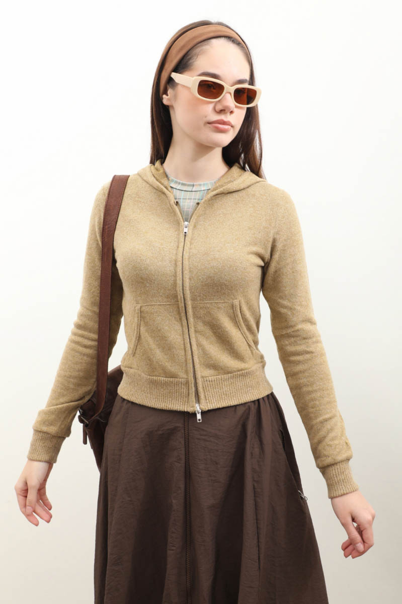 Kapüşonlu Kısa Hırka Hardal. Kapüşonludur, önden cepli ve fermuarlıdır, manşeti ve etek ucu ribanalıdır, dar kalıptır. Günlük kullanım ve özel günlerinizde tercih edebilirsiniz.
