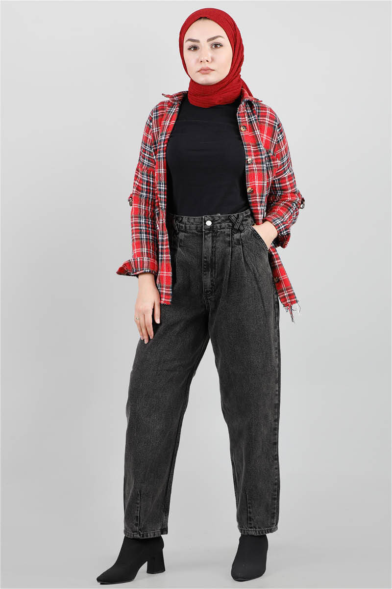 Yüksek beldir. Tam kalıp. Kar yıkama. İki düğme detayı vardır. Yandan ceplidir.