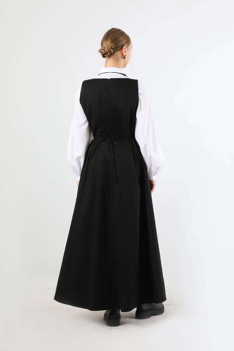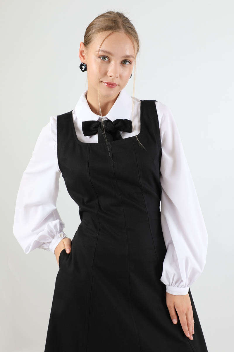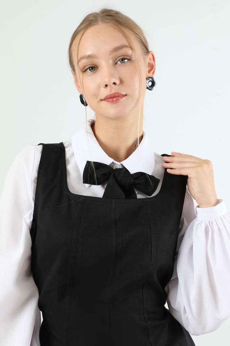 Kare Yaka Jile Siyah. Ön ve arkadan parçalamalıdır. Belinden biyelidir. Arkadan fermuarlıdır. Astarsızdır. Günlük kullanım ve özel günlerinizde tercih edebilirsiniz.