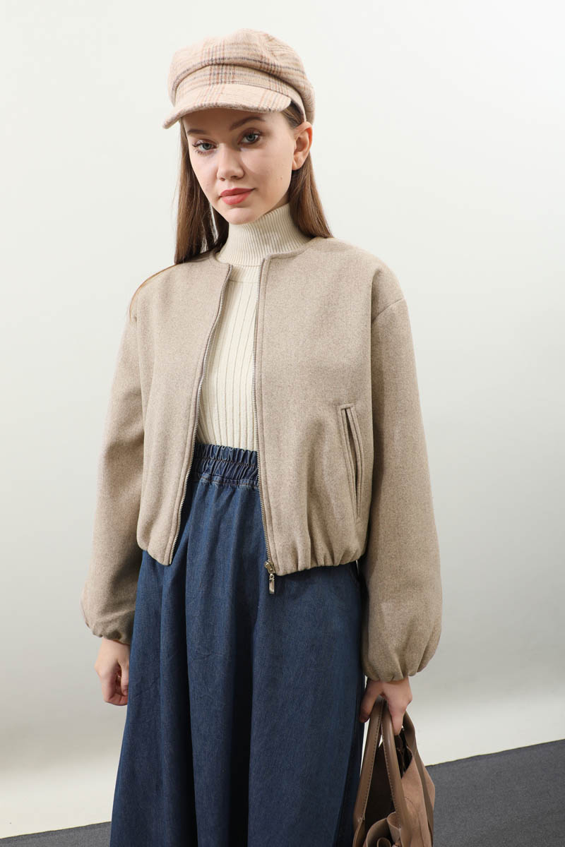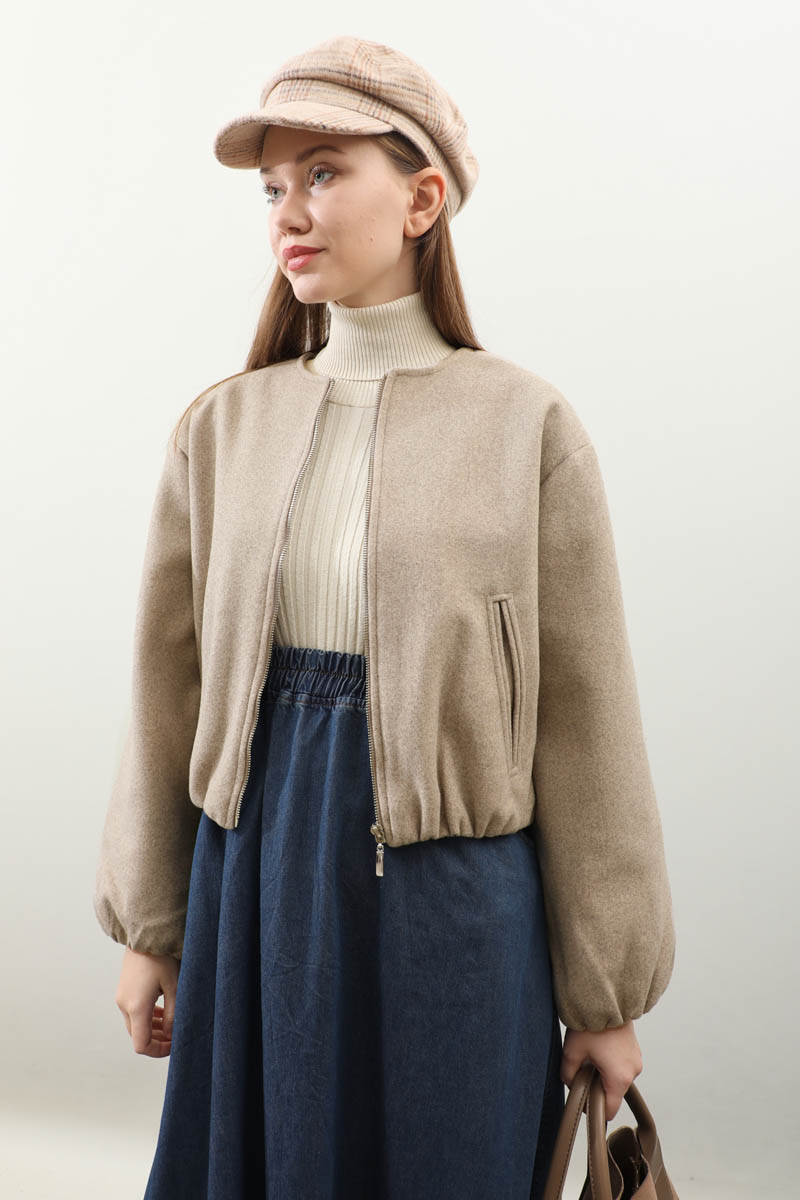 Kaşe Bomber Ceket Vizon