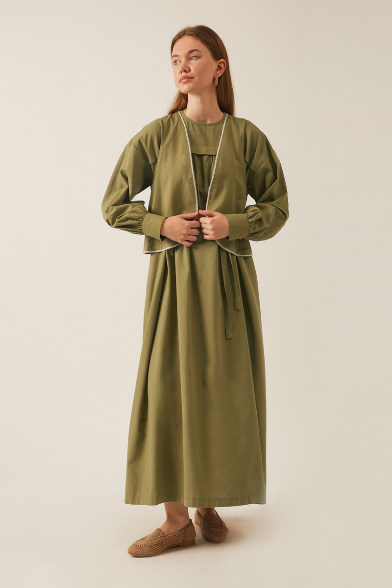 Kayra Yelekli Elbise Takım Haki