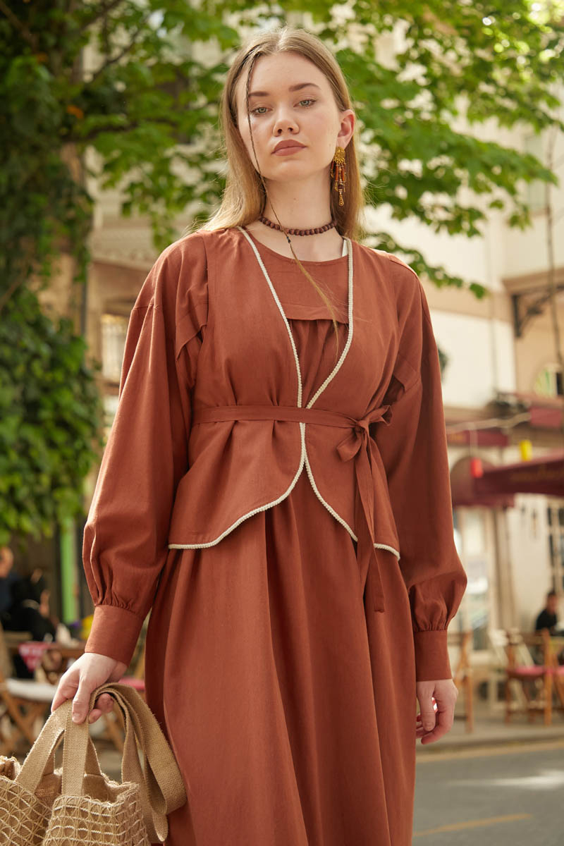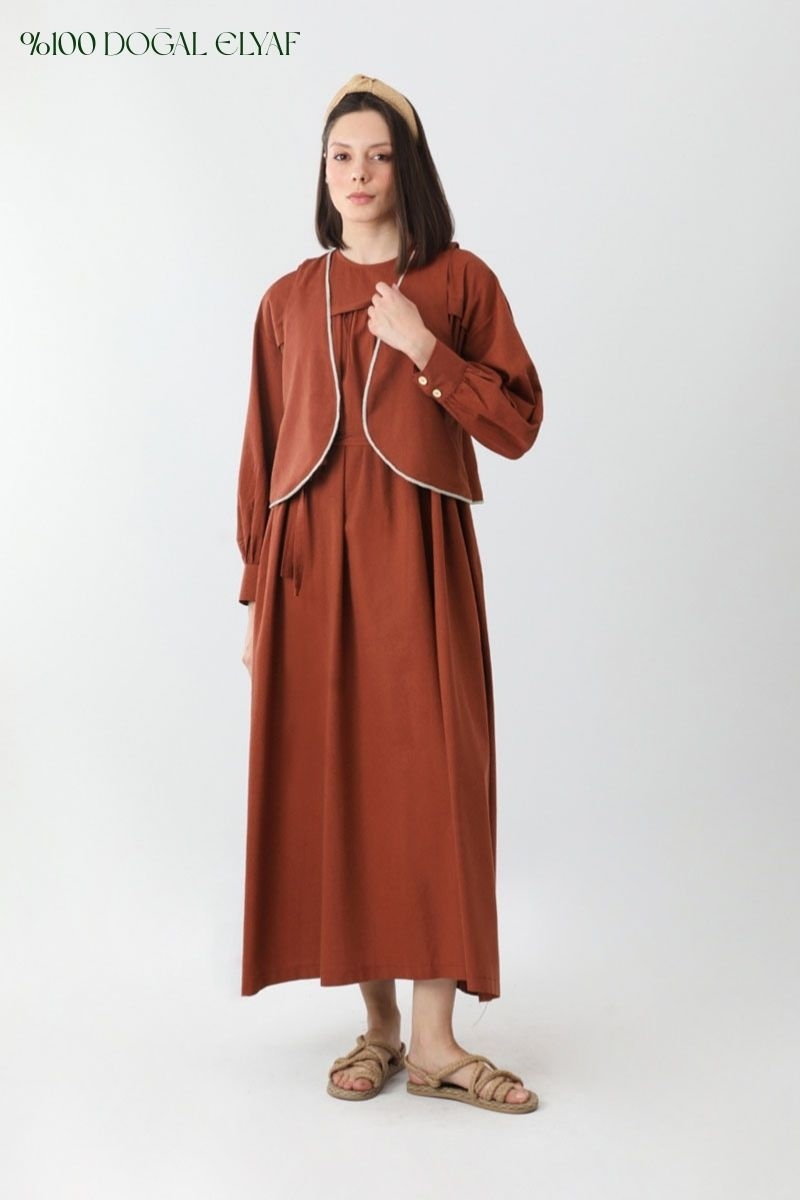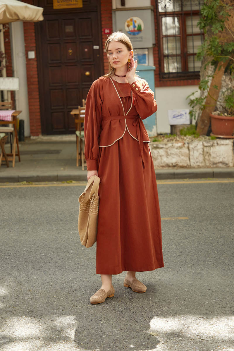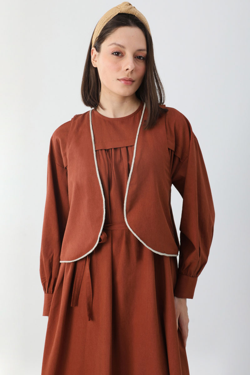 Kayra Yelekli Elbise Takım Kiremit