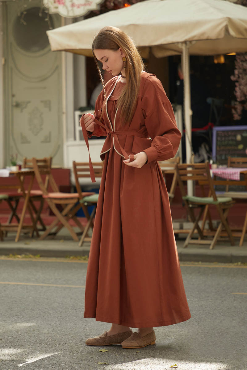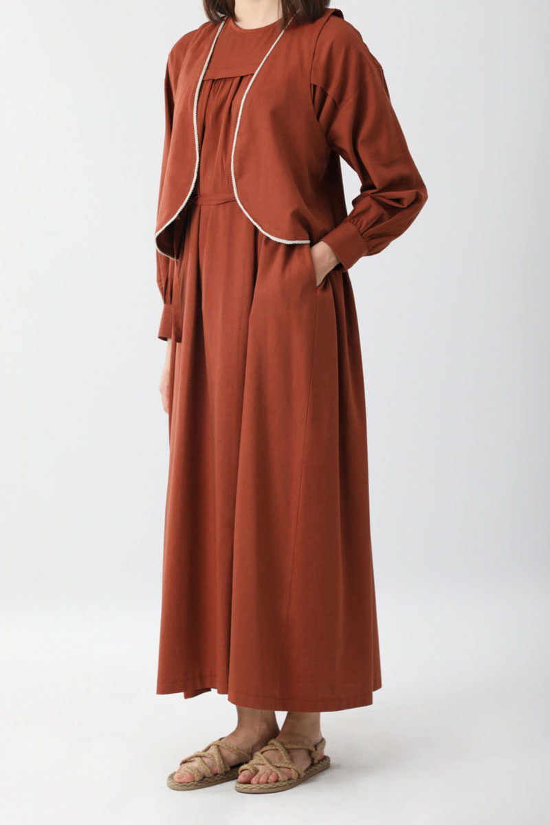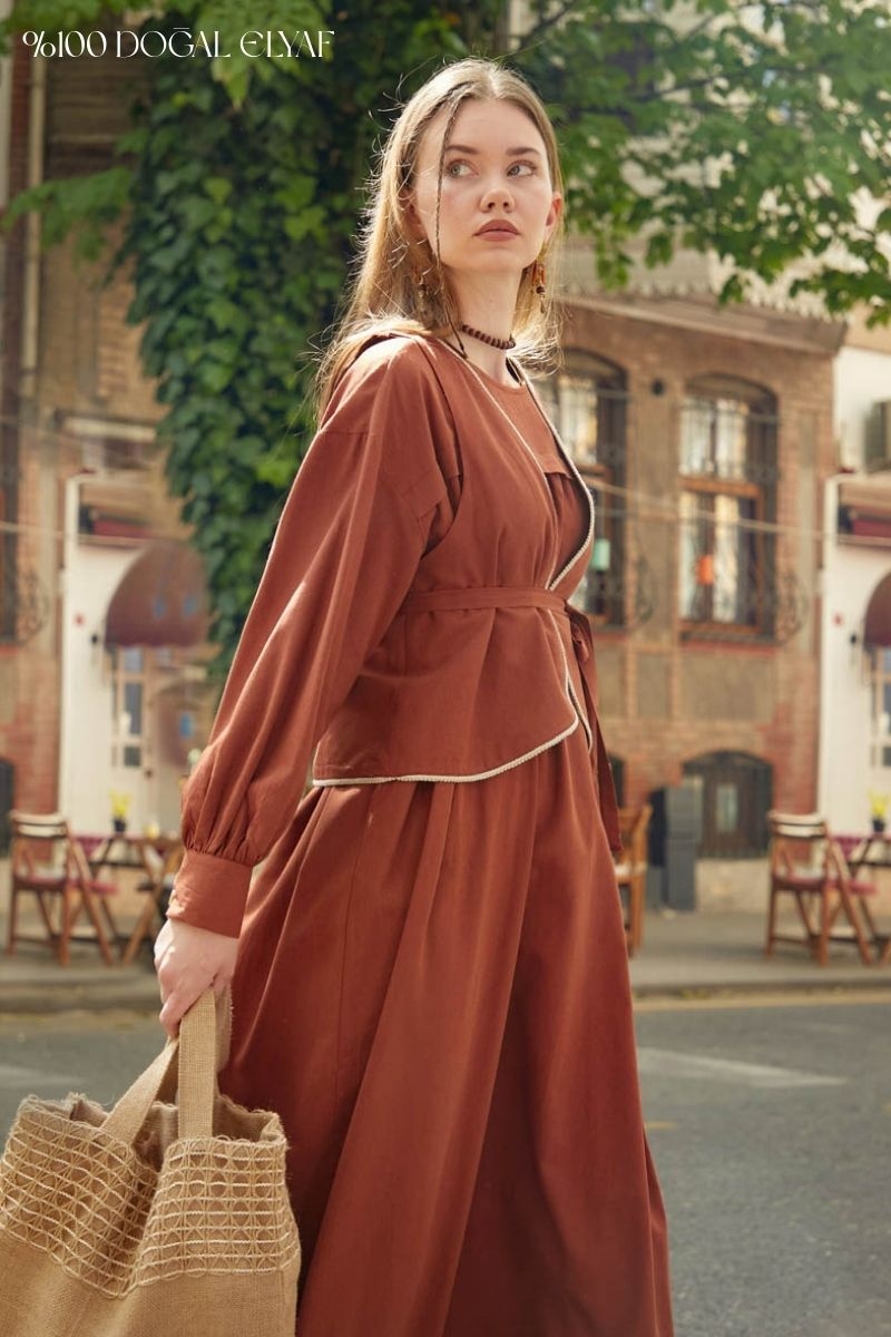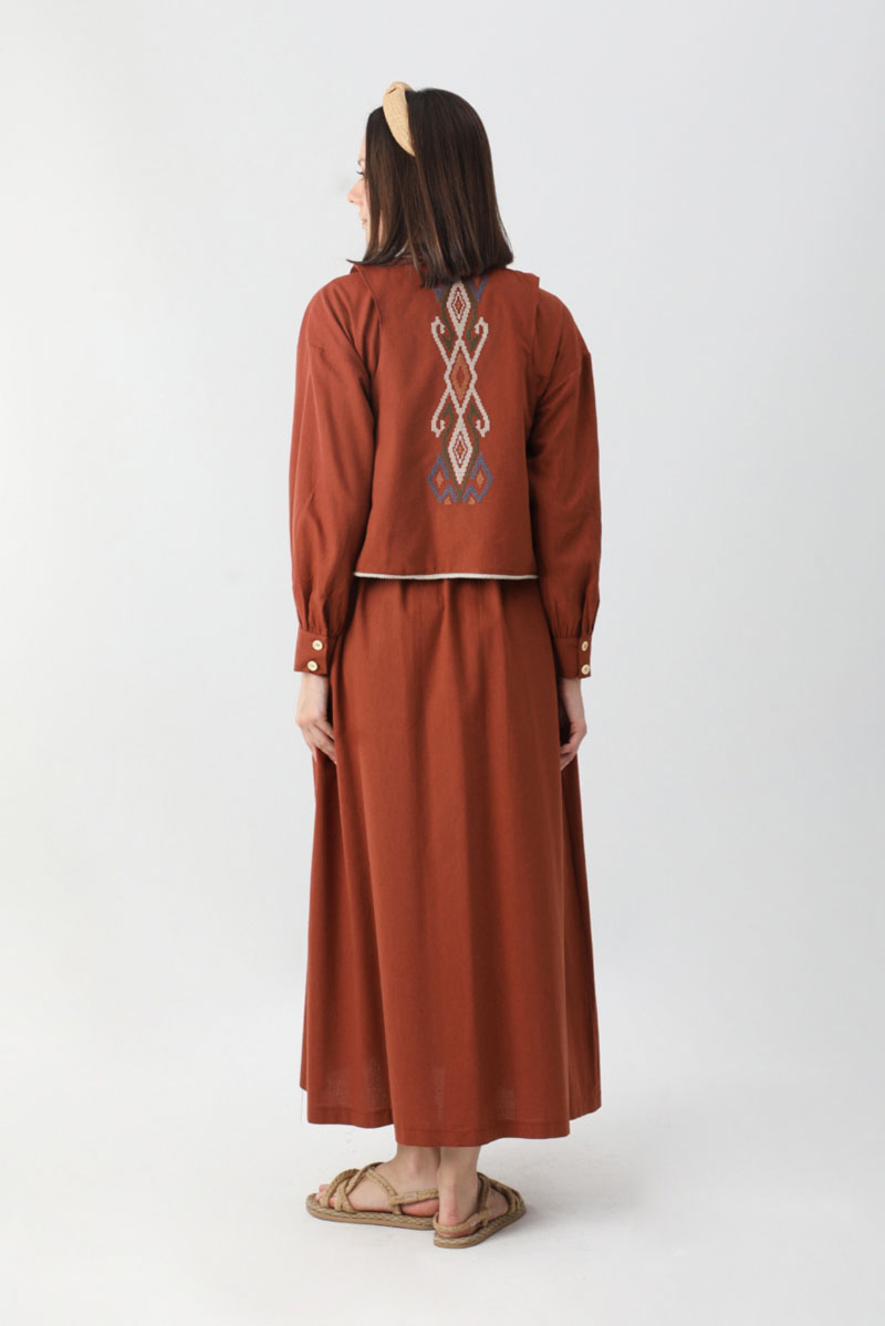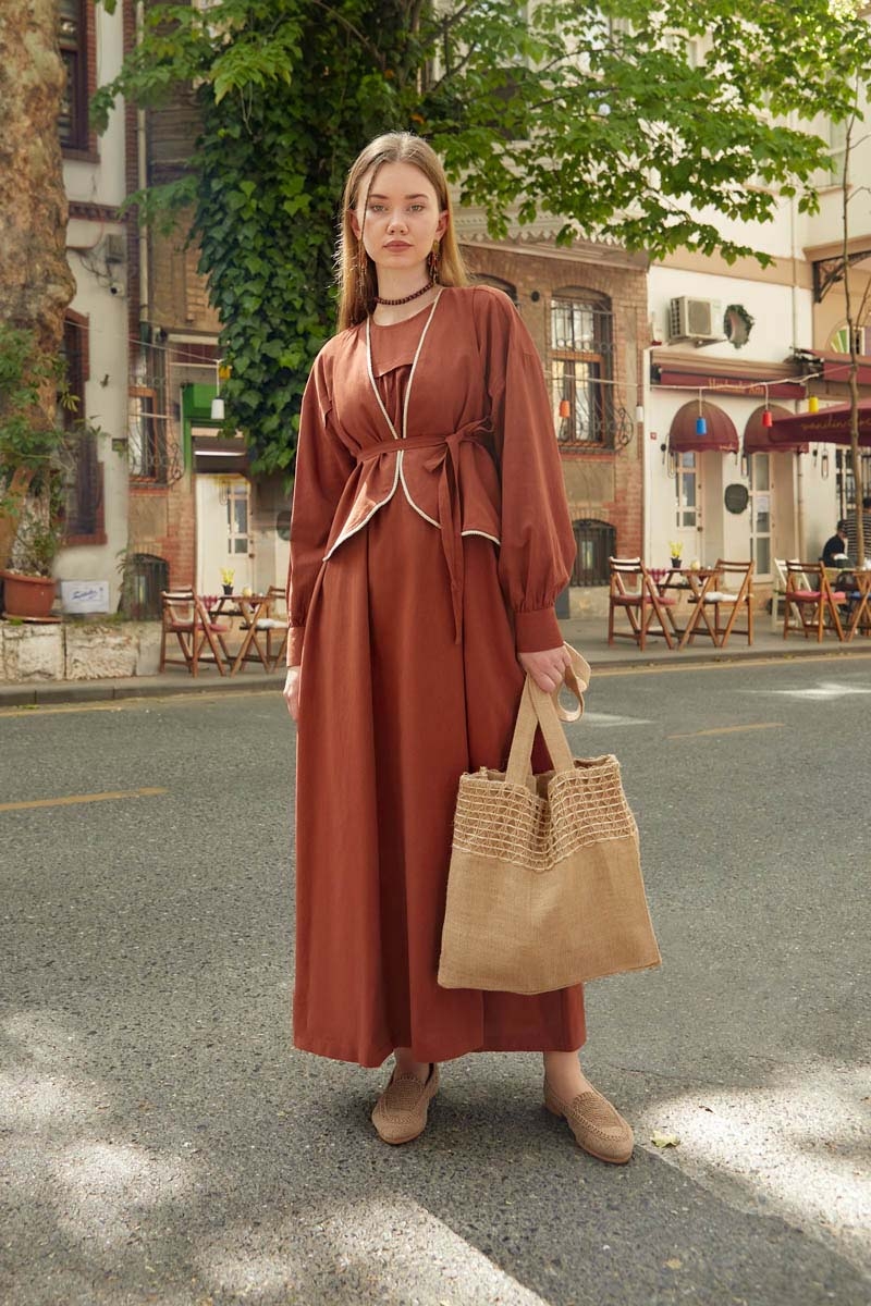 Kayra Yelekli Elbise Takım Kiremit