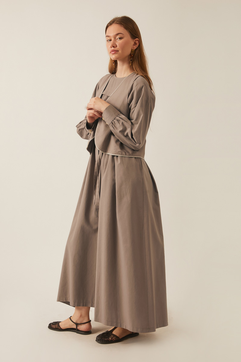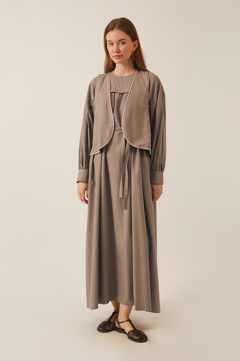 Kayra Yelekli Elbise Takım Vizon