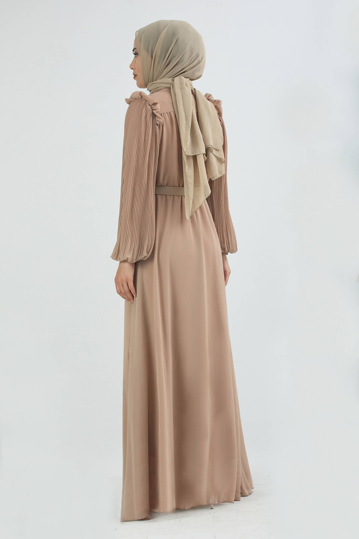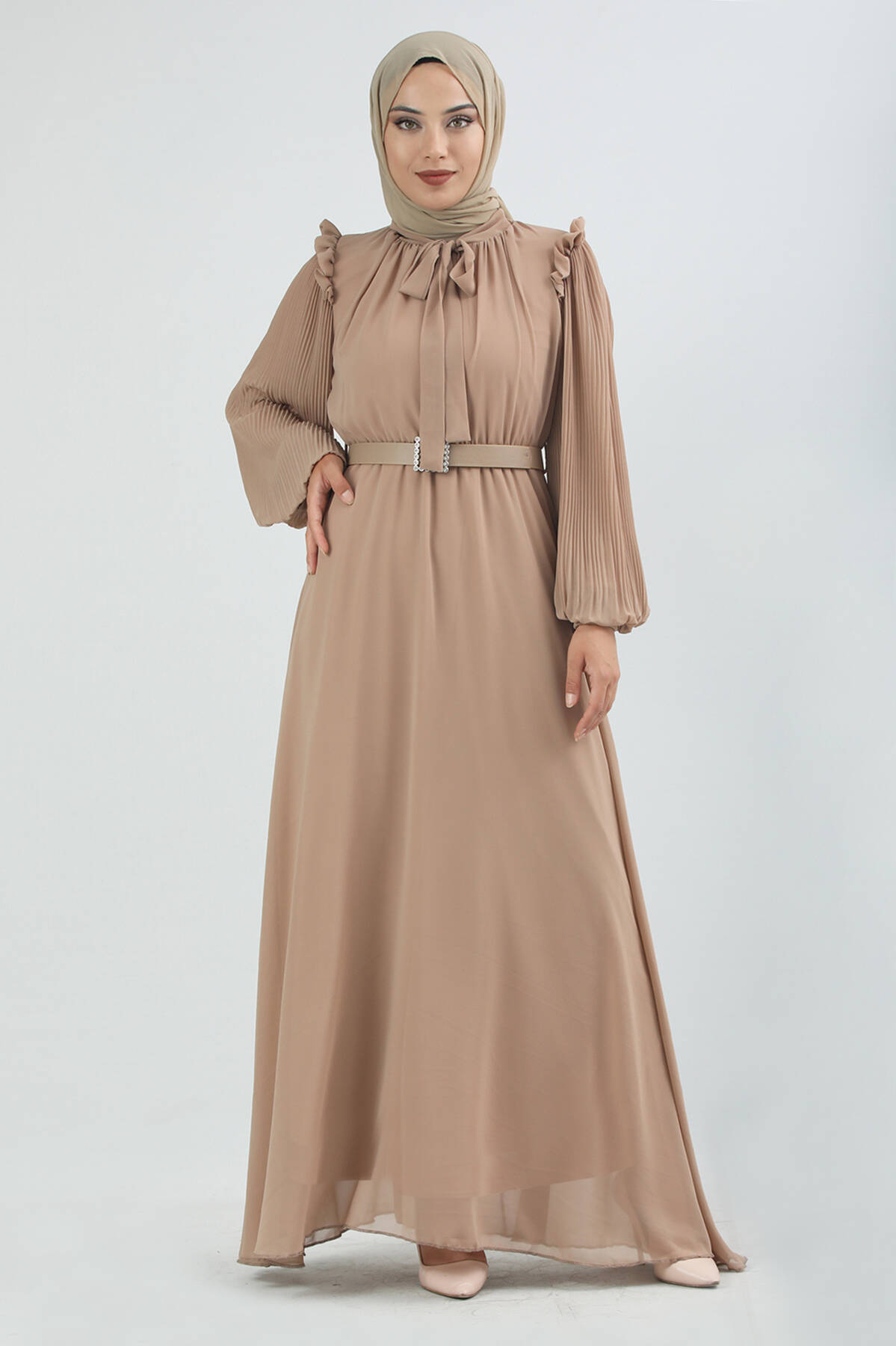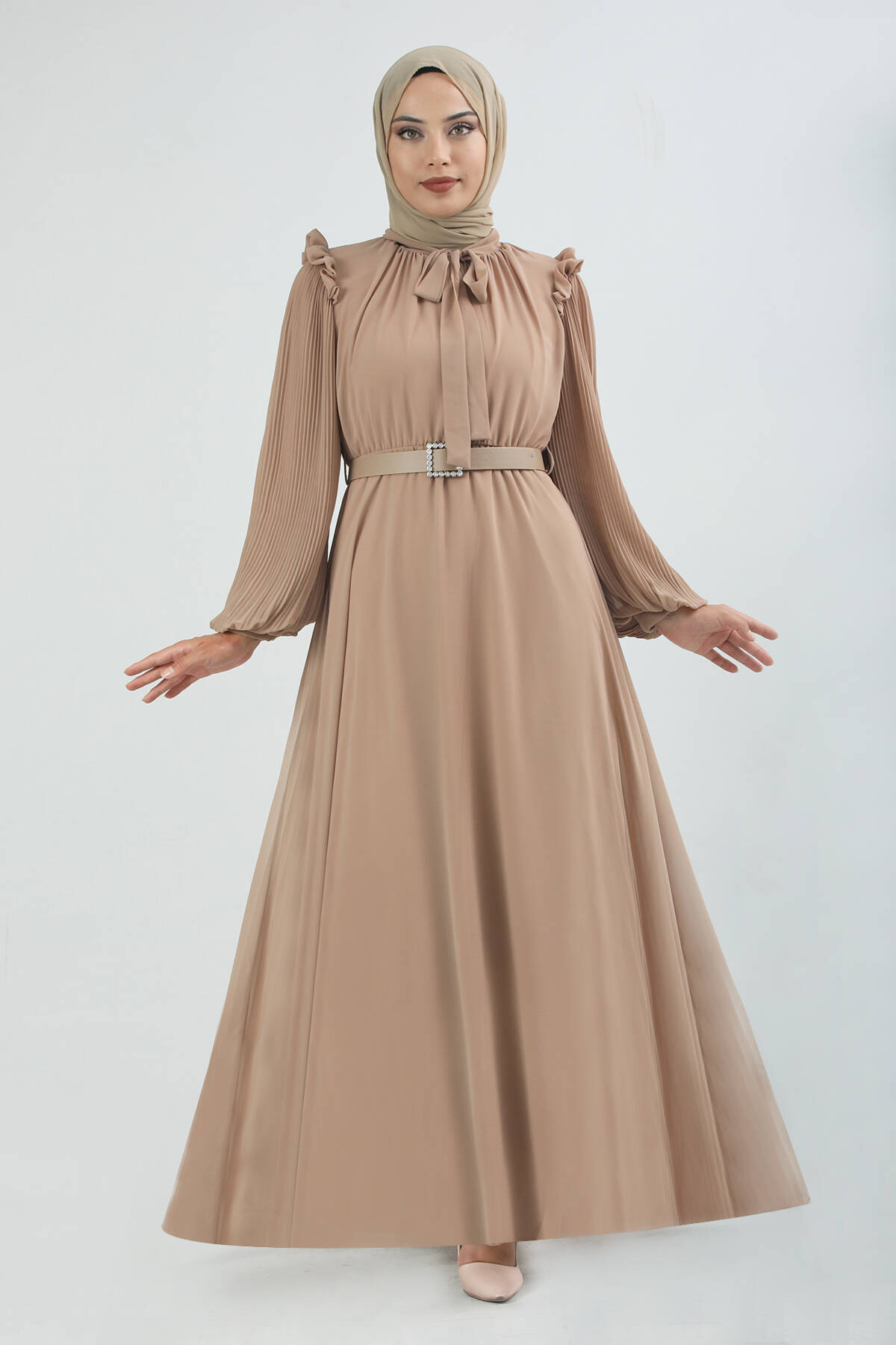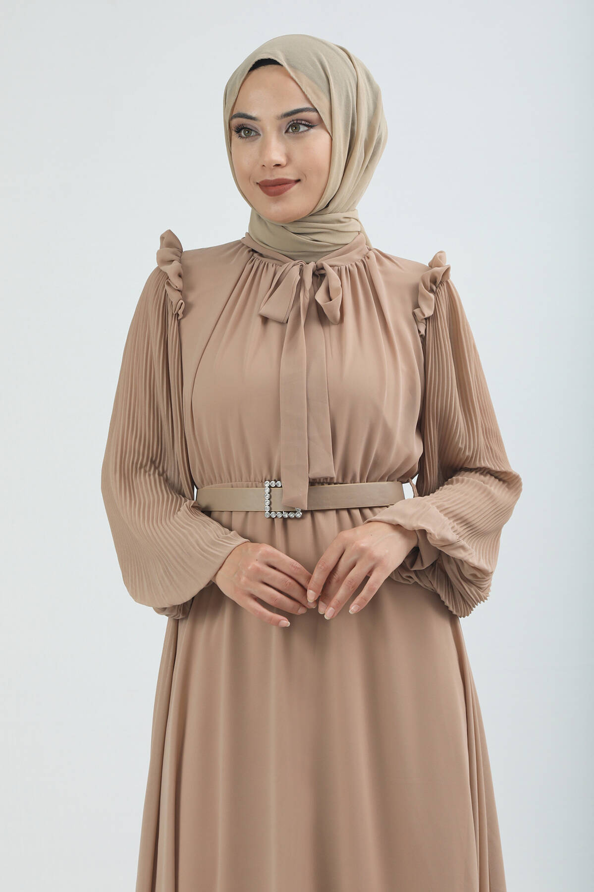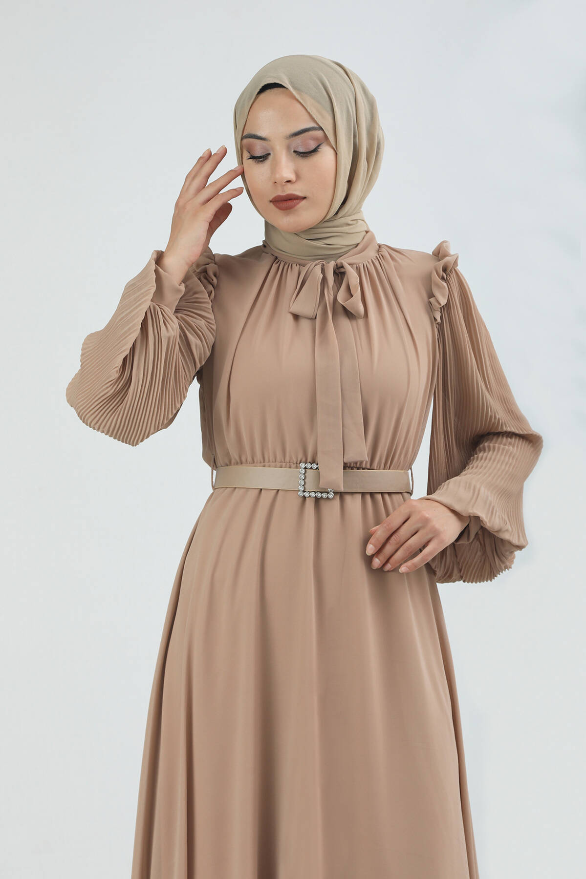 Kemeri Taşlı Elbise Bej