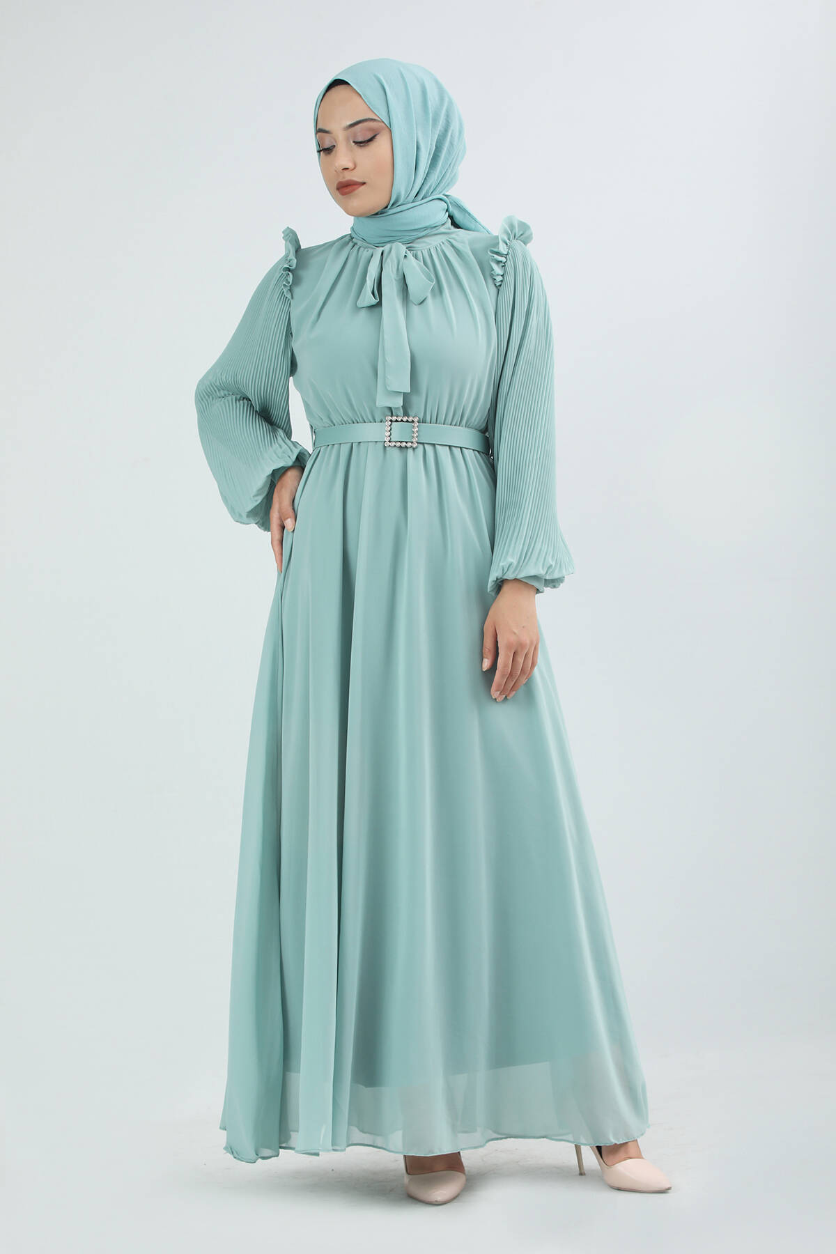Kemeri Taşlı Elbise Mint