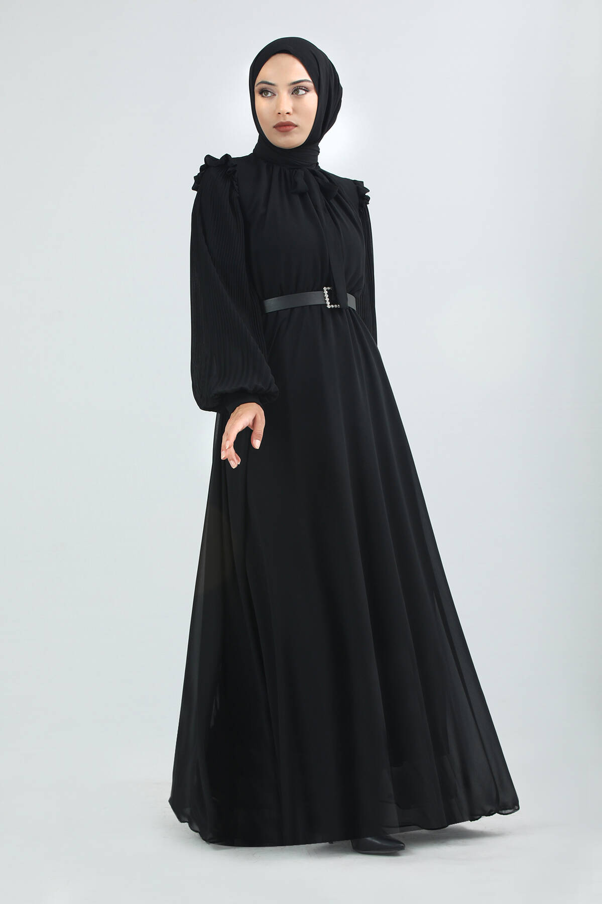 Kemeri Taşlı Elbise Siyah