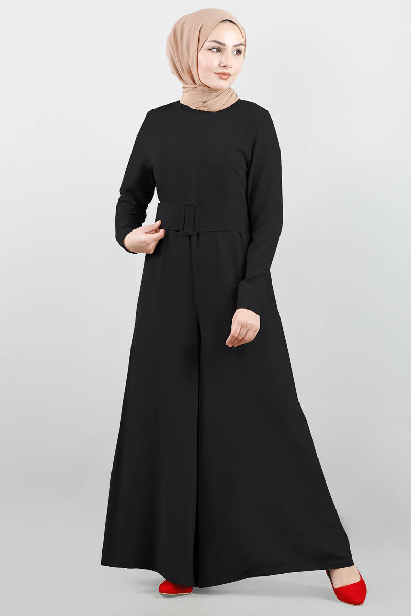 Belted Plain Jumpsuit Black - 1Belted Plain Jumpsuit Black - 2