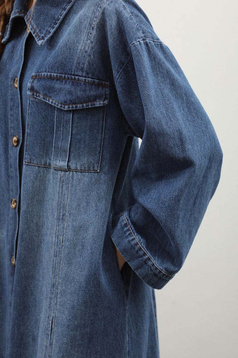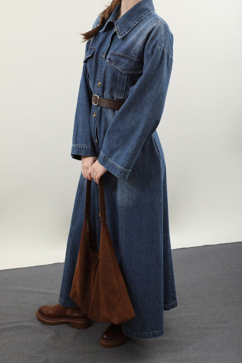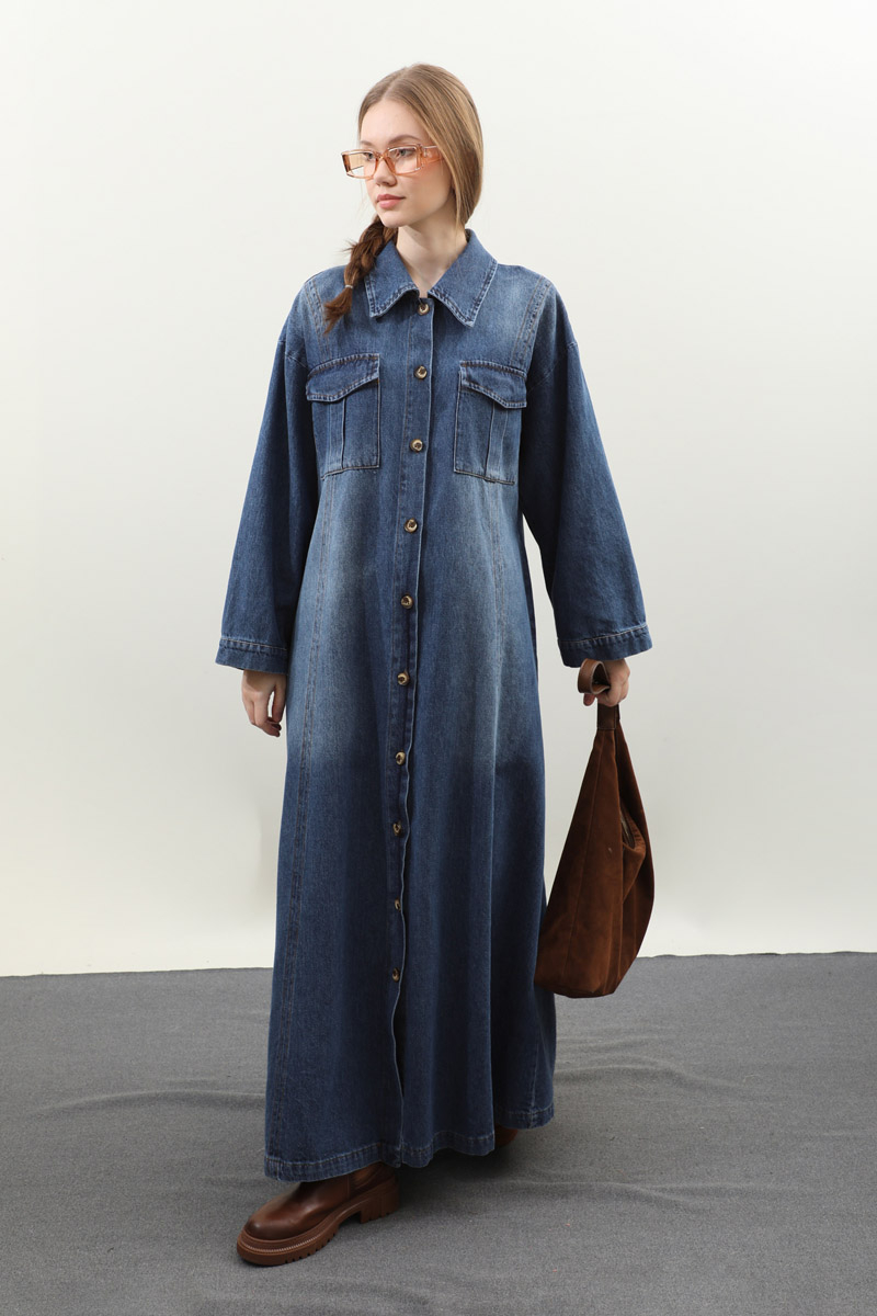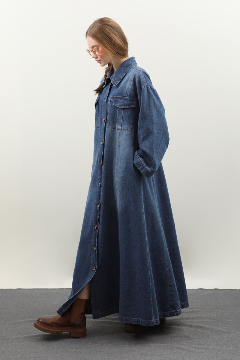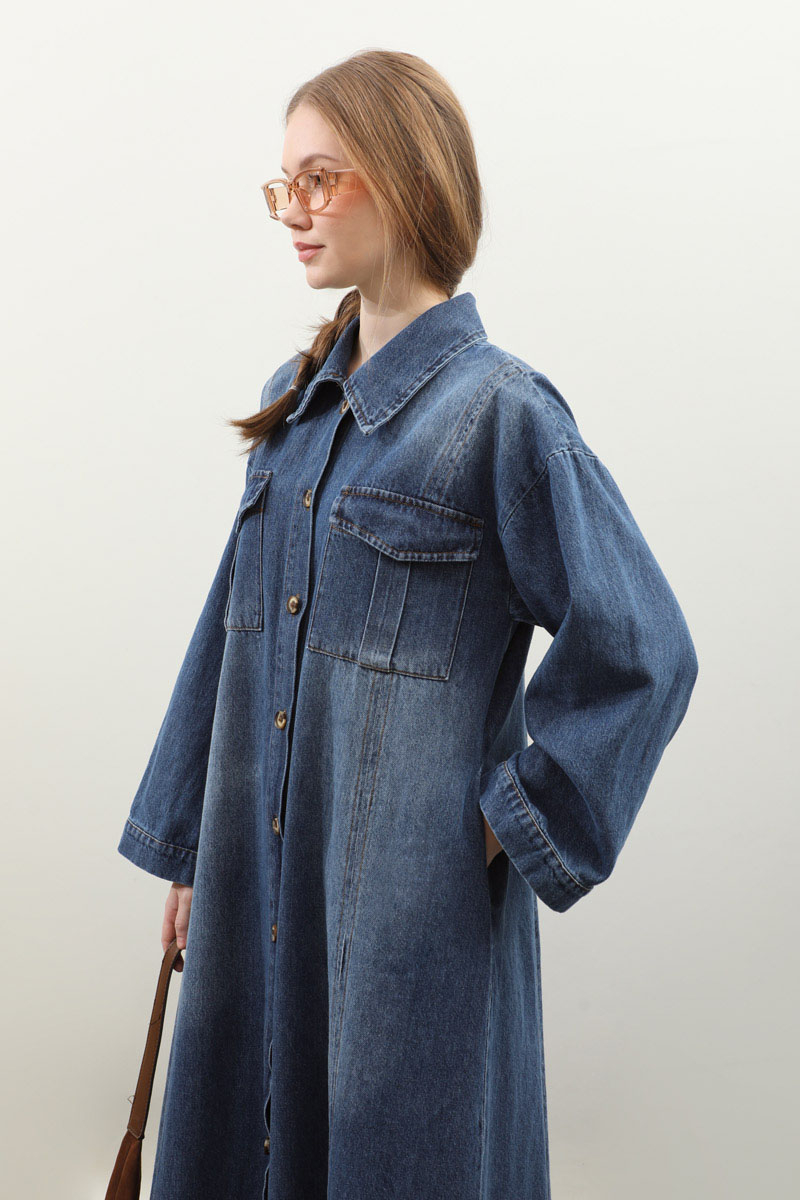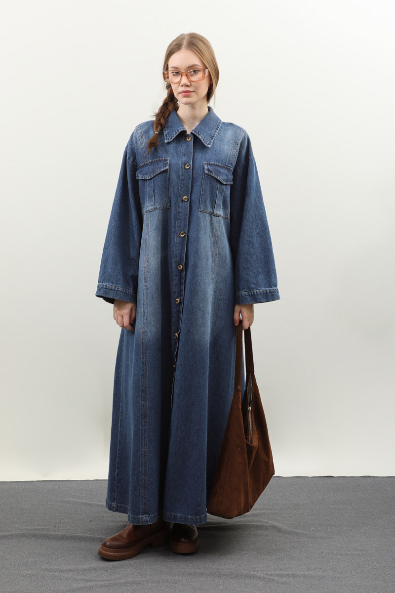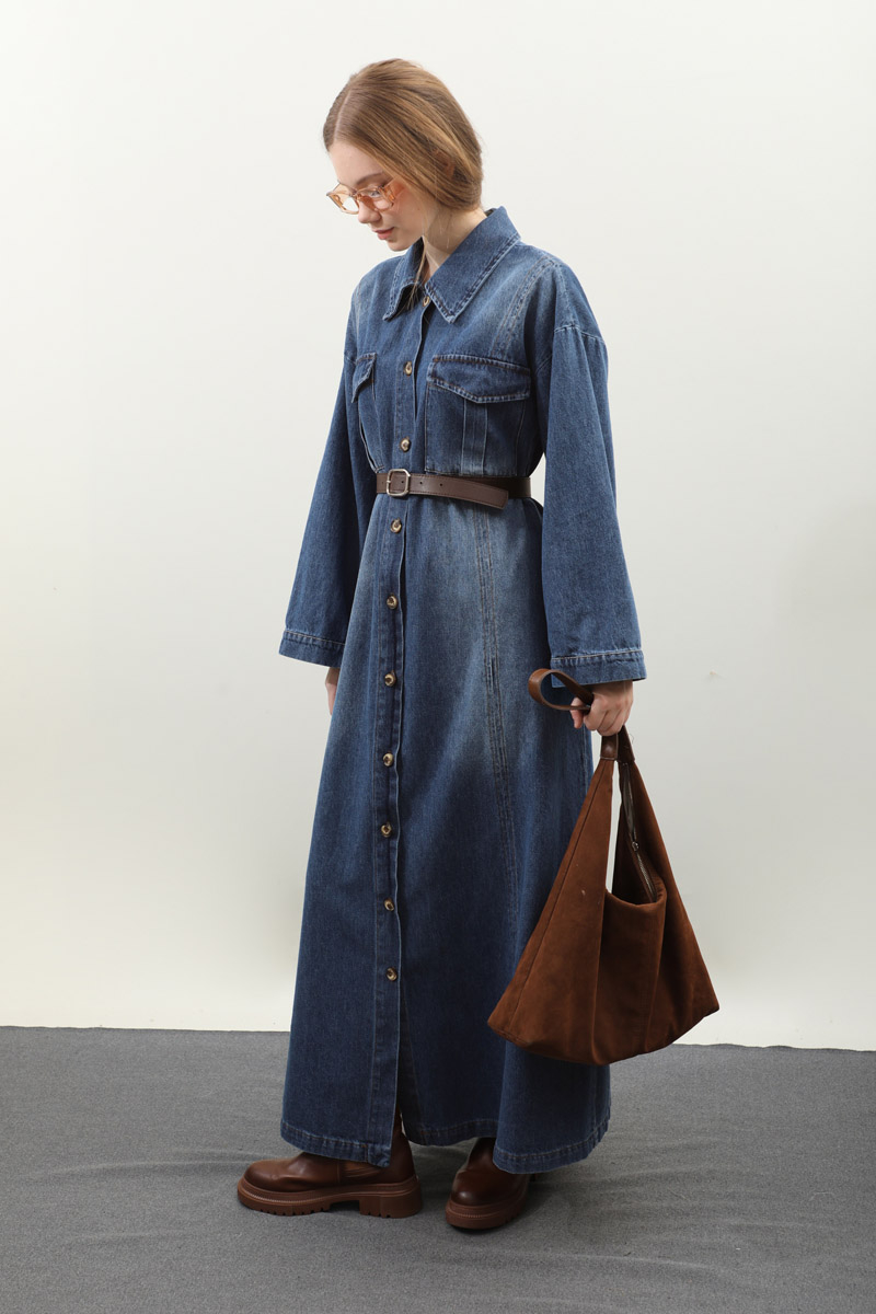 Kemerli Kot Elbise Açık Mavi. Gömlek yakadır, düşük kolludur, önden düğmelidir, yandan ceplidir. Ön bedende cep pile detaylıdır, beden parça dikiş detaylıdır, deri kemerlidir, astarsızdır. Günlük kullanım ve özel günlerinizde tercih edebilirsiniz.
