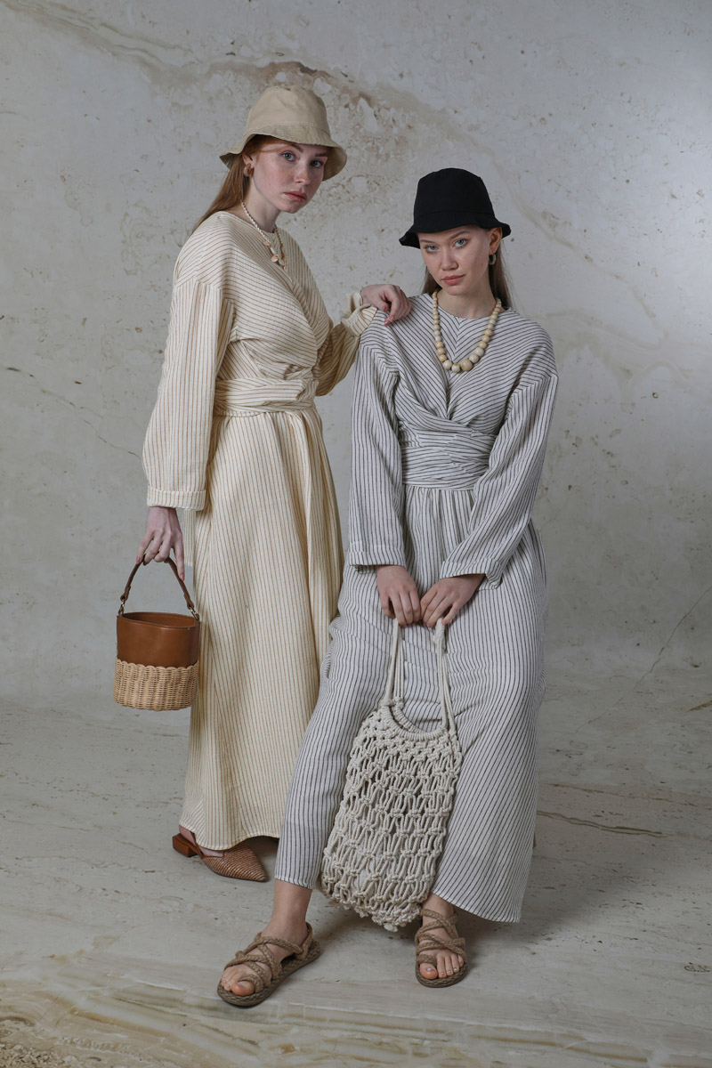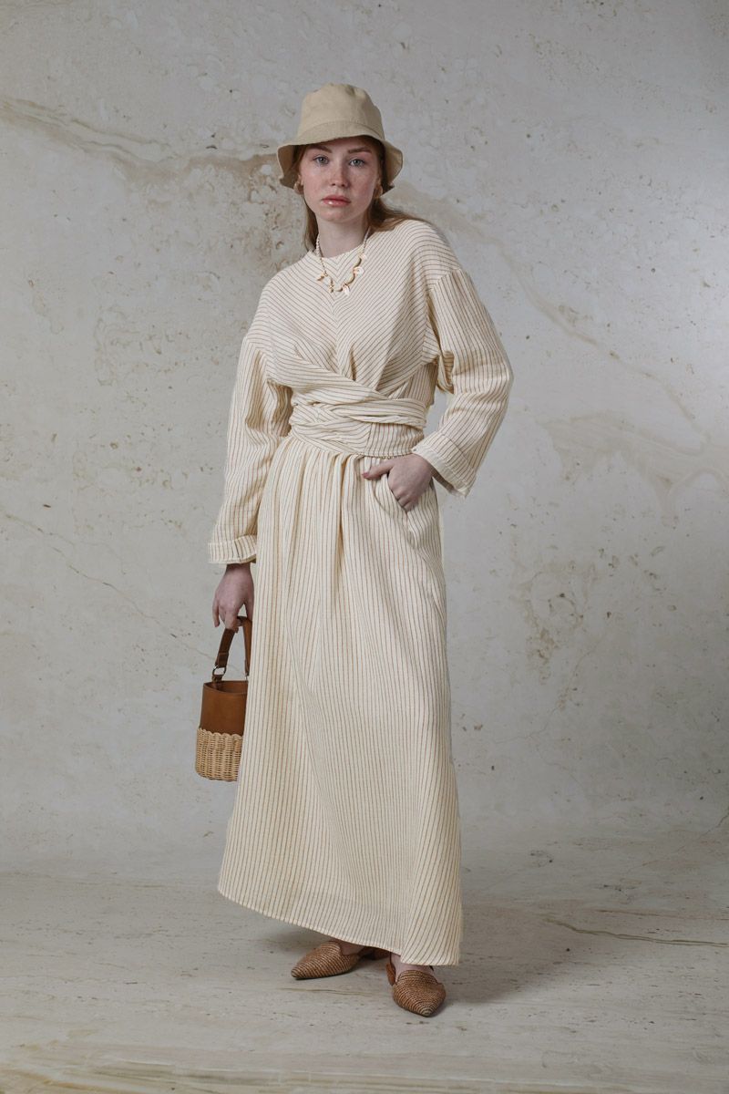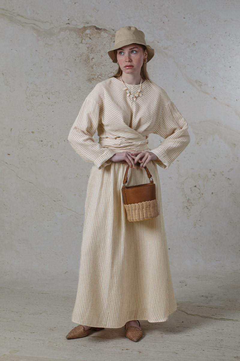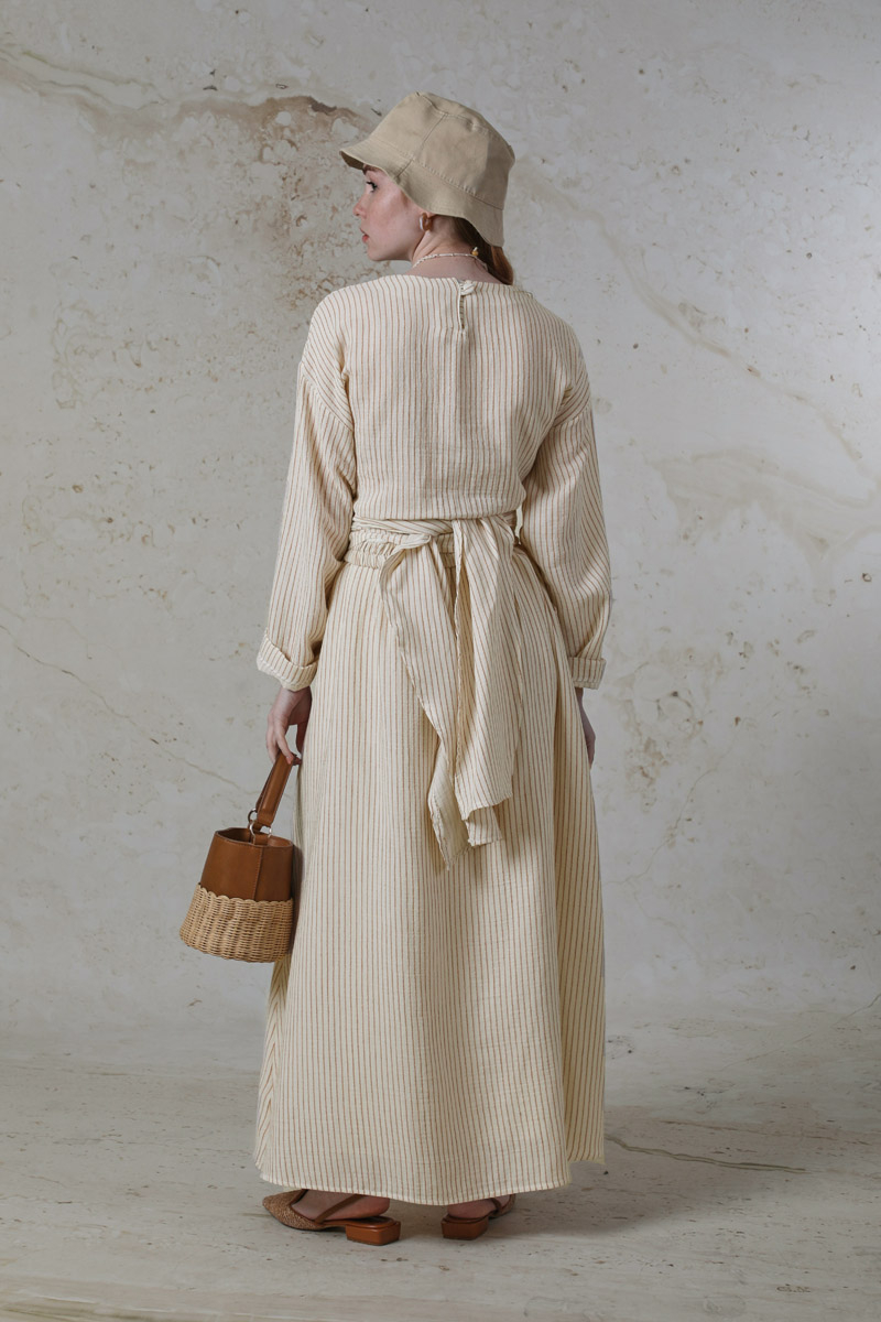 Bağlamalı Müslin Etek Takım Camel